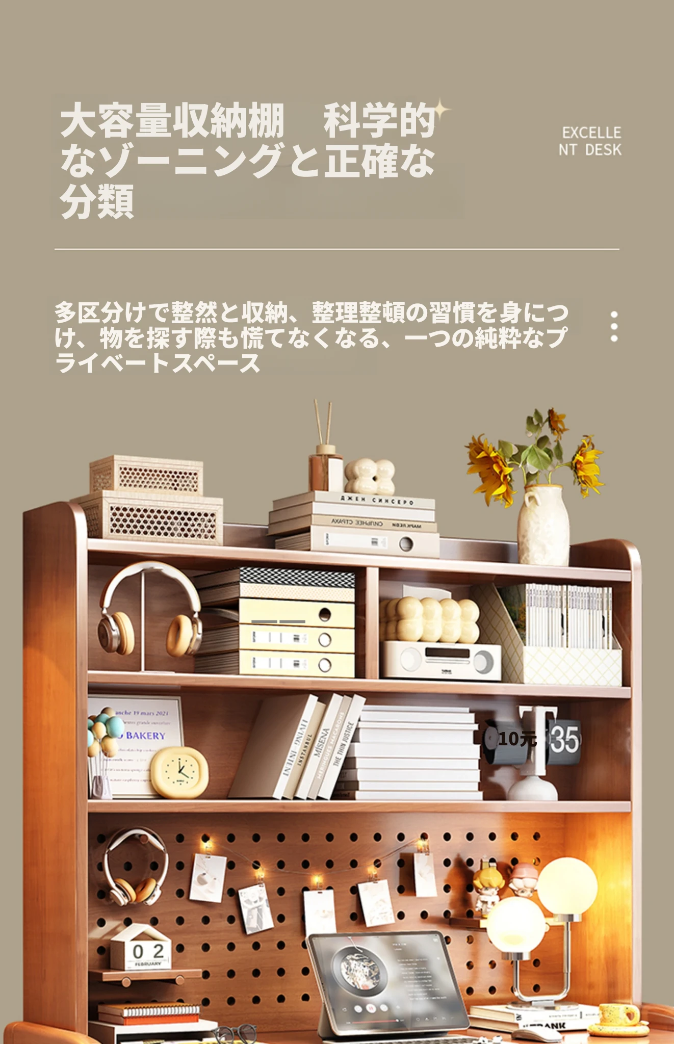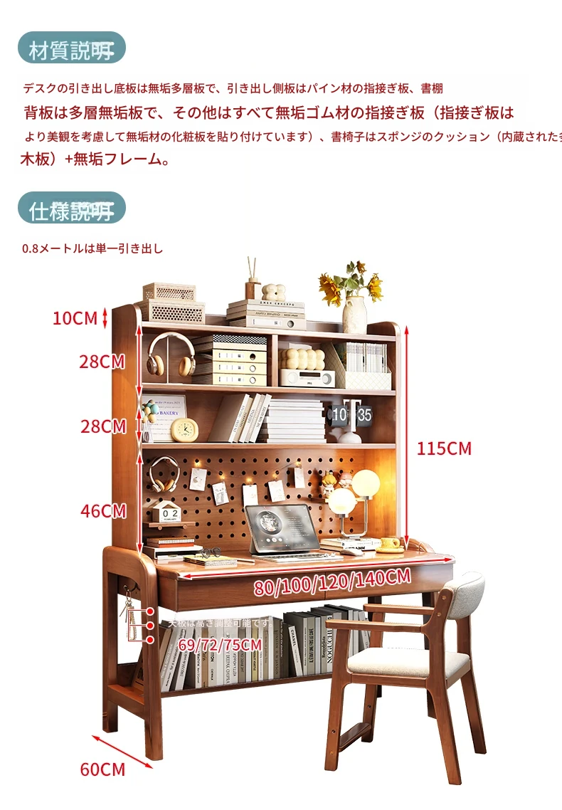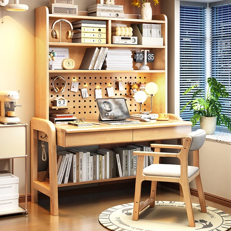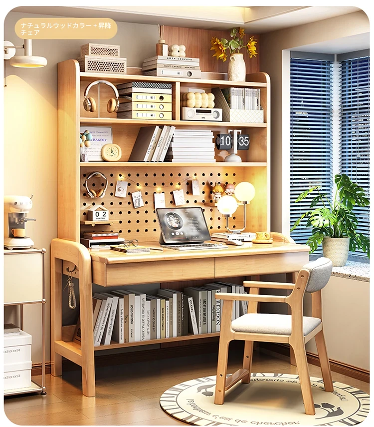 調整可能なワンピースデザイン!天然木製の学生用多機能デスク