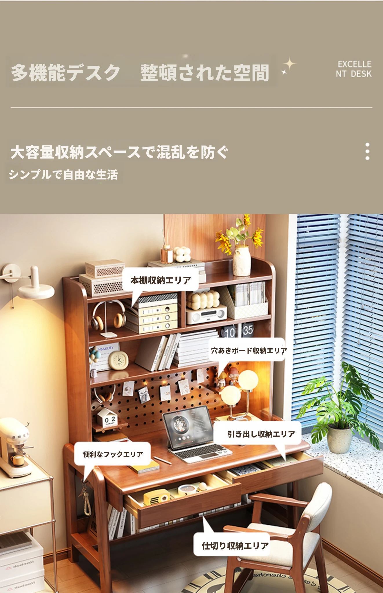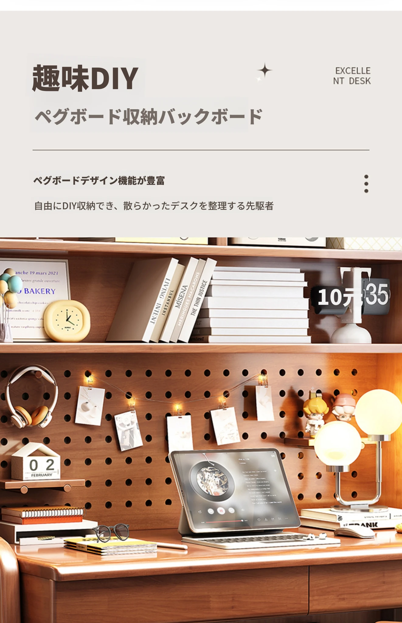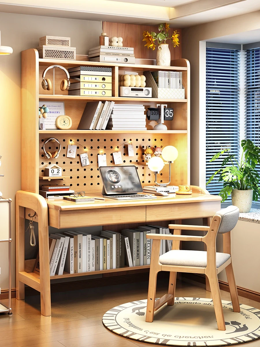 調整可能なワンピースデザイン!天然木製の学生用多機能デスク