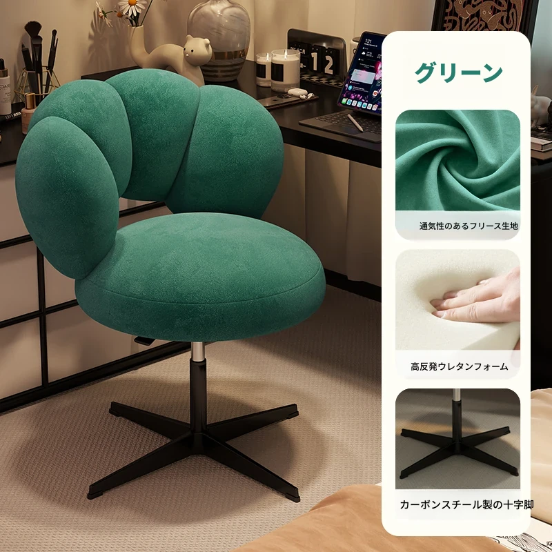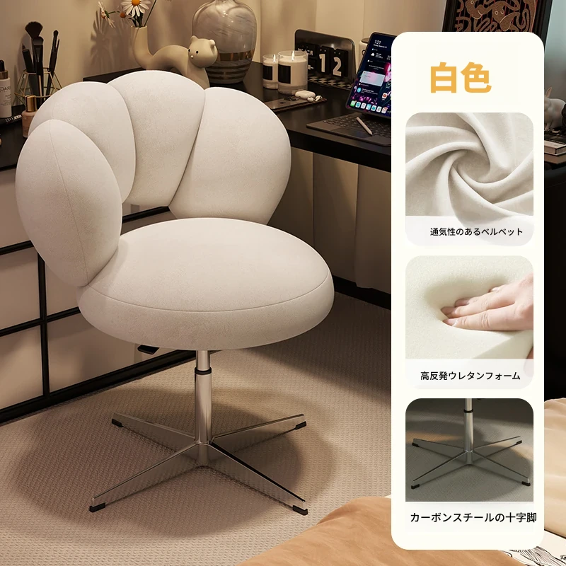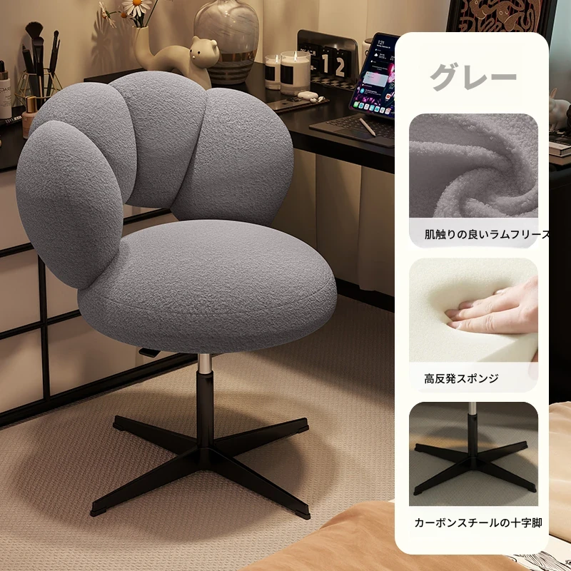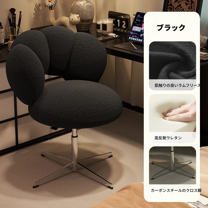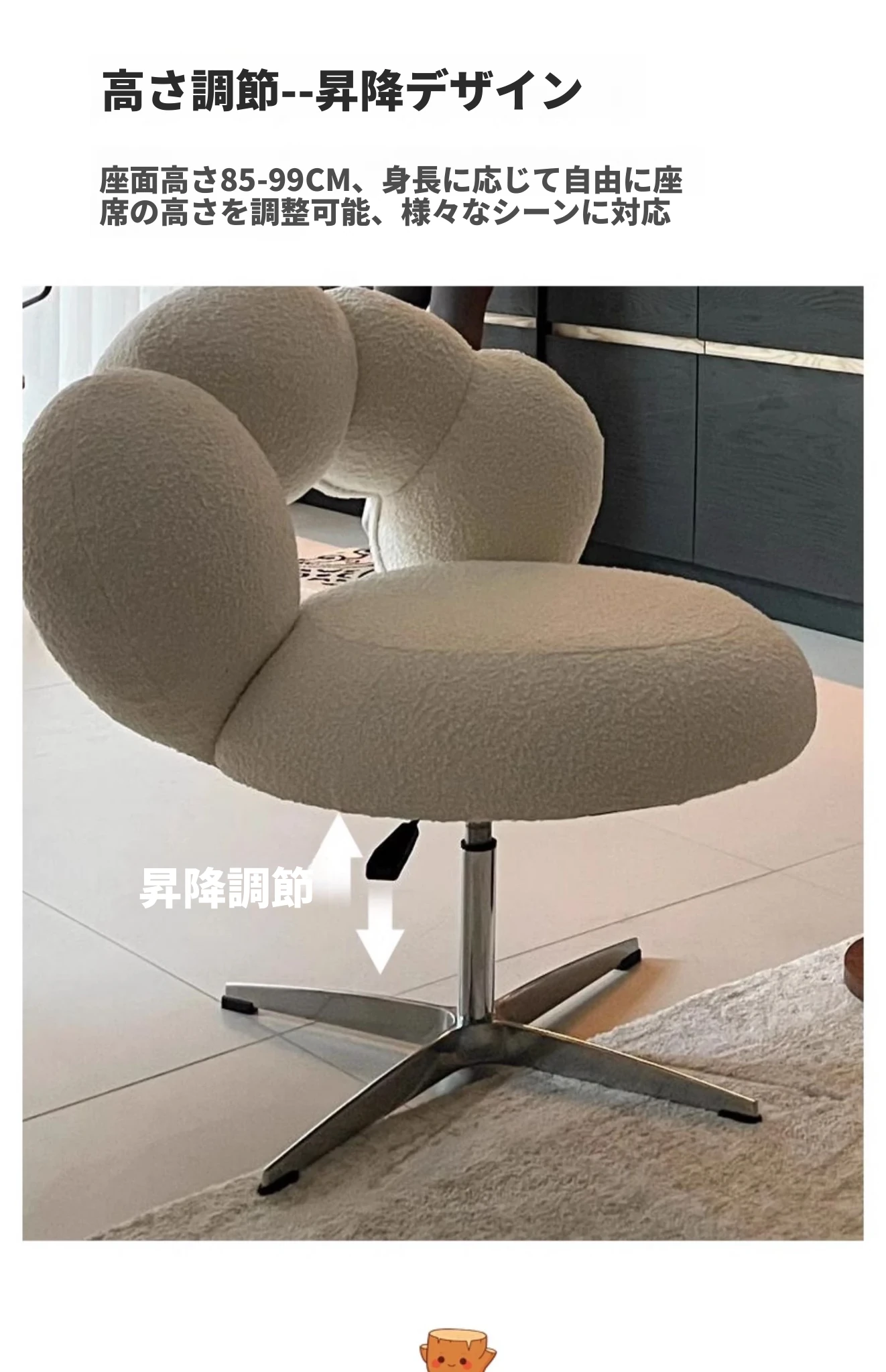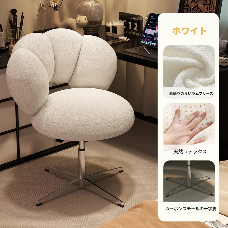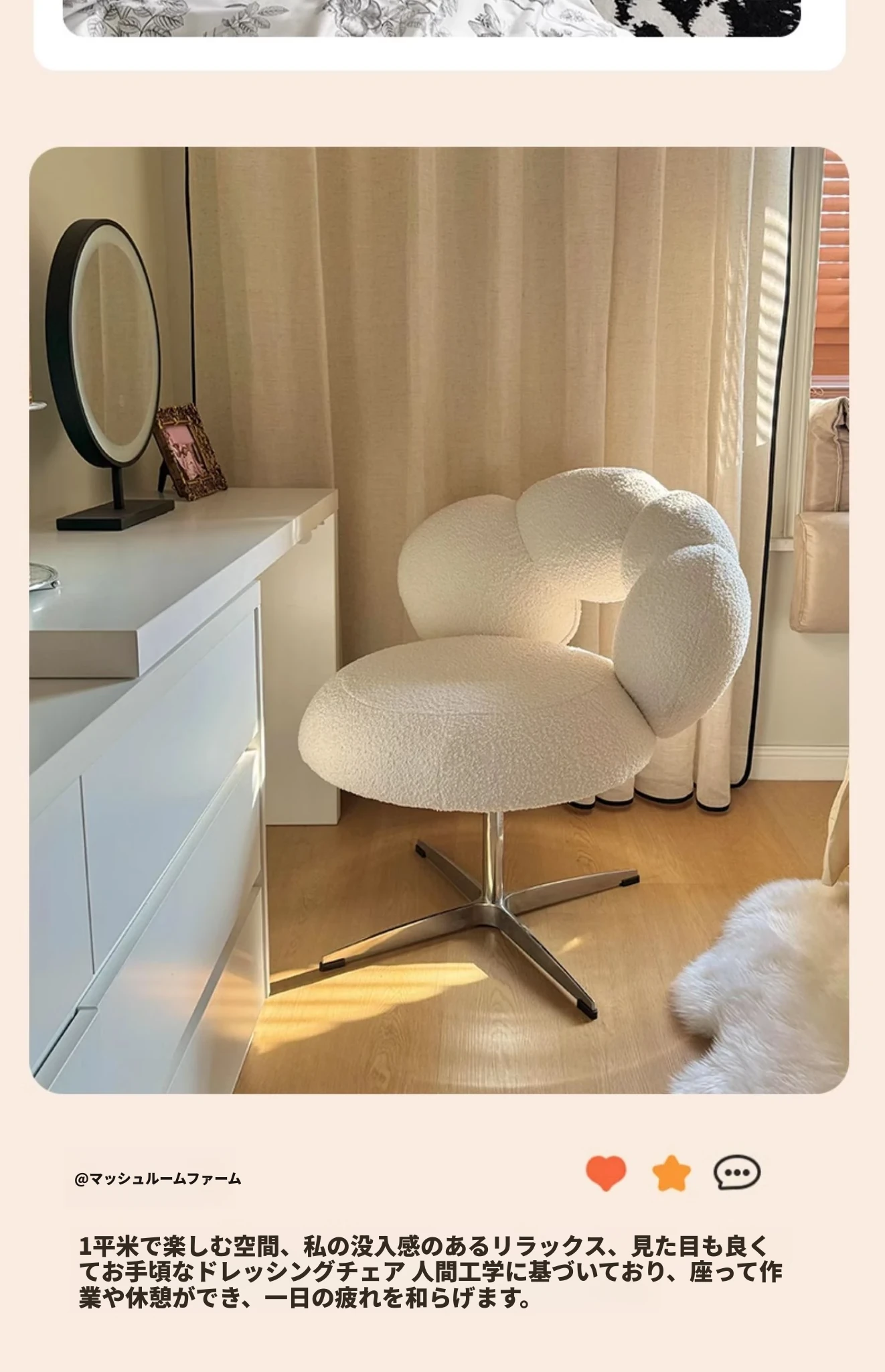 クリーム風回転式化粧椅子、ラグジュアリーな羊毛ファー仕上げ!女の子のための可愛い寝室にぴったりな、デザイナーズメイクアップスツール。ネイルサロンでも映えるおしゃれなデザイン!