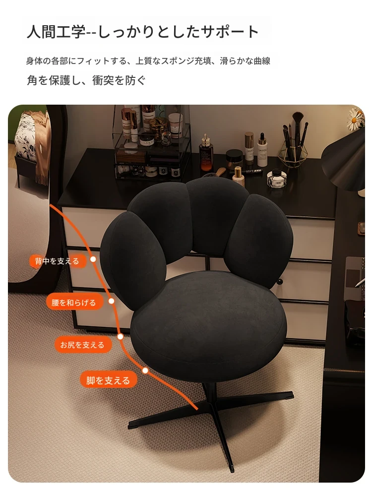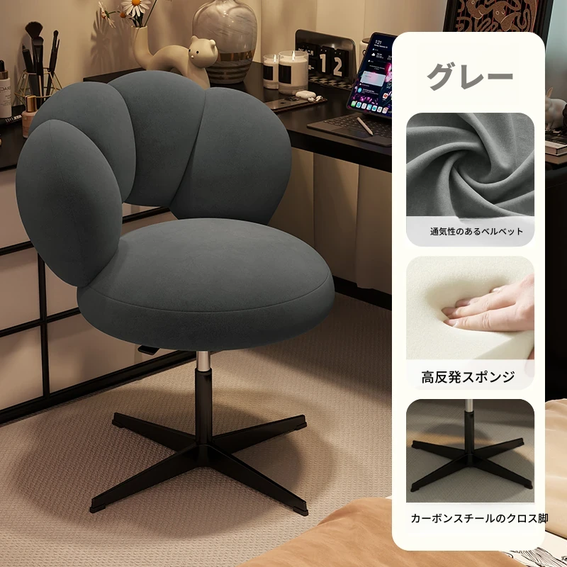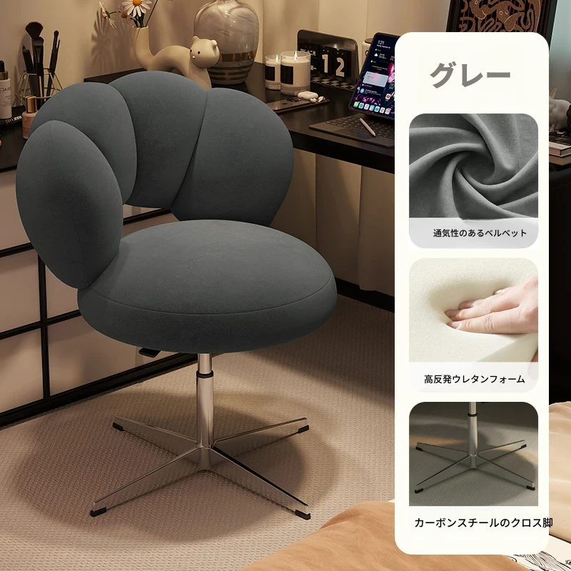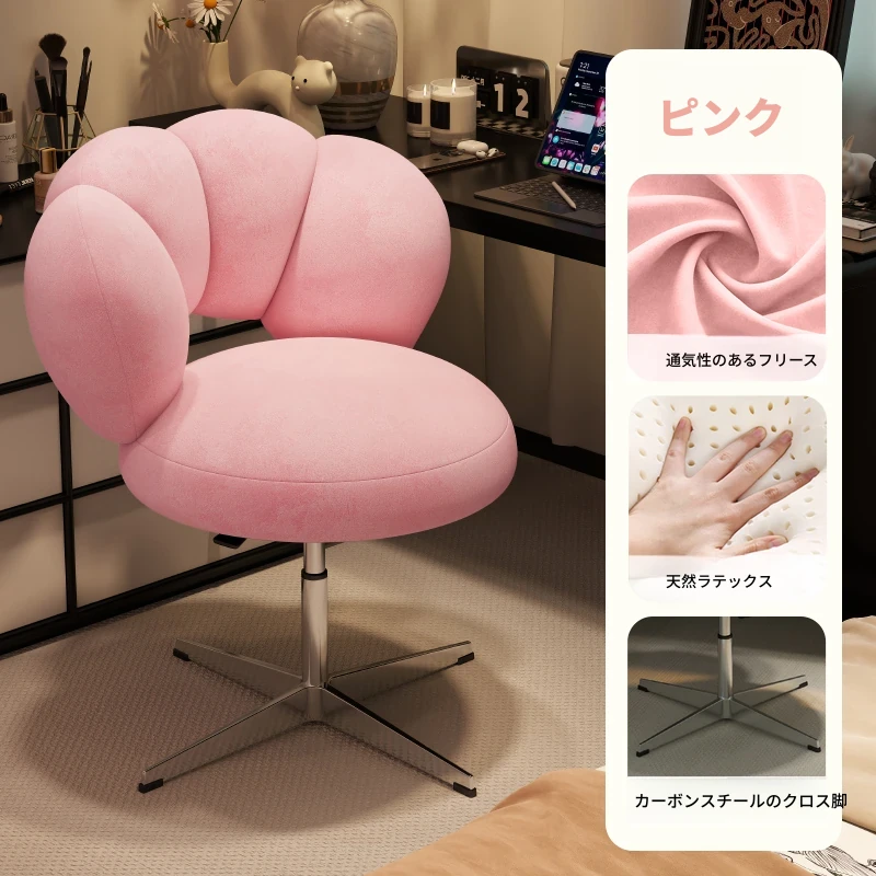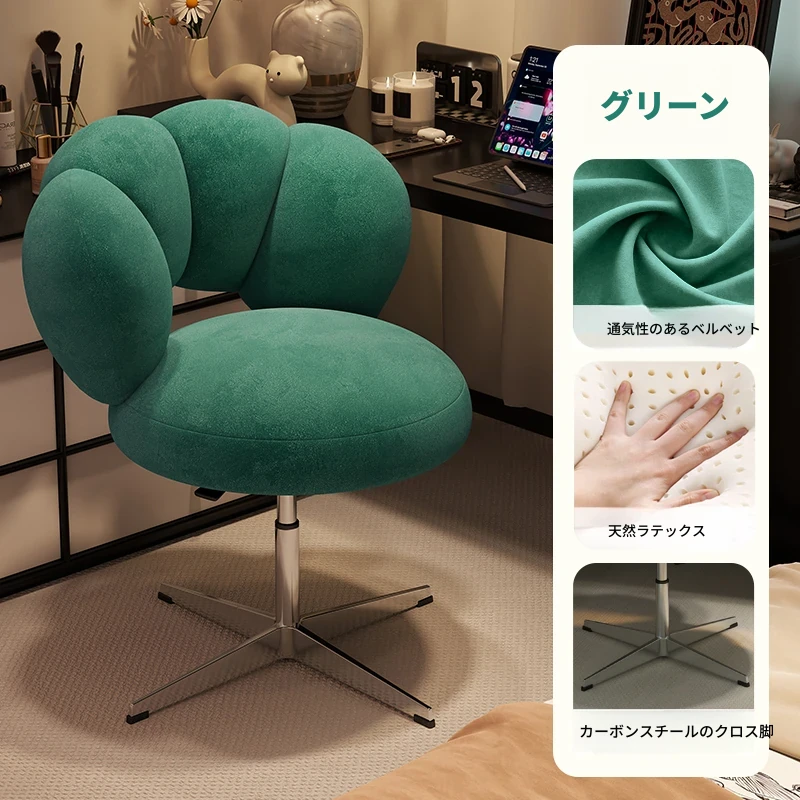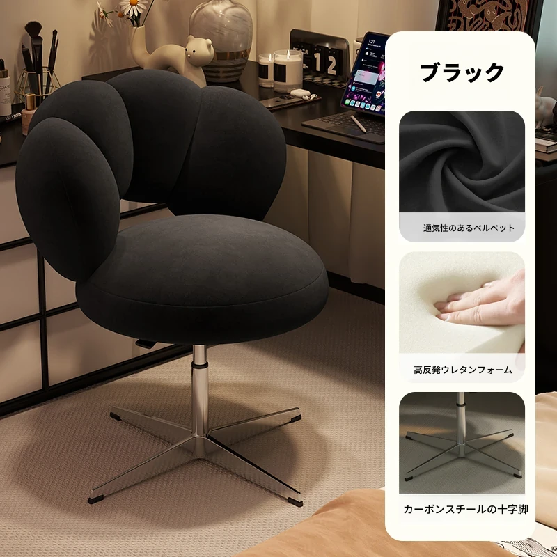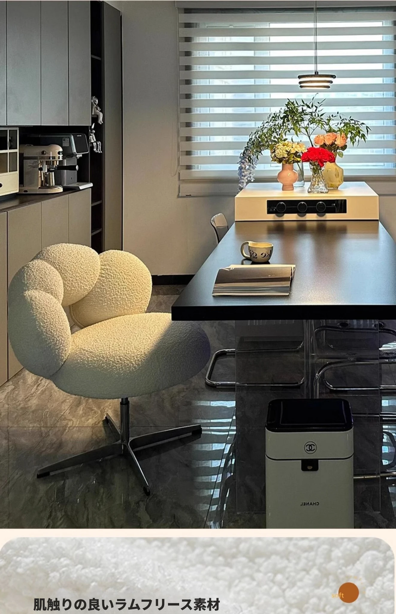 クリーム風回転式化粧椅子、ラグジュアリーな羊毛ファー仕上げ!女の子のための可愛い寝室にぴったりな、デザイナーズメイクアップスツール。ネイルサロンでも映えるおしゃれなデザイン!