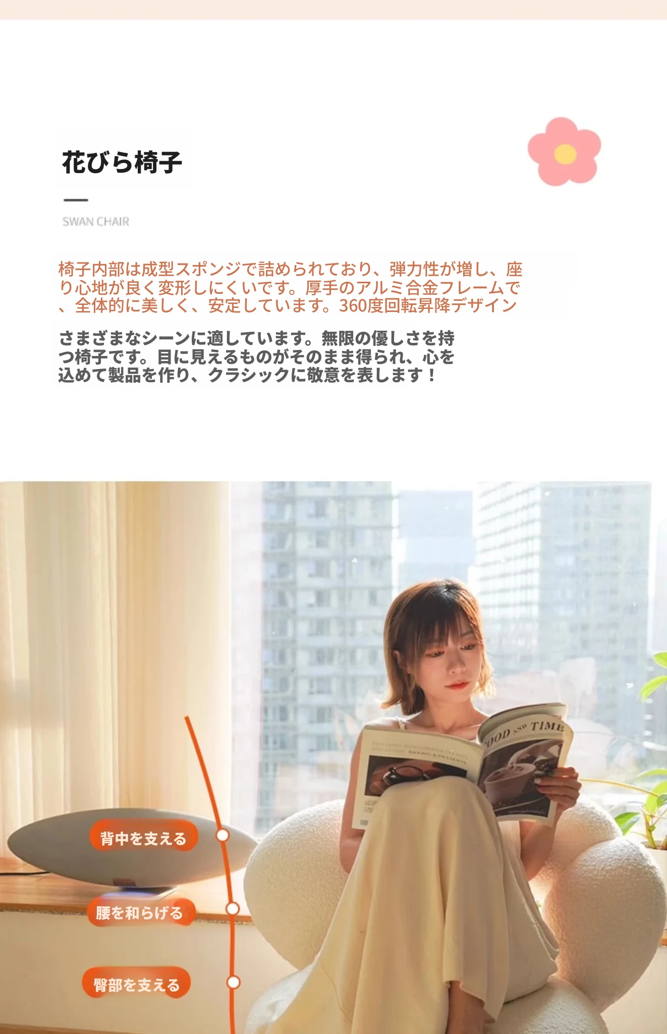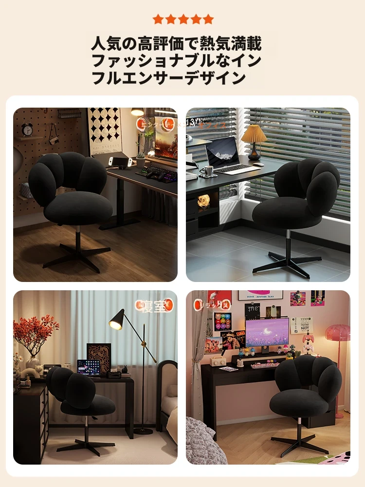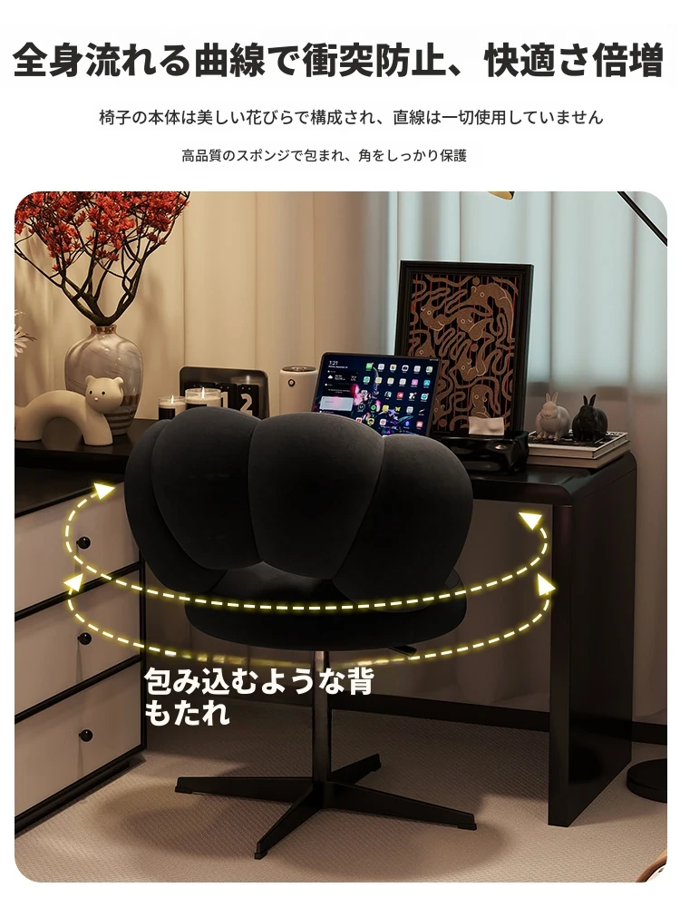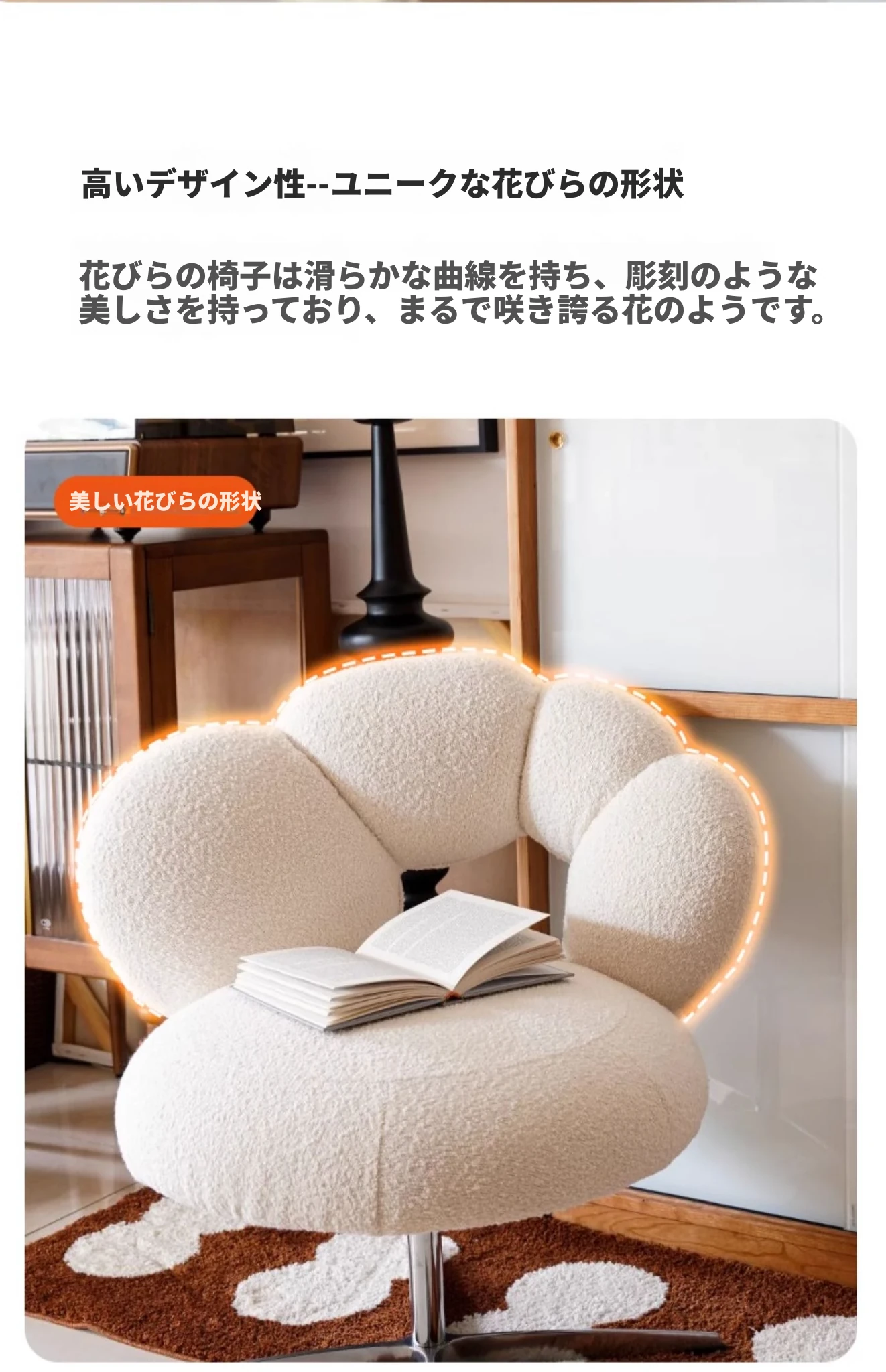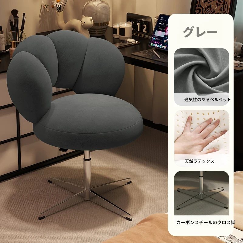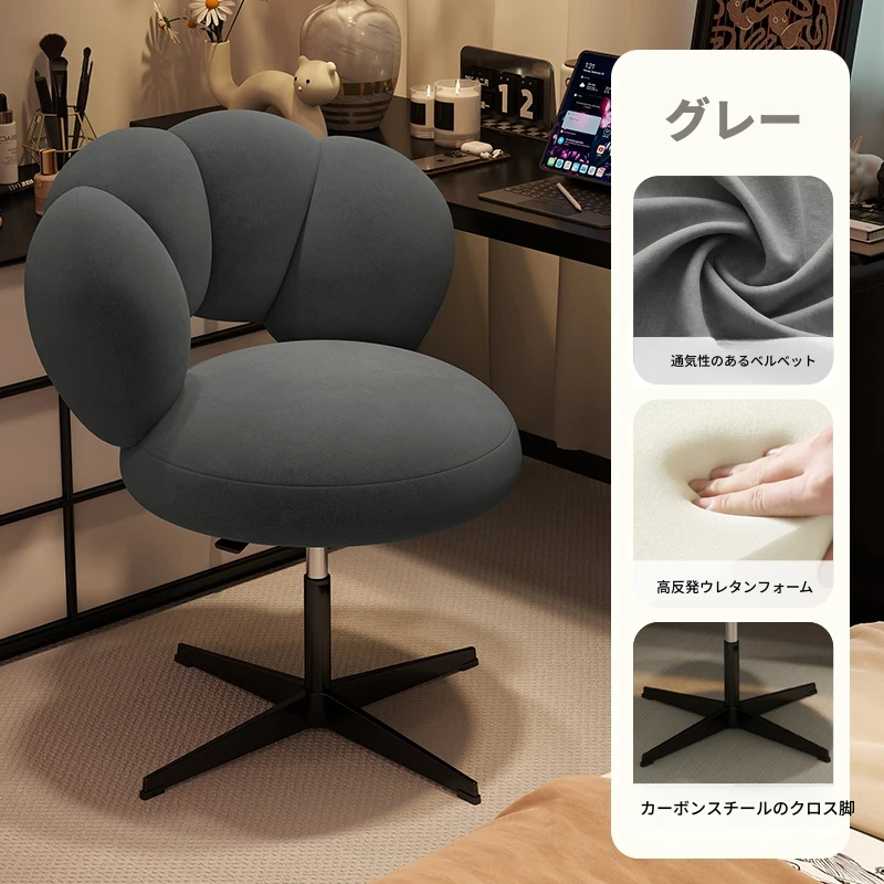 クリーム風回転式化粧椅子、ラグジュアリーな羊毛ファー仕上げ!女の子のための可愛い寝室にぴったりな、デザイナーズメイクアップスツール。ネイルサロンでも映えるおしゃれなデザイン!