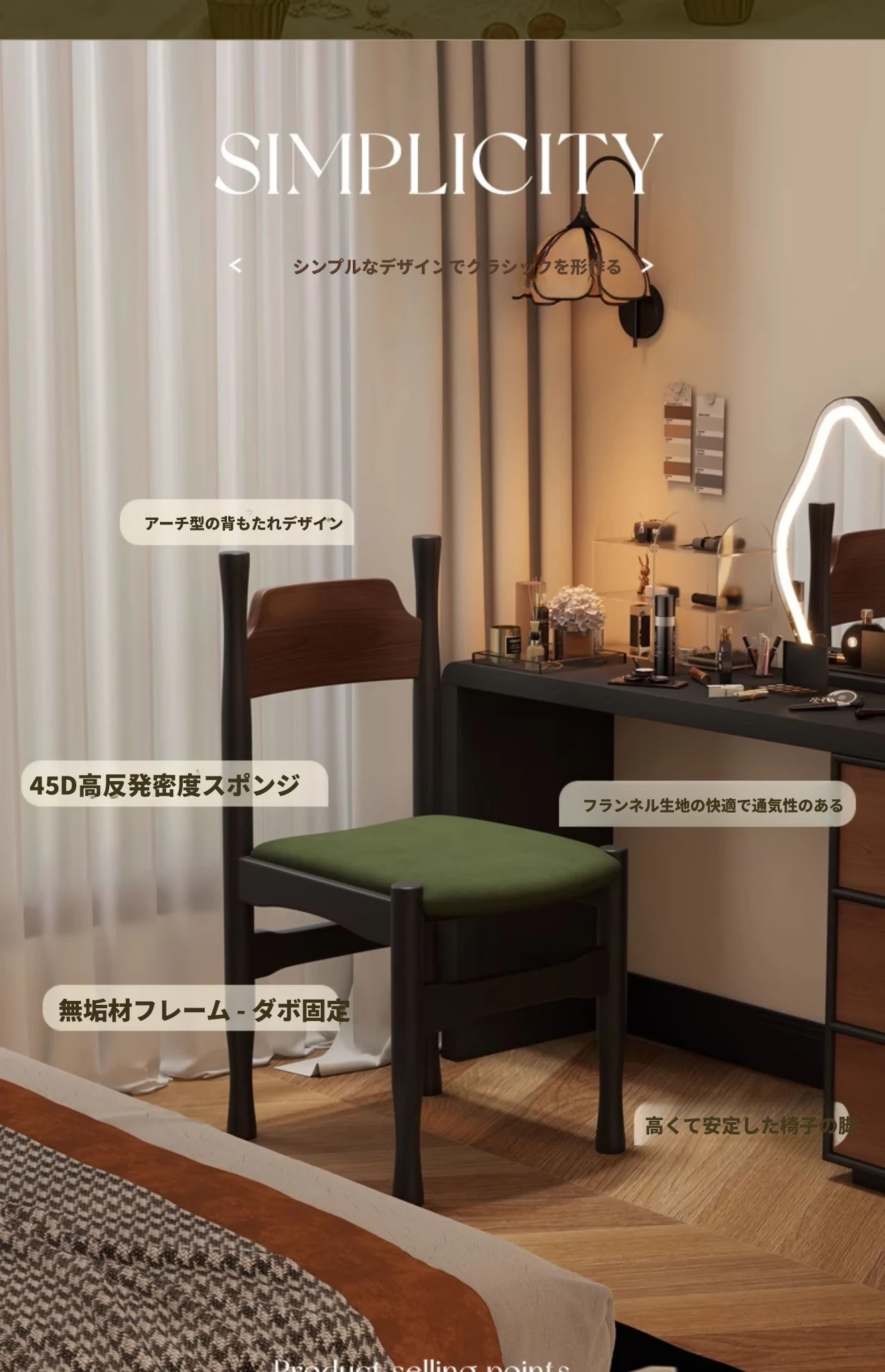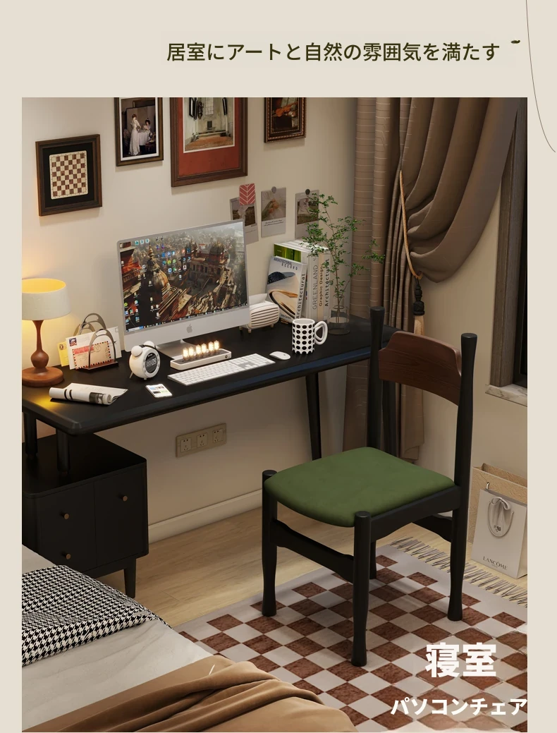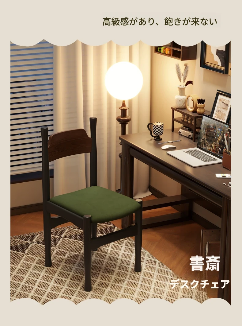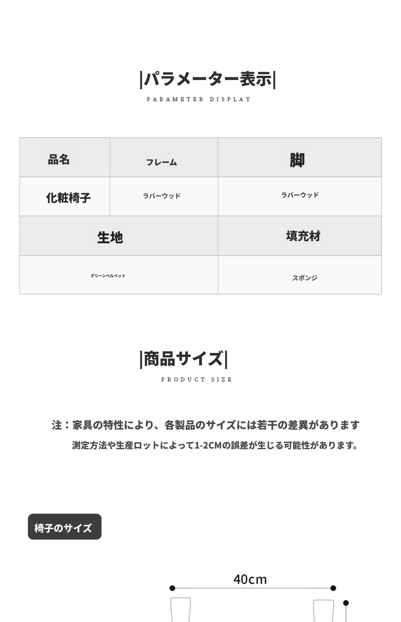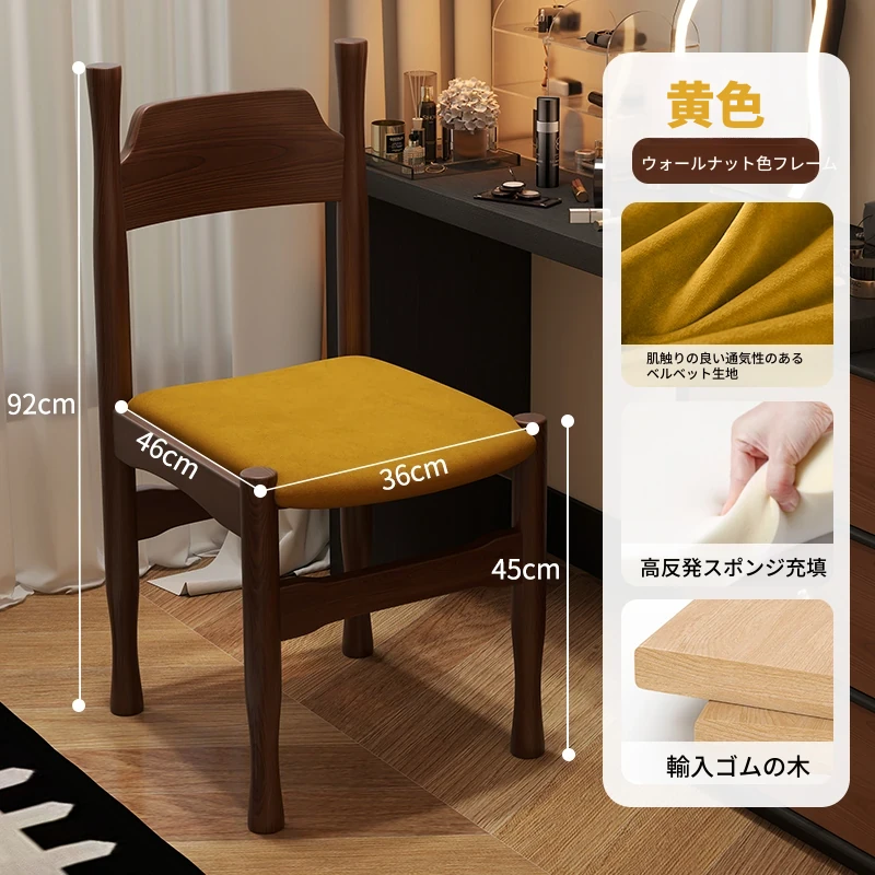 フレンチビンテージスタイルの高級実木化粧台椅子|エレガントな背もたれ付きグリーンチェア|書斎やドレッシングルームにぴったり!あなたの空間を華やかに演出します。