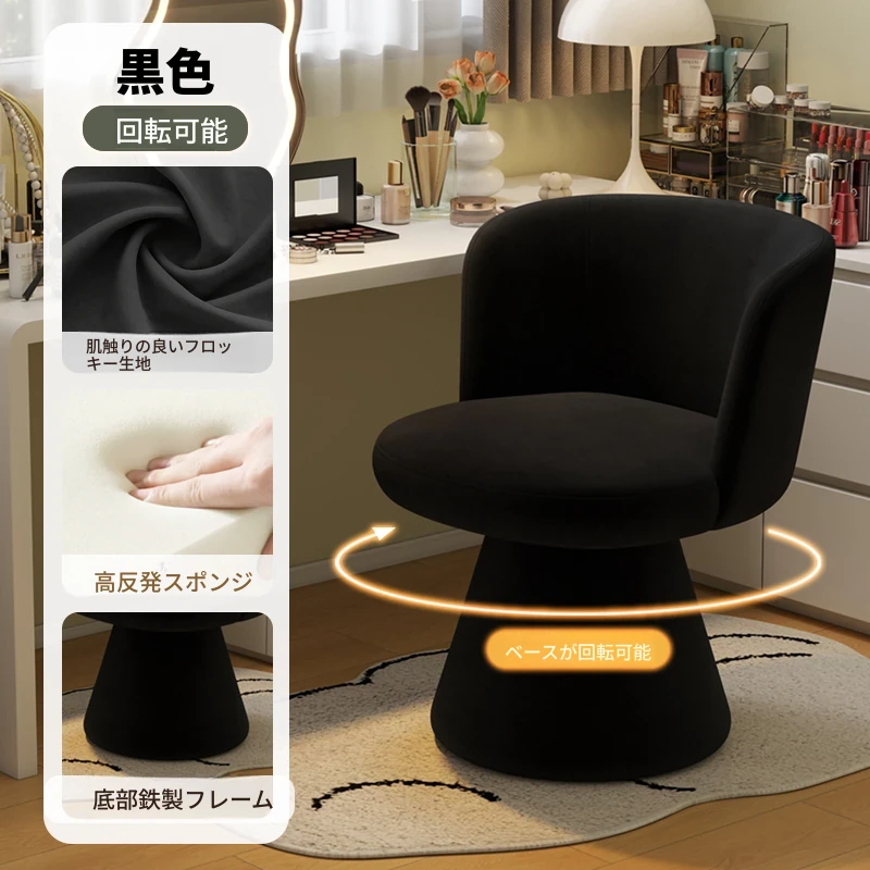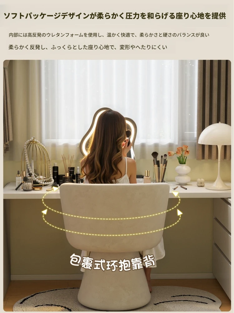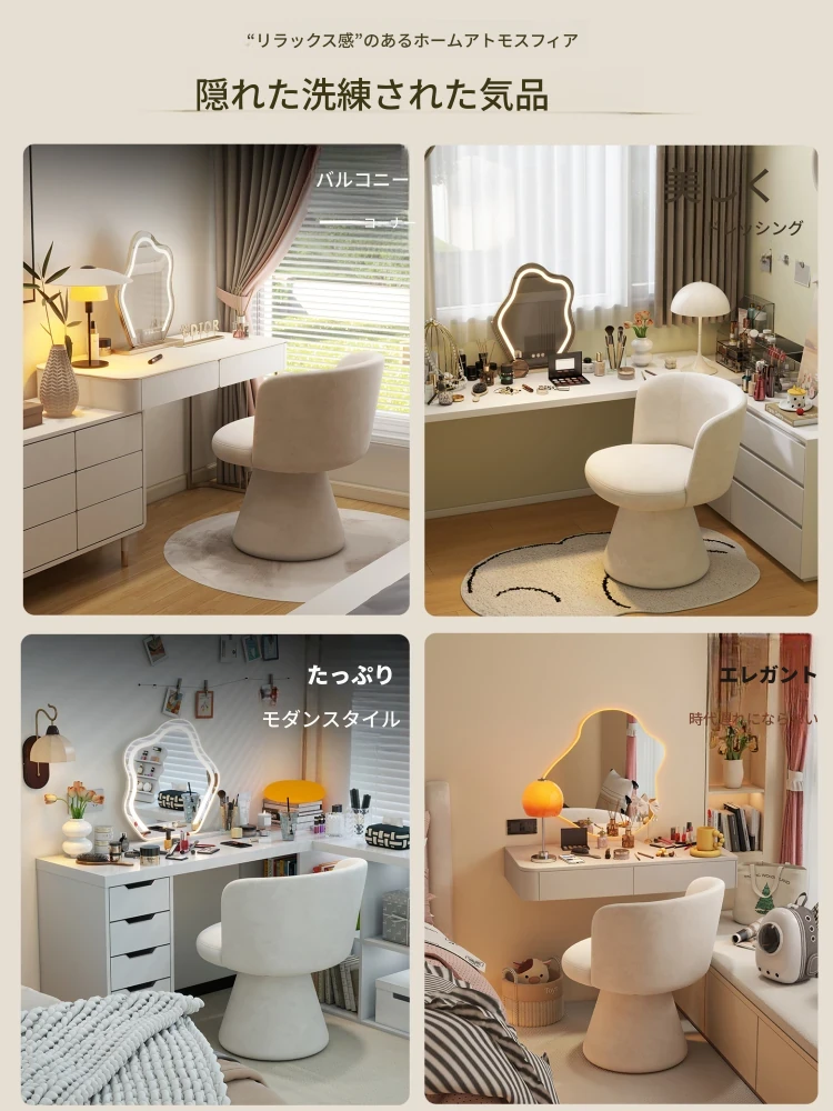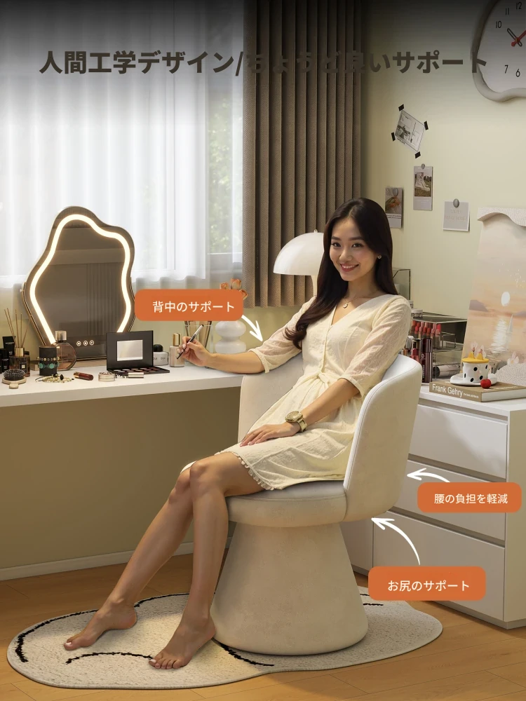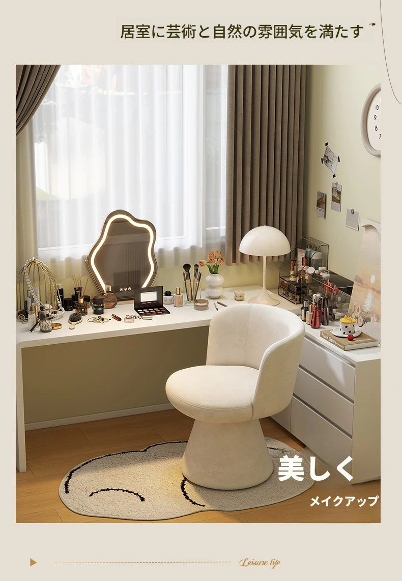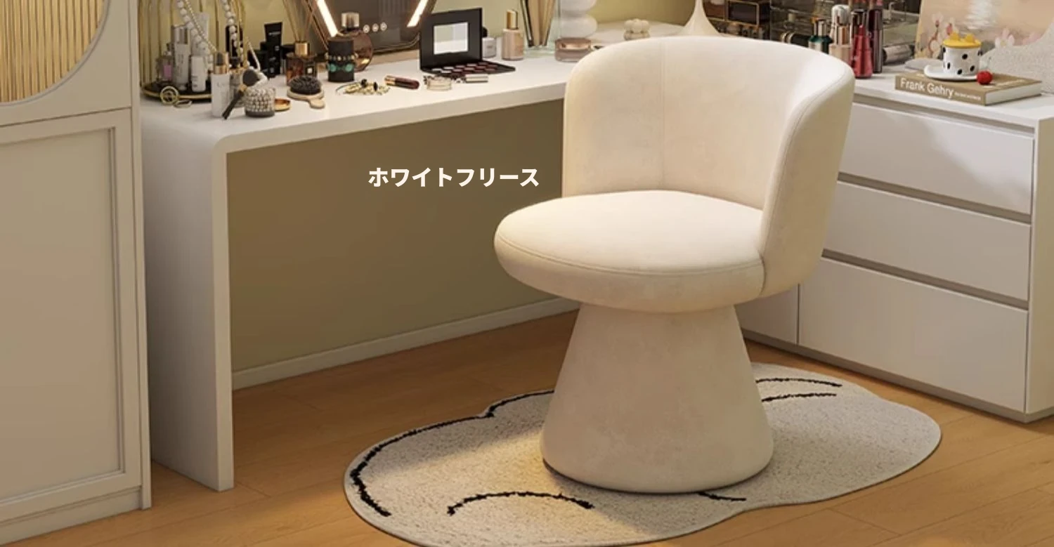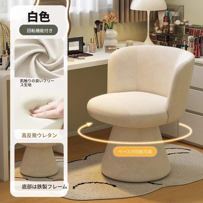 家庭用化粧椅、花びら型のデザインが魅力的!軽やかで高級感溢れるスタイル。女性の寝室にぴったりなクリーミーな雰囲気のドレッサーチェア。回転式でネイル作業にも最適!