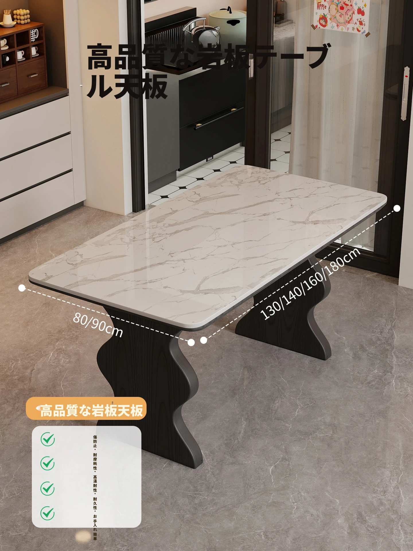 【包安装】1.8*0.9m【ゴビの印象】-ラバーウッドテーブルレッグ