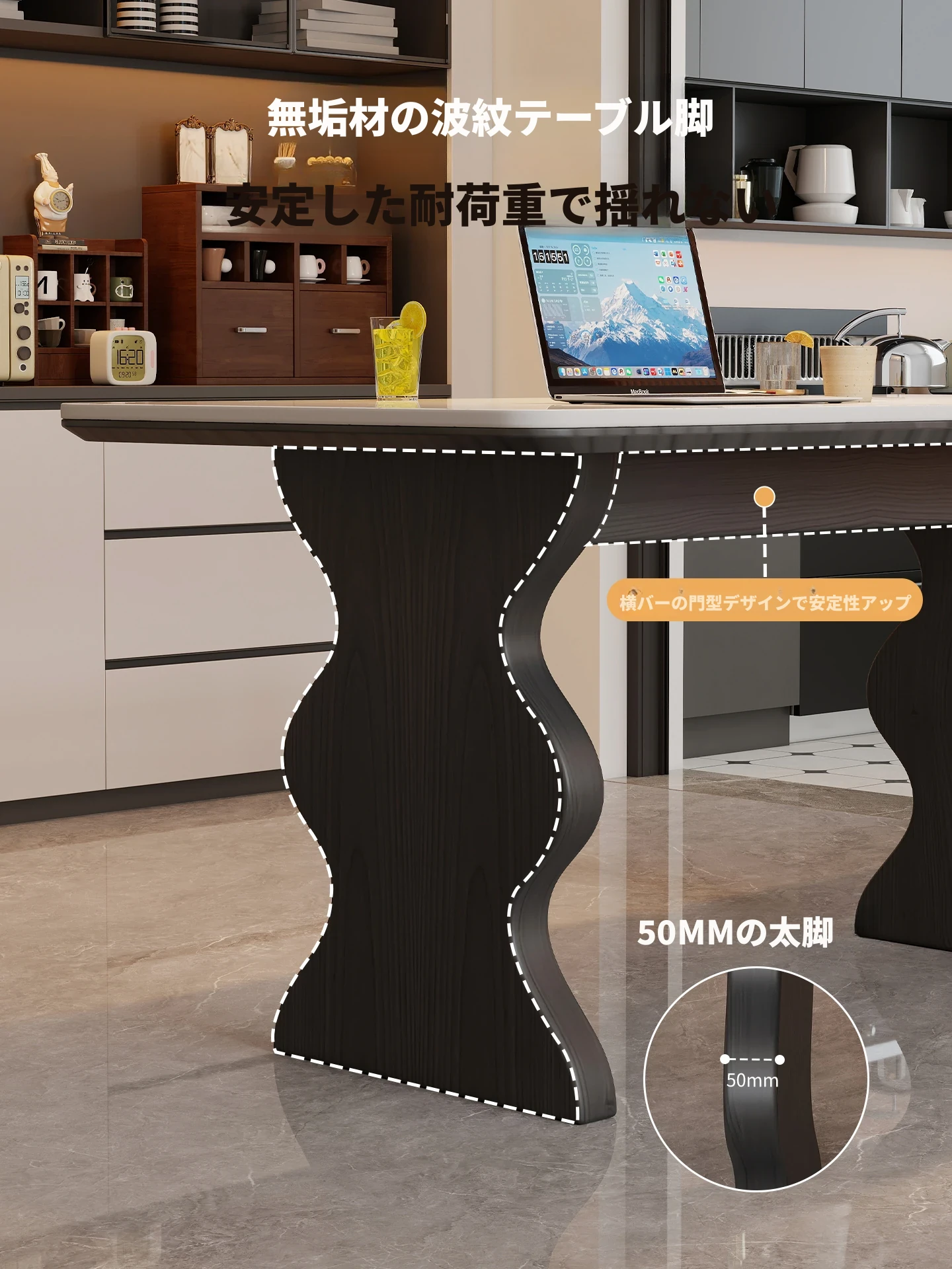 【包安装】1.3*0.8m【大地の脈動】-ラバーウッドテーブルレッグ