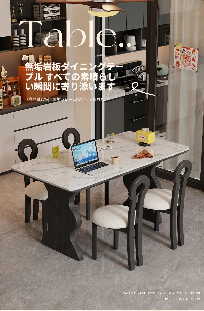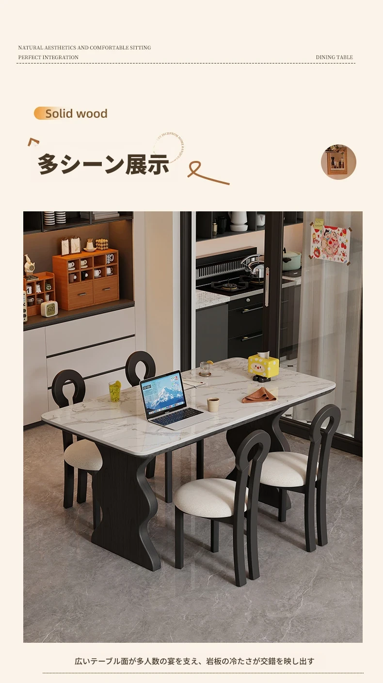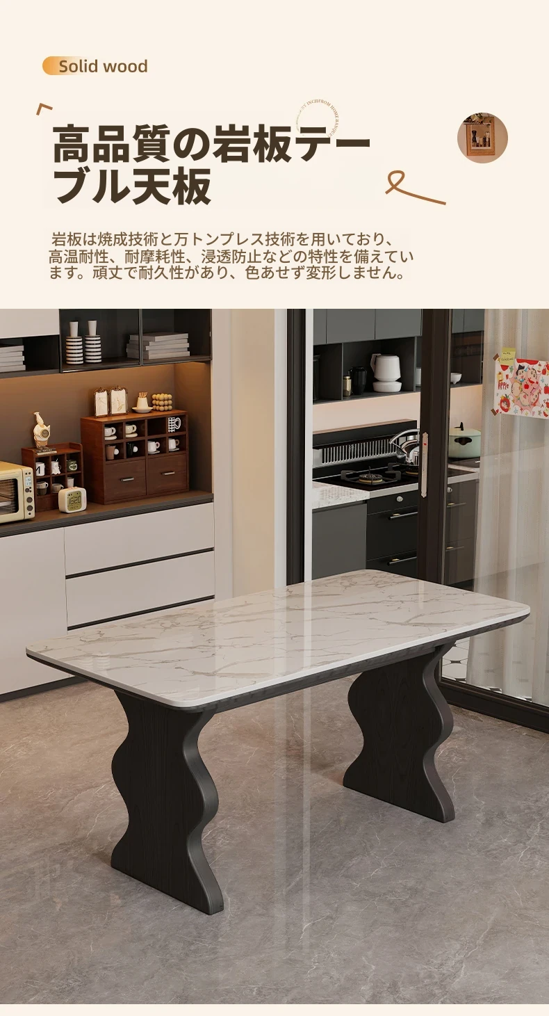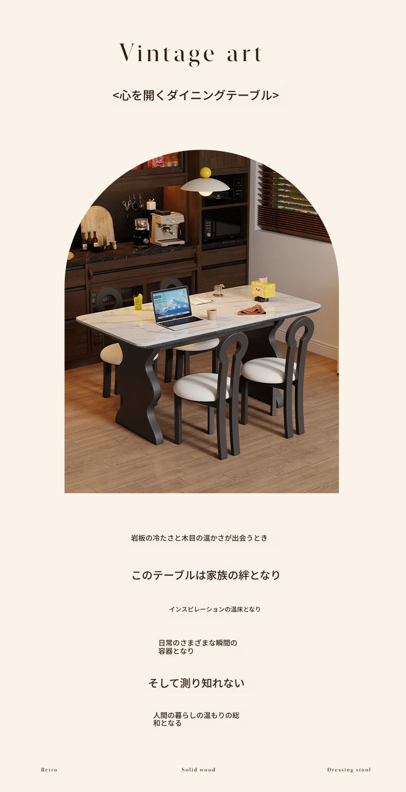フランス風ビンテージ無垢材ロックボードダイニングテーブル|イタリアンラグジュアリー|高級感あふれるブラック|コンパクトサイズで小宅に最適|アメリカンスタイルのウッドテーブル