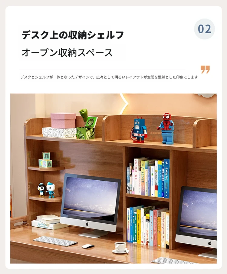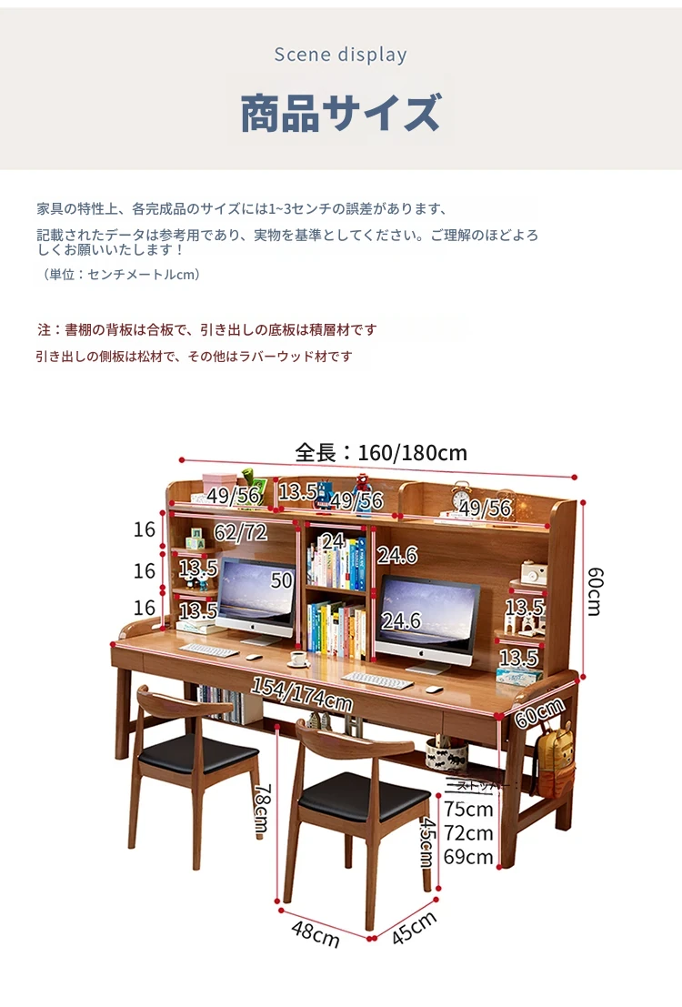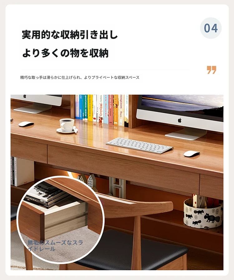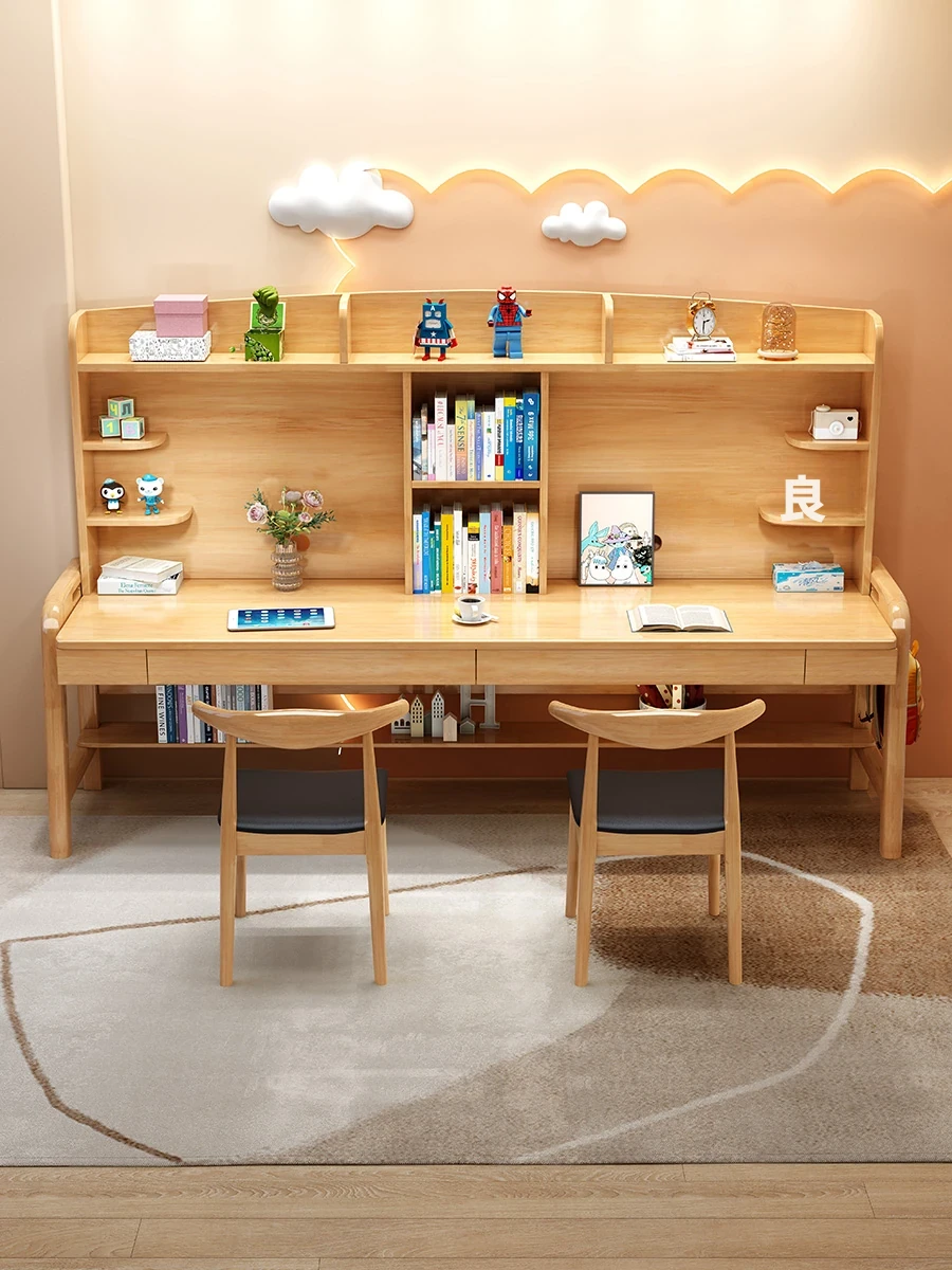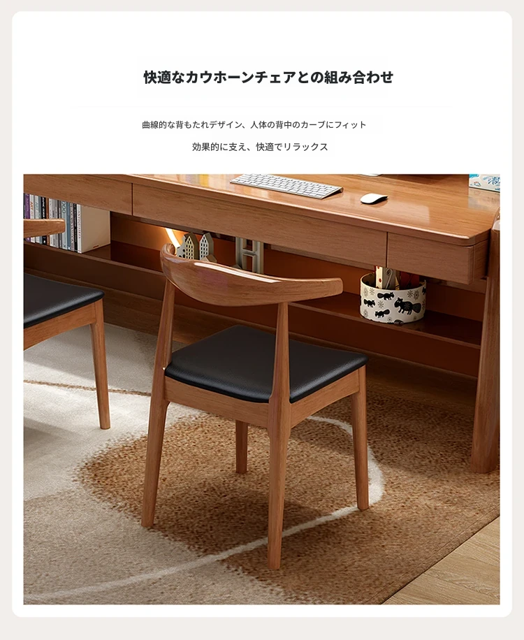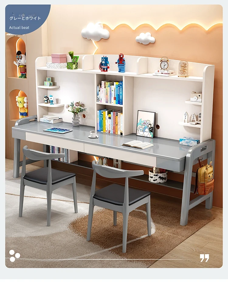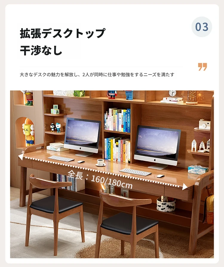 【シンプルモダン】天然木材使用!家庭用オフィスのデュアルデスク:実用性抜群の書棚一体型PCデスク