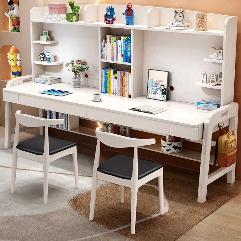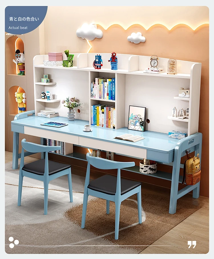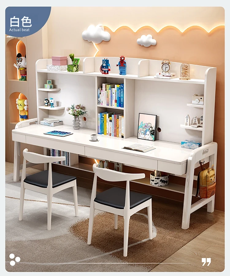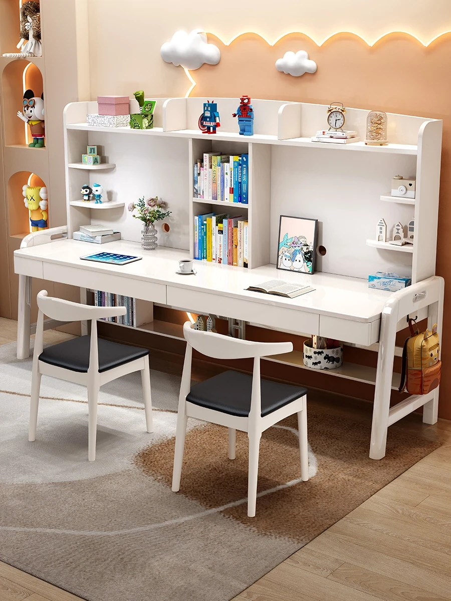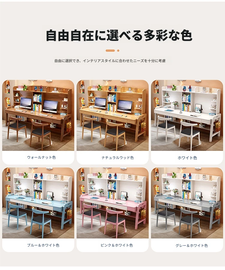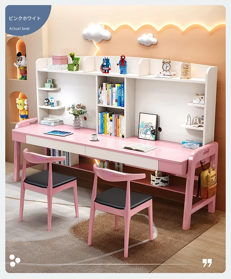 【シンプルモダン】天然木材使用!家庭用オフィスのデュアルデスク:実用性抜群の書棚一体型PCデスク