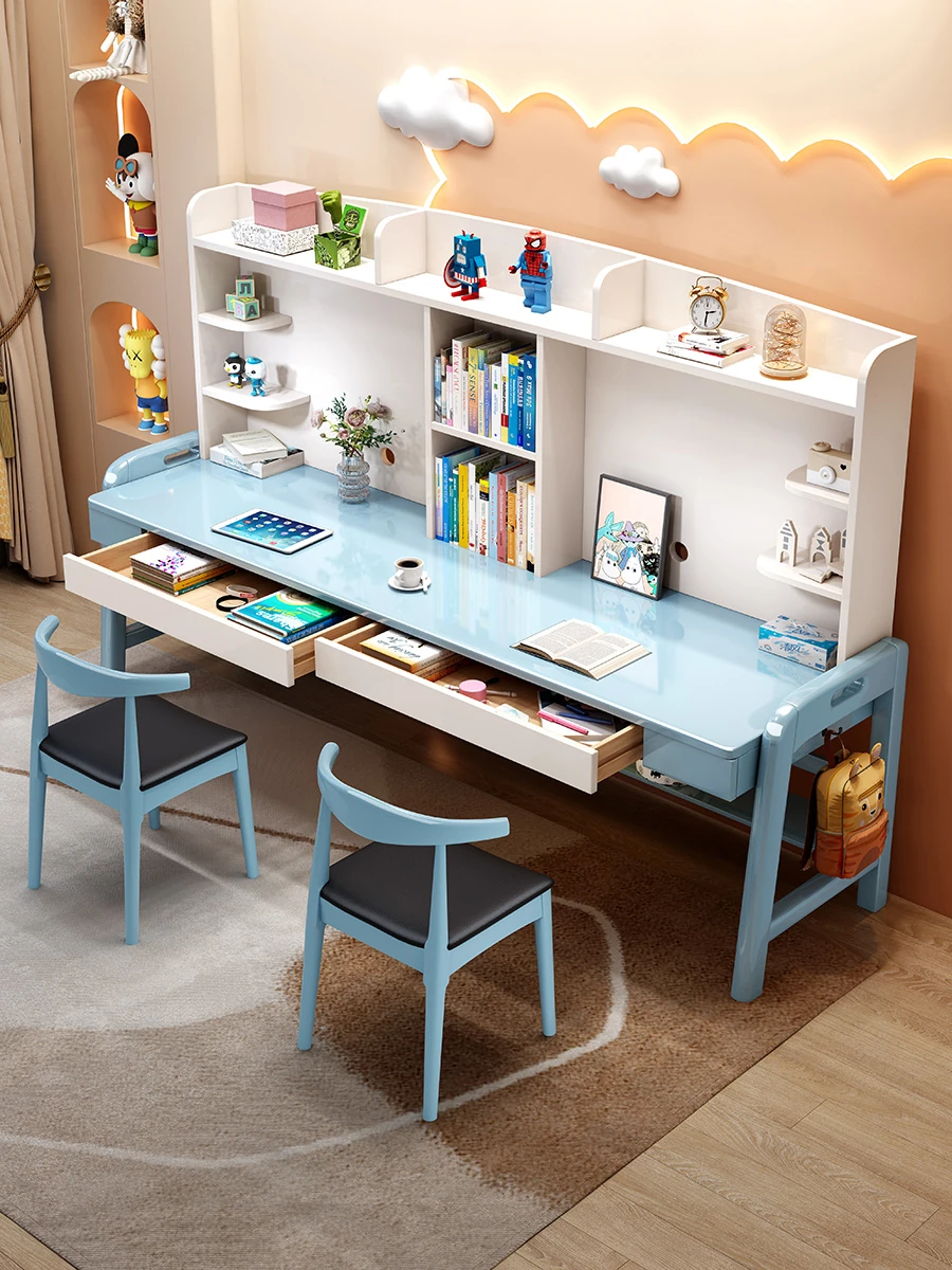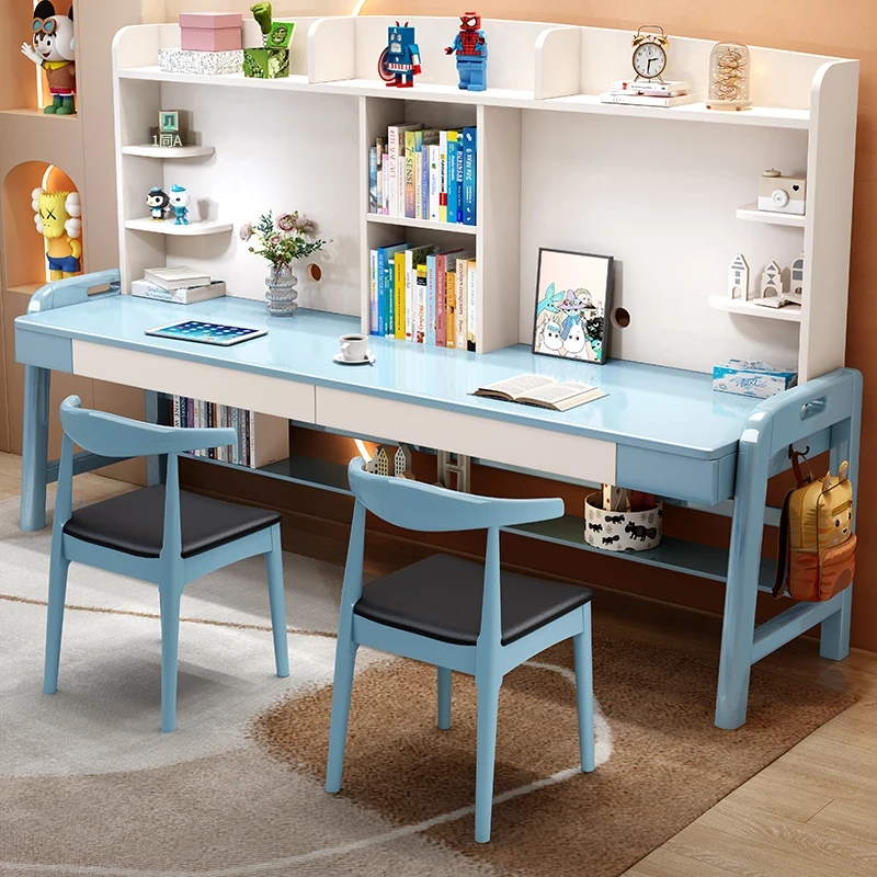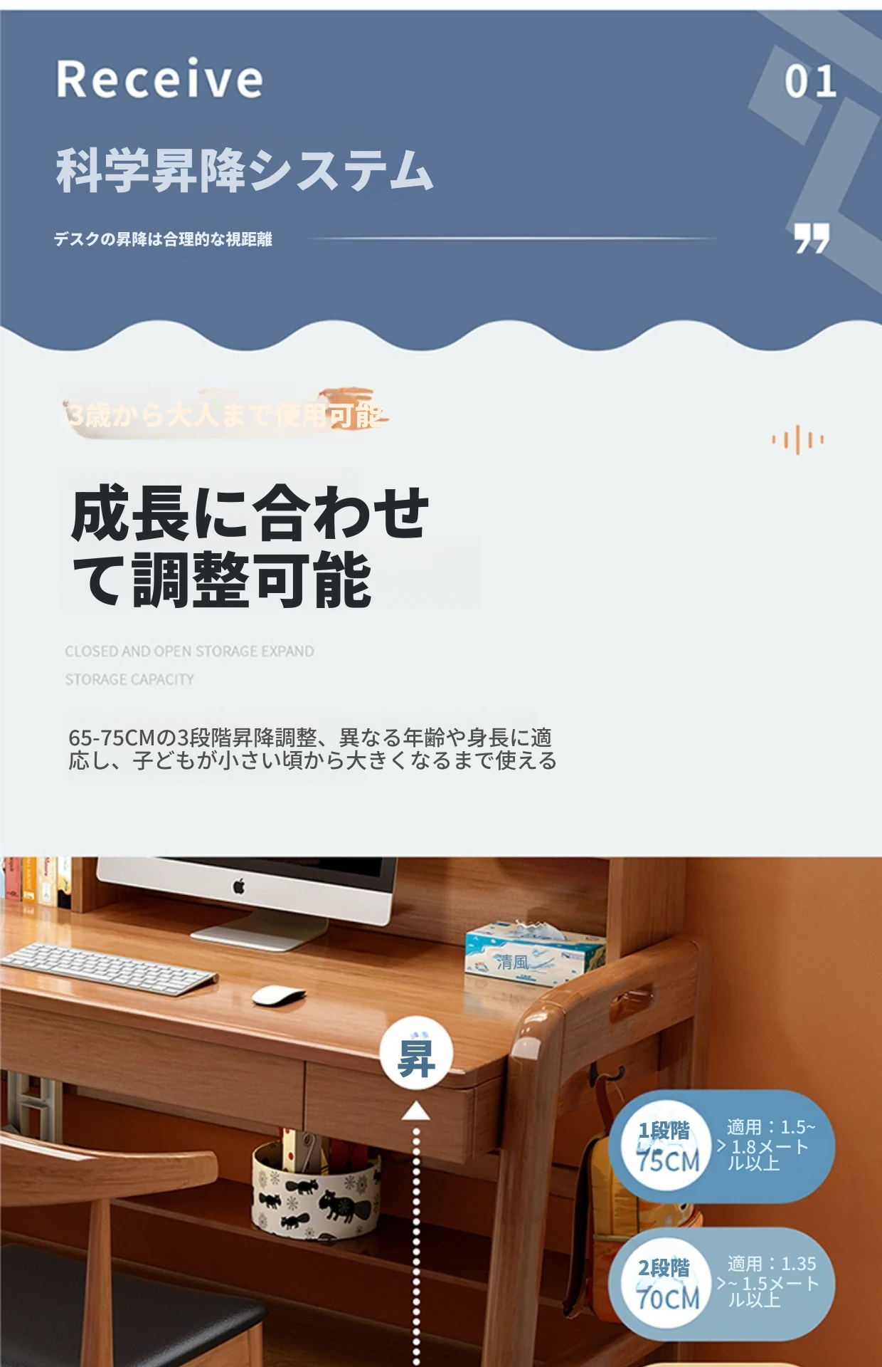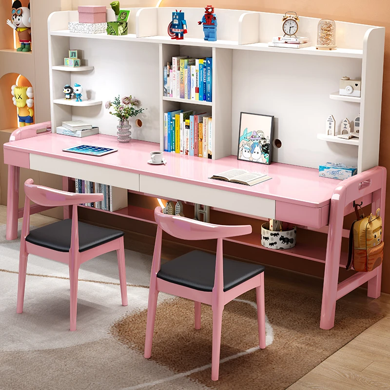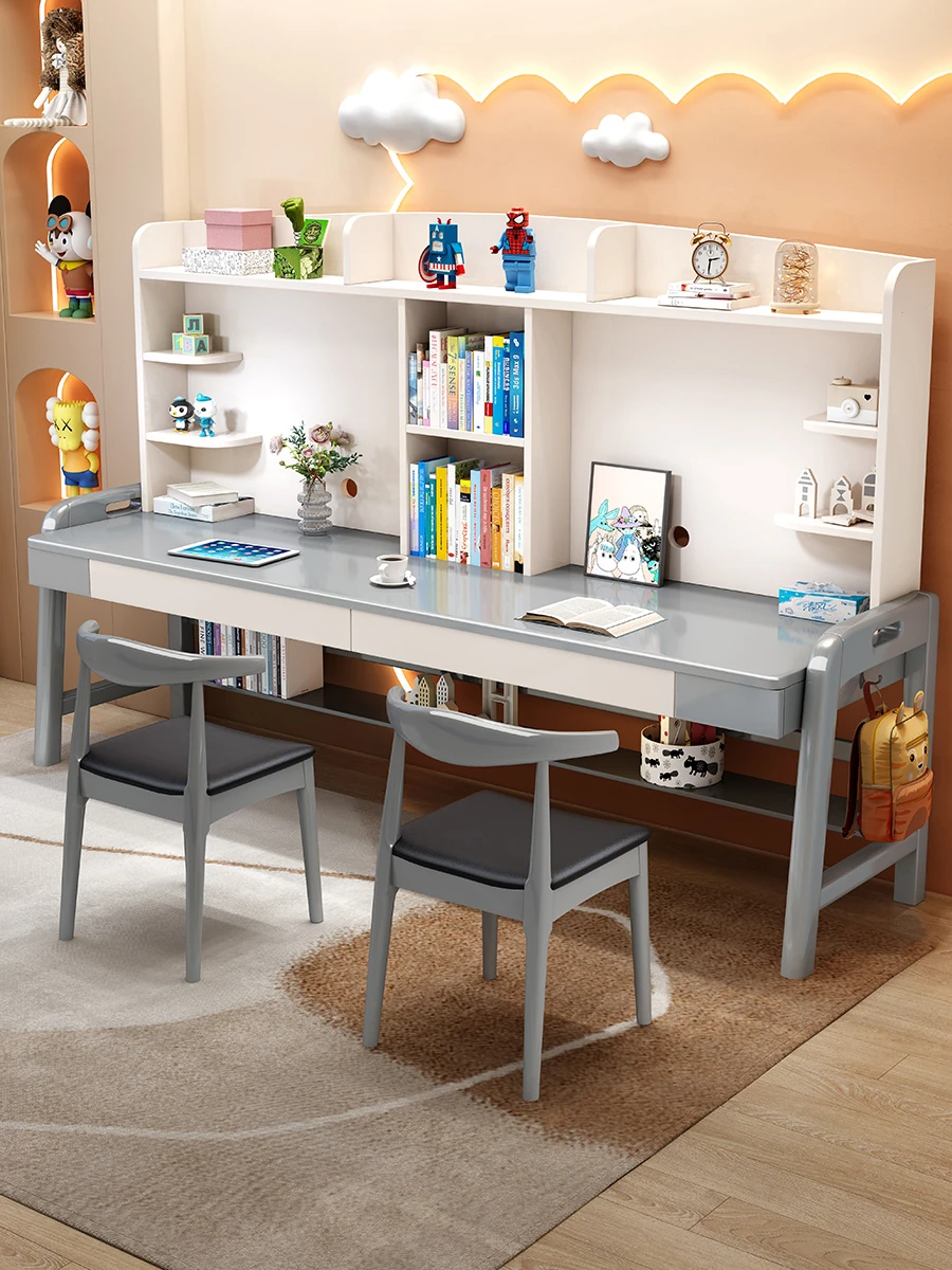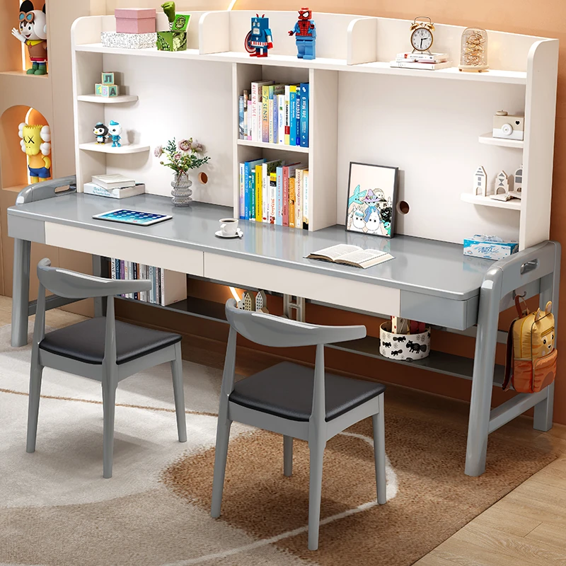 【シンプルモダン】天然木材使用!家庭用オフィスのデュアルデスク:実用性抜群の書棚一体型PCデスク