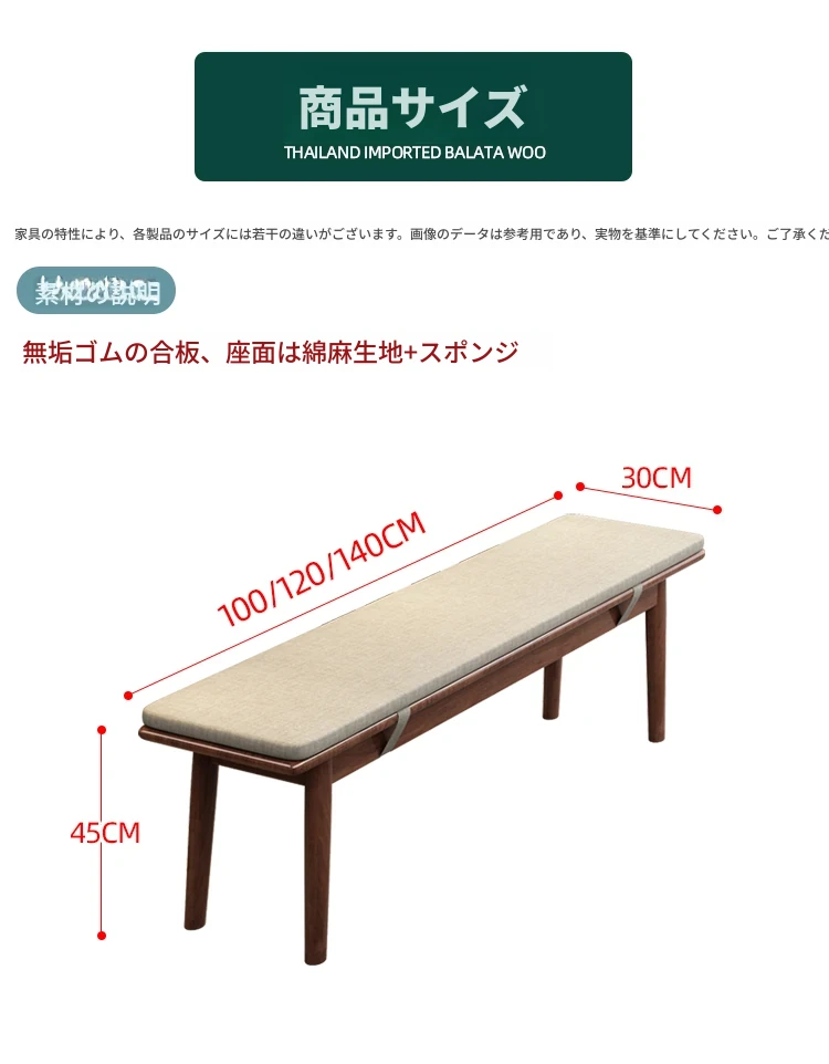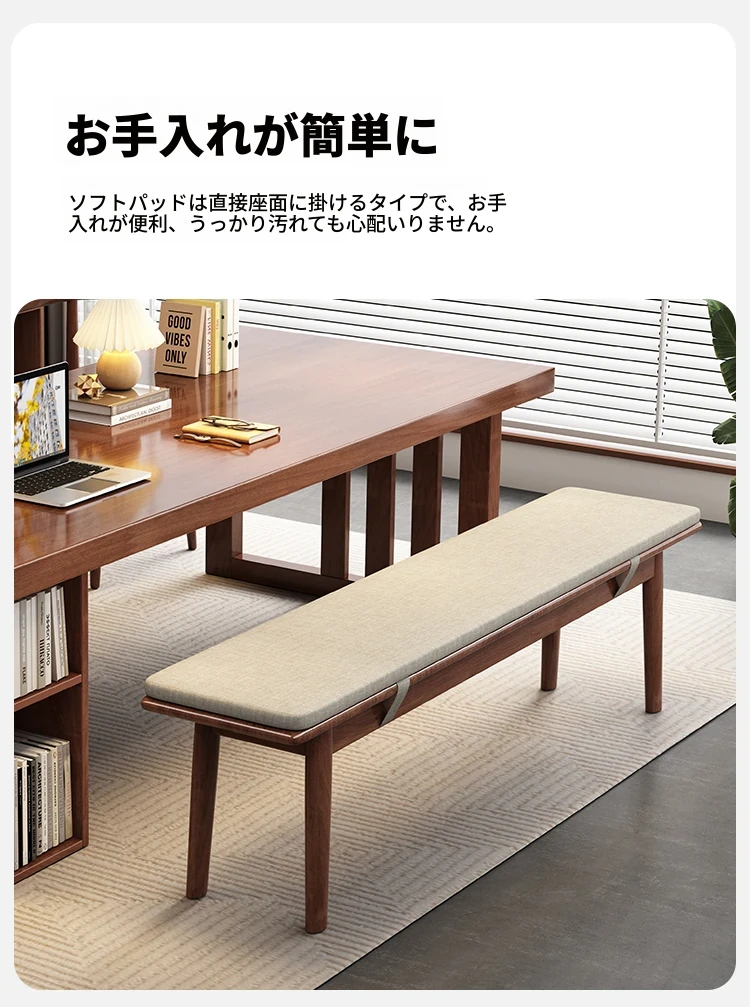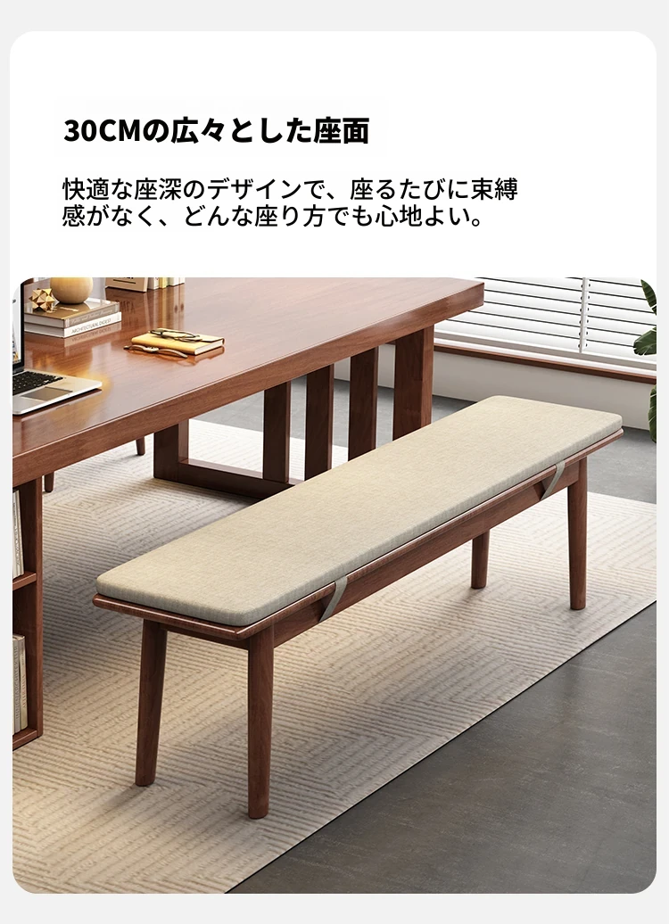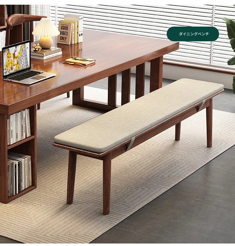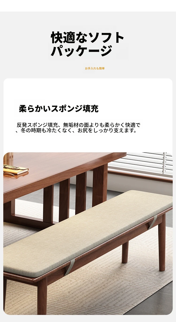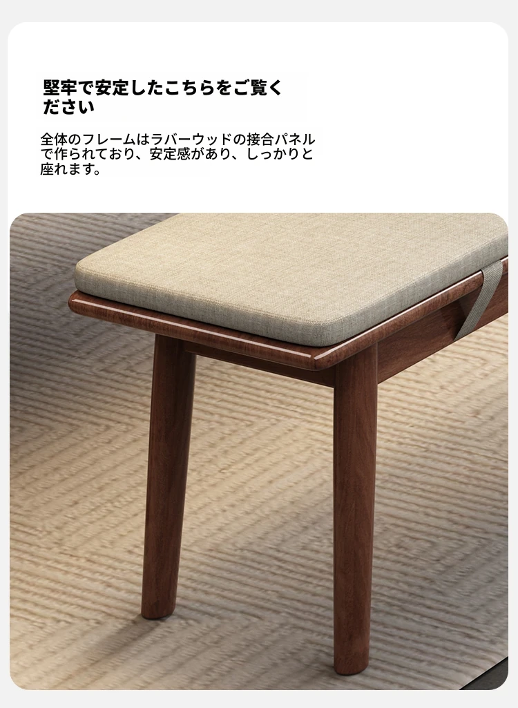 北欧風の無垢材ベッドサイドベンチ|シンプルでスタイリッシュな日本式|寝室や玄関、ダイニングにも最適なロングベンチ|靴を履く時やくつろぎの場にぴったりの木製ベンチです!
