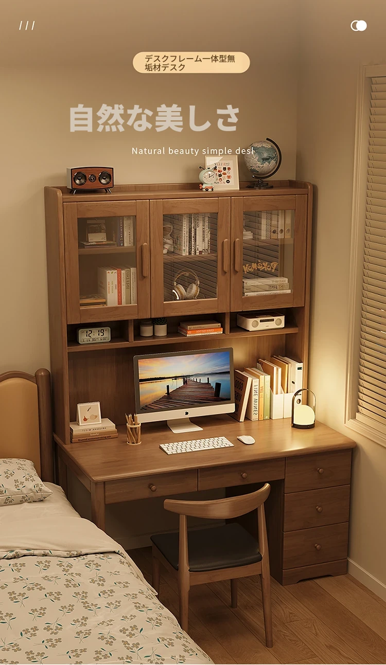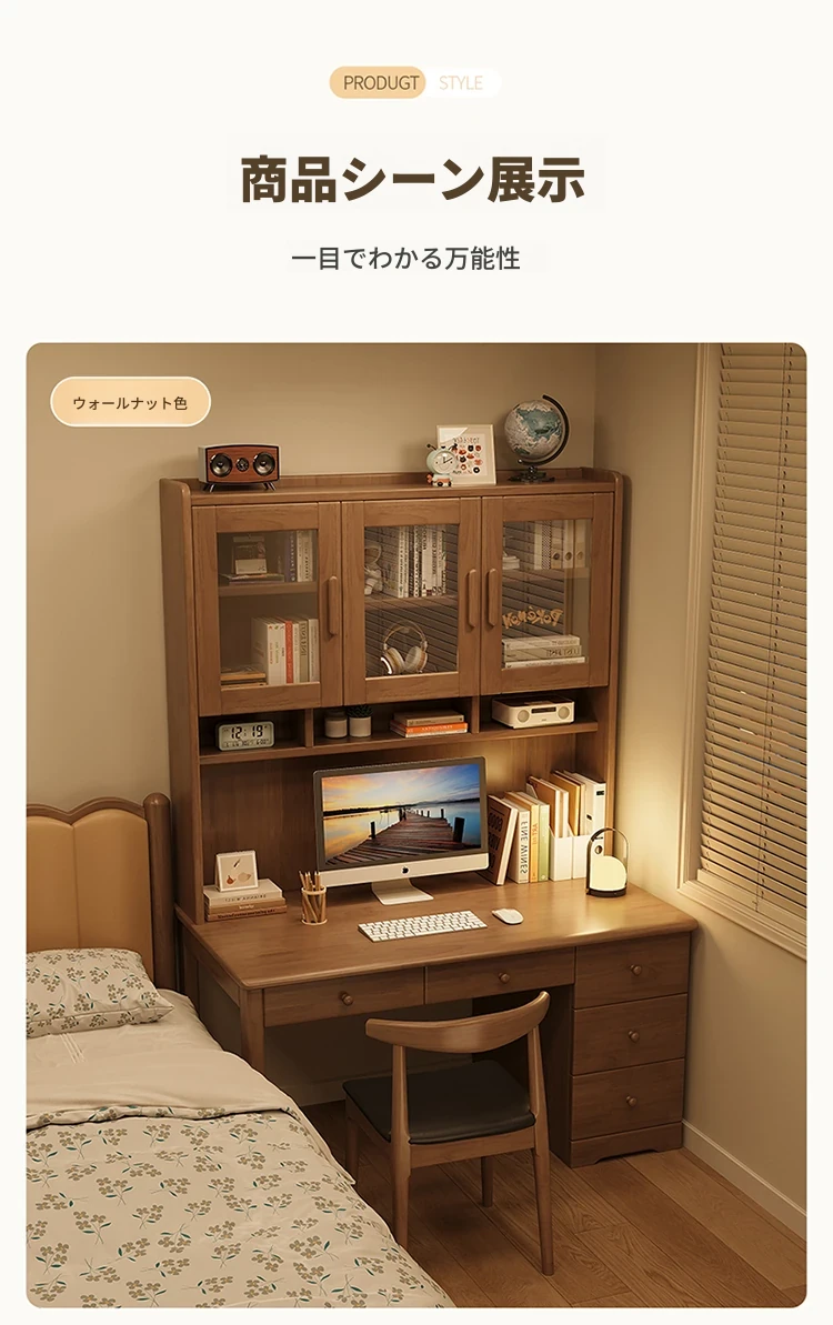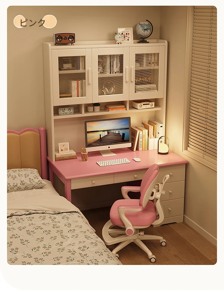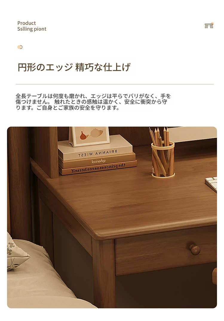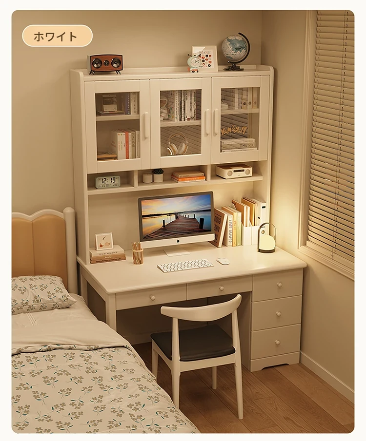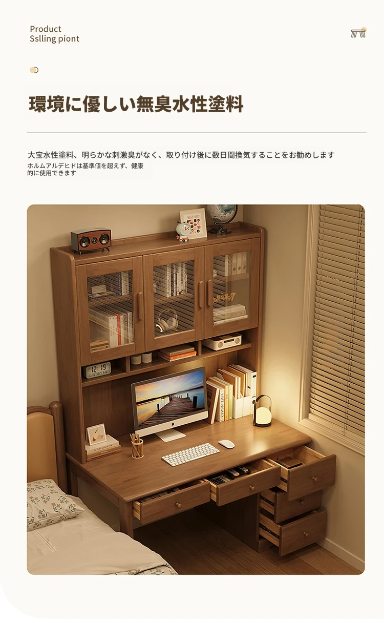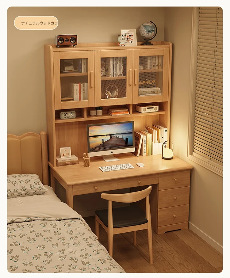 【魅力発見!】オールインワン子供用学習デスク ベッドサイド・無垢材製ライティングデスク