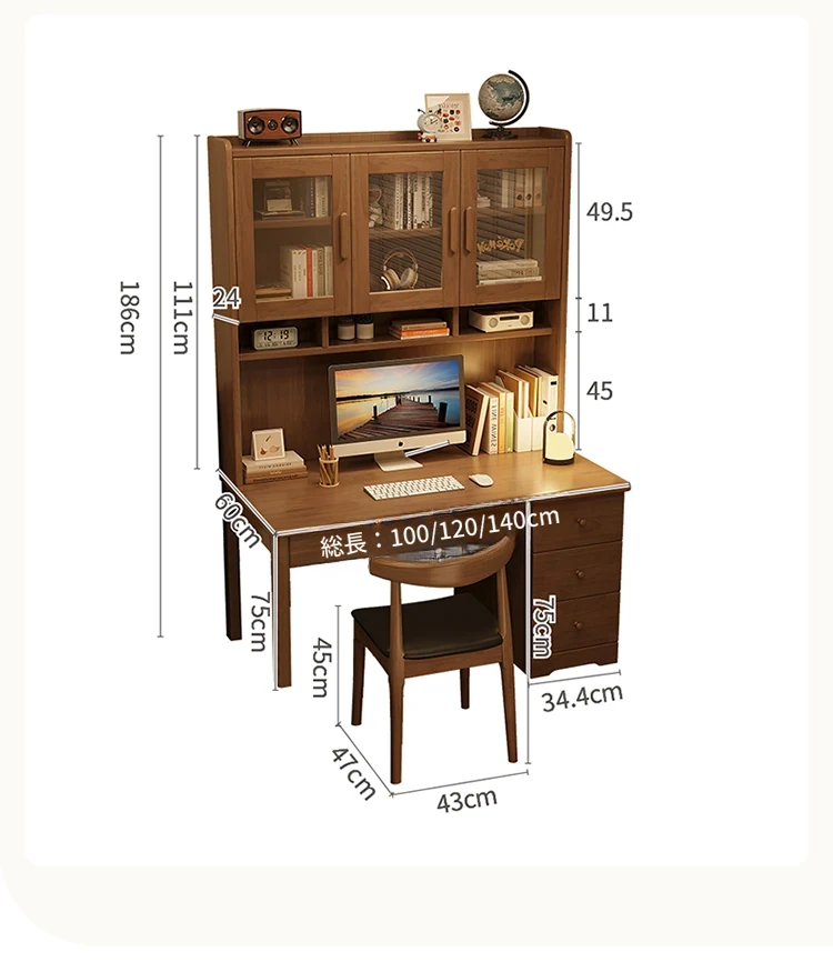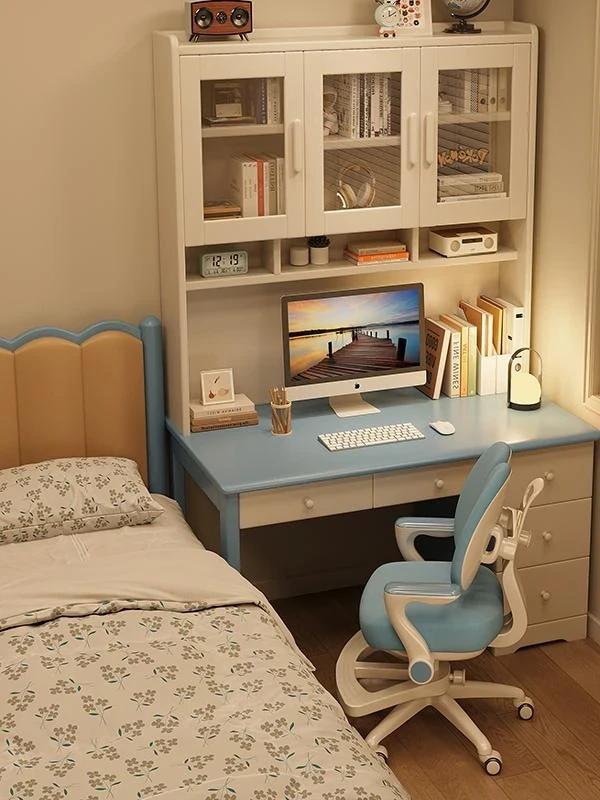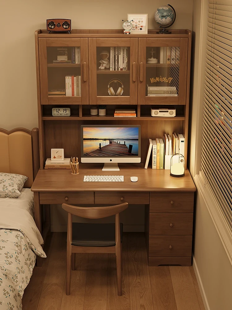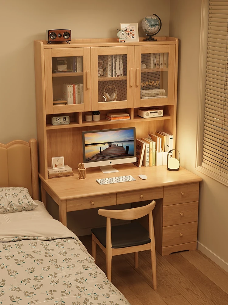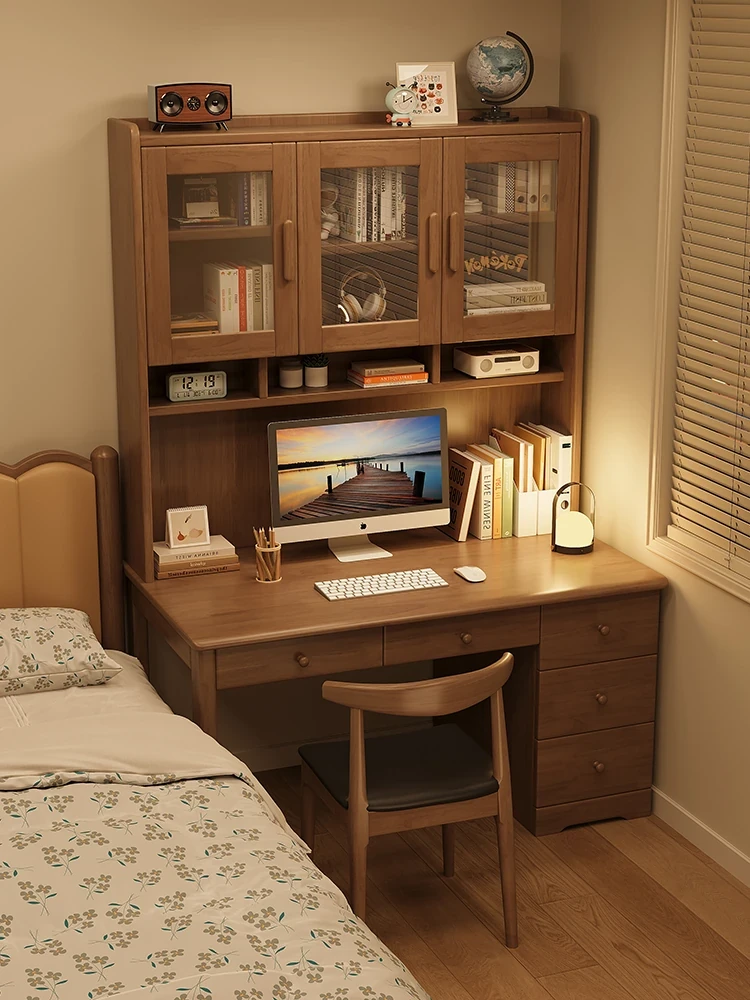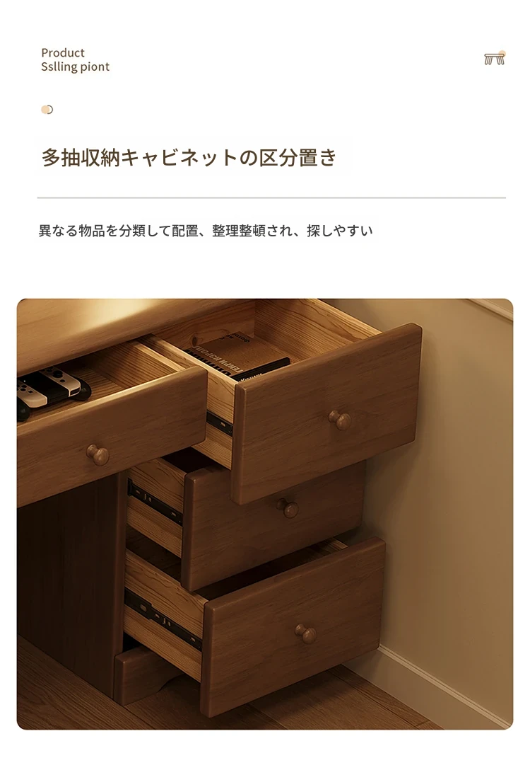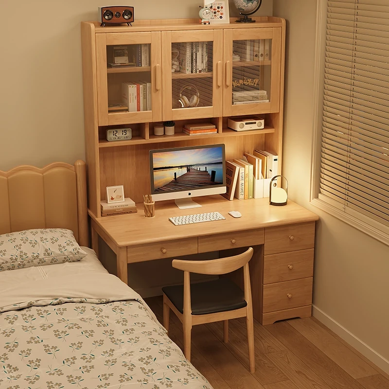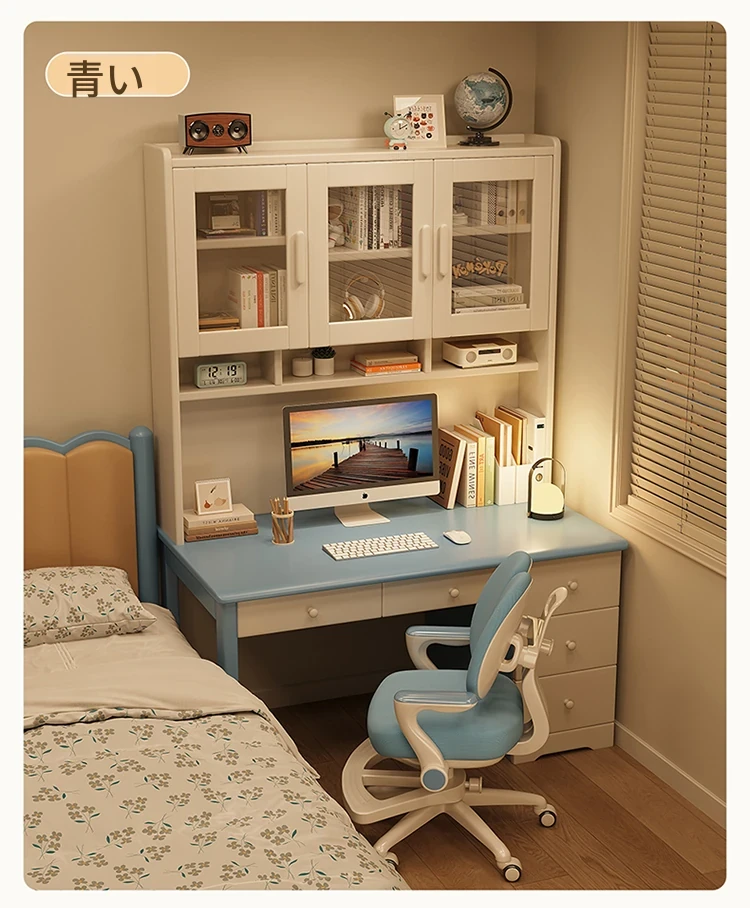 【魅力発見!】オールインワン子供用学習デスク ベッドサイド・無垢材製ライティングデスク