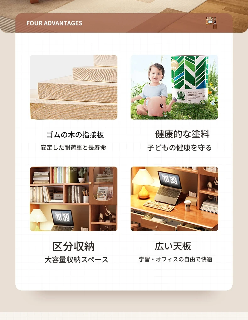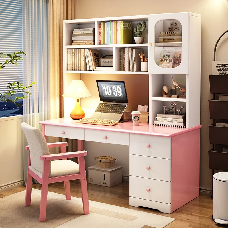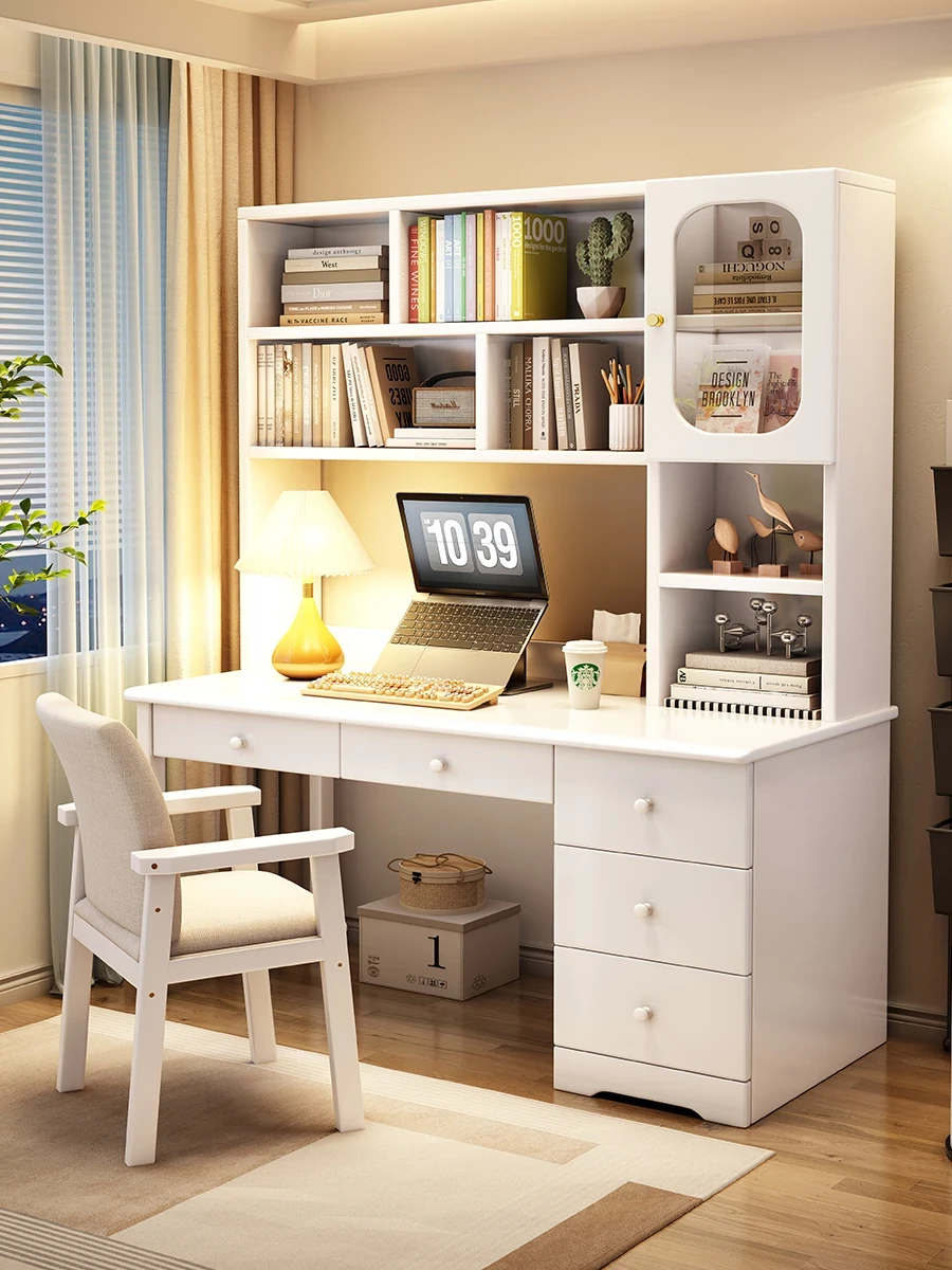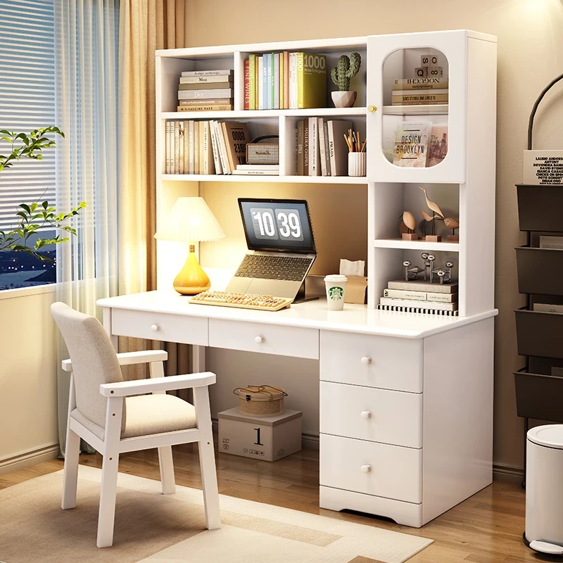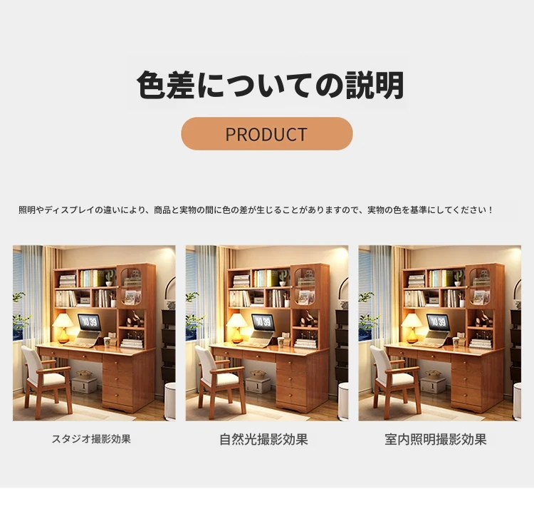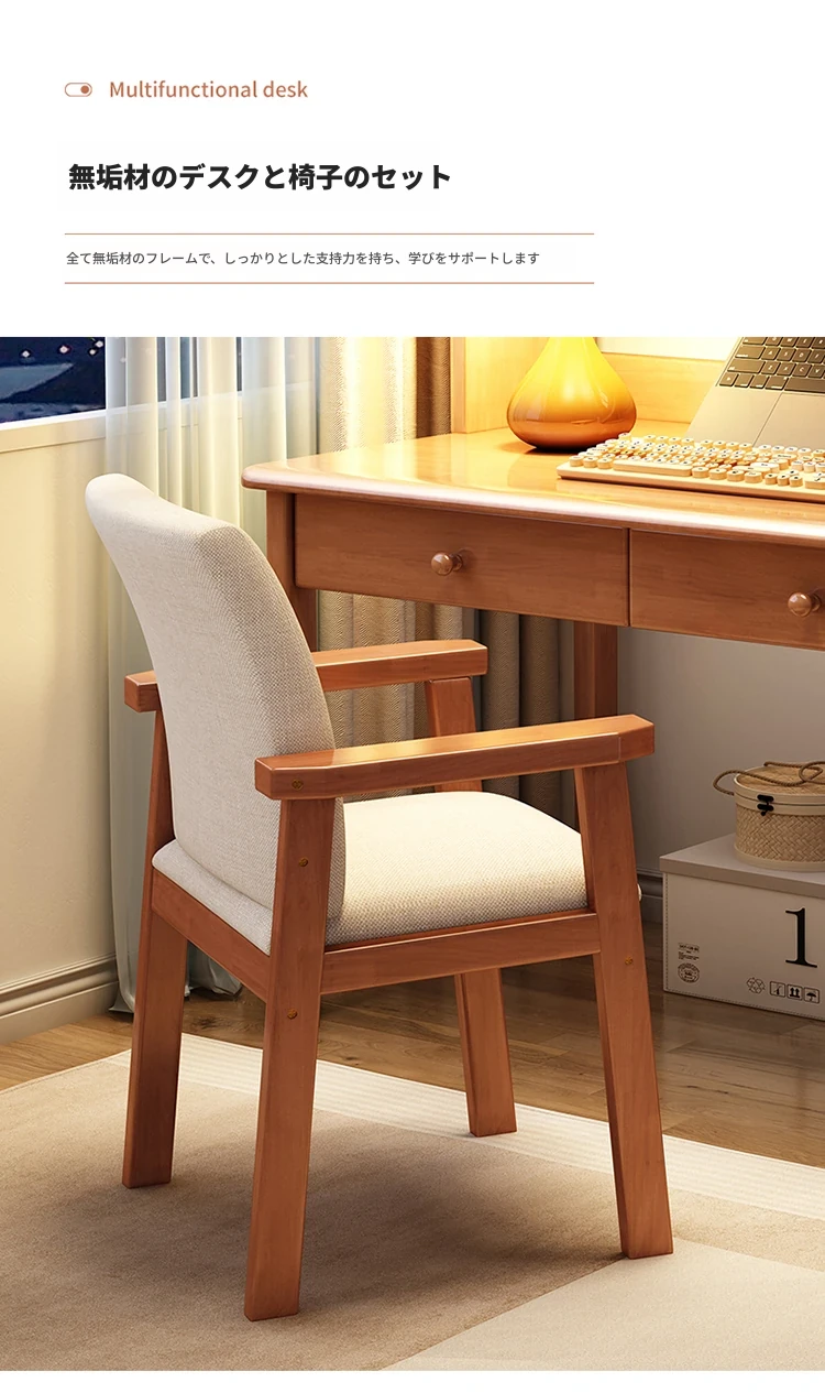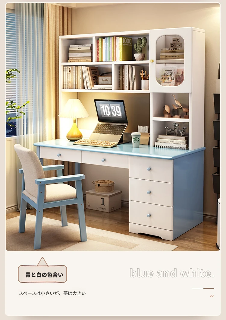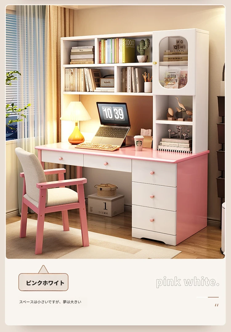 ナチュラル木製コンピューターデスク 家庭用 寝室デスク 一体型本棚付き 書斎デスク 小型空間対応 子供用学習デスク - スペースを最大限に活用し、美しい木目で部屋を華やかに!