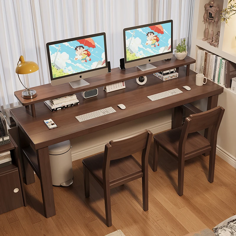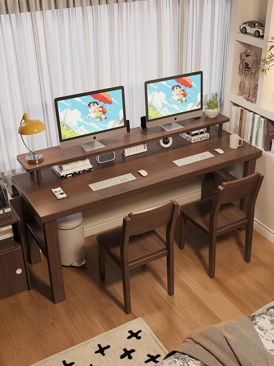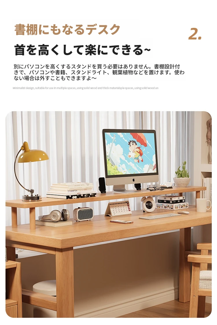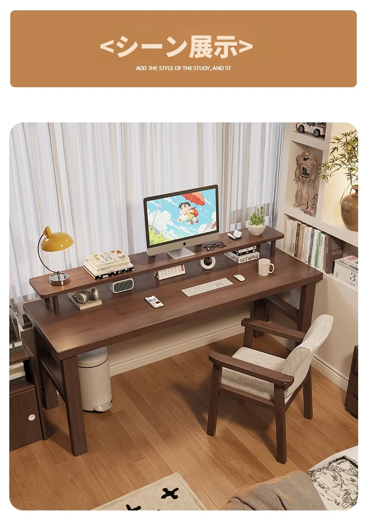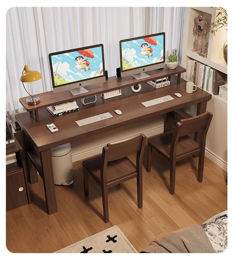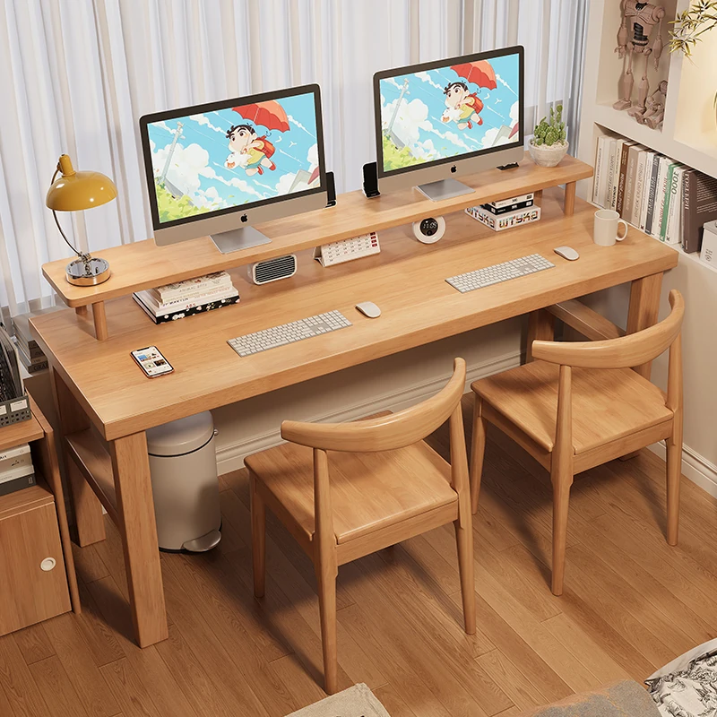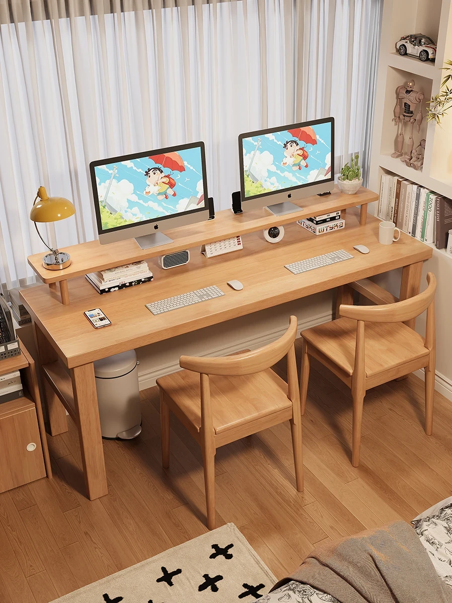 魅力の実木スタイル!家庭用二人用デスク - 学習に最適な広々ワークスペース。ゲーミングにも対応したモダンデザイン!