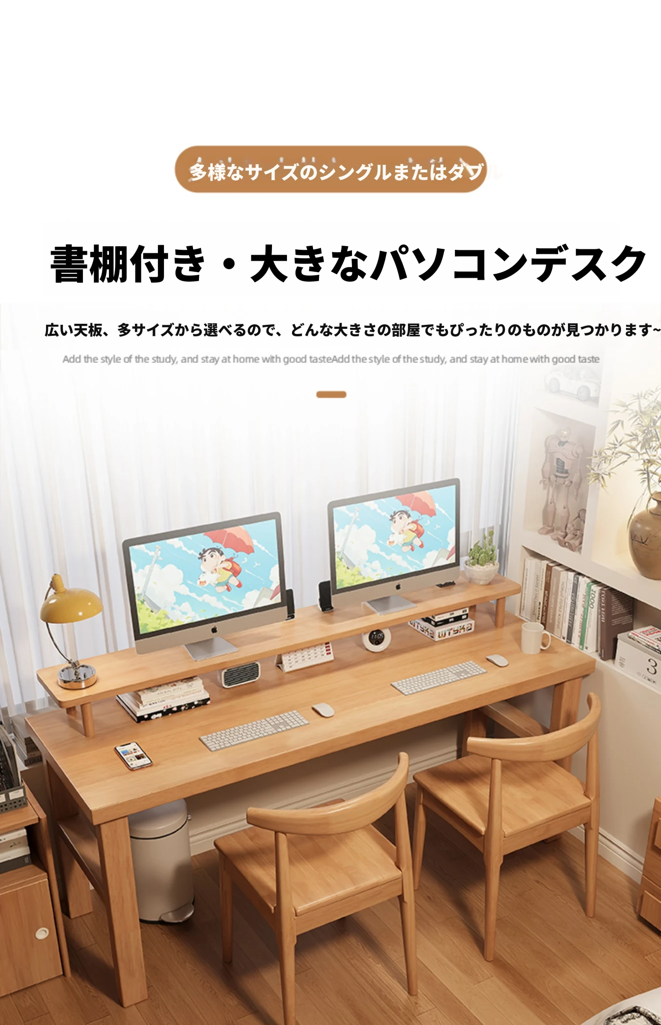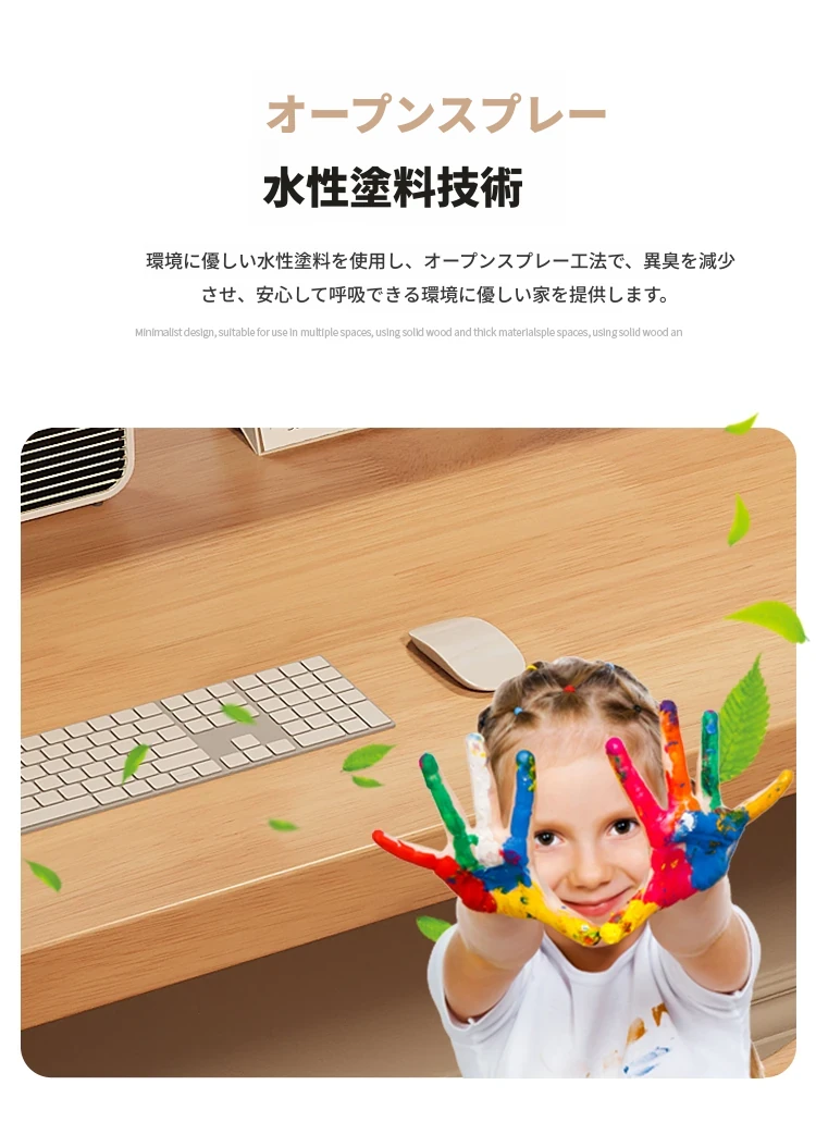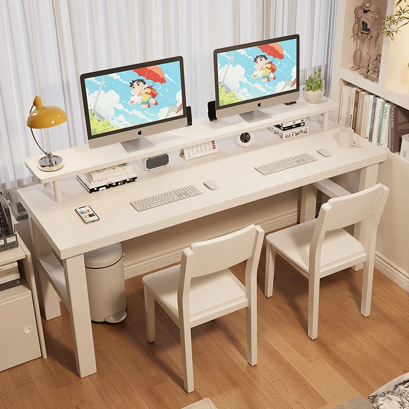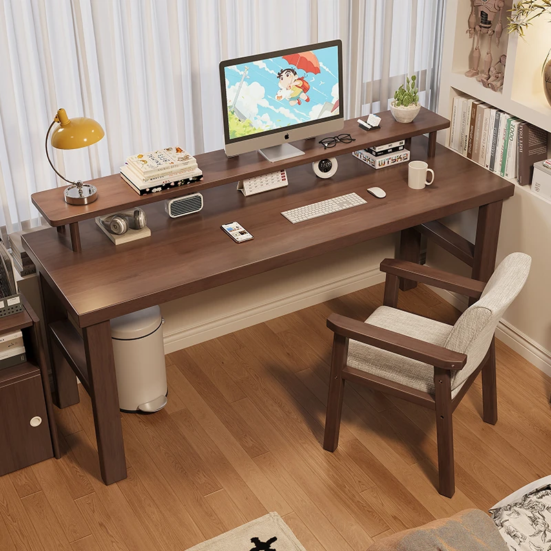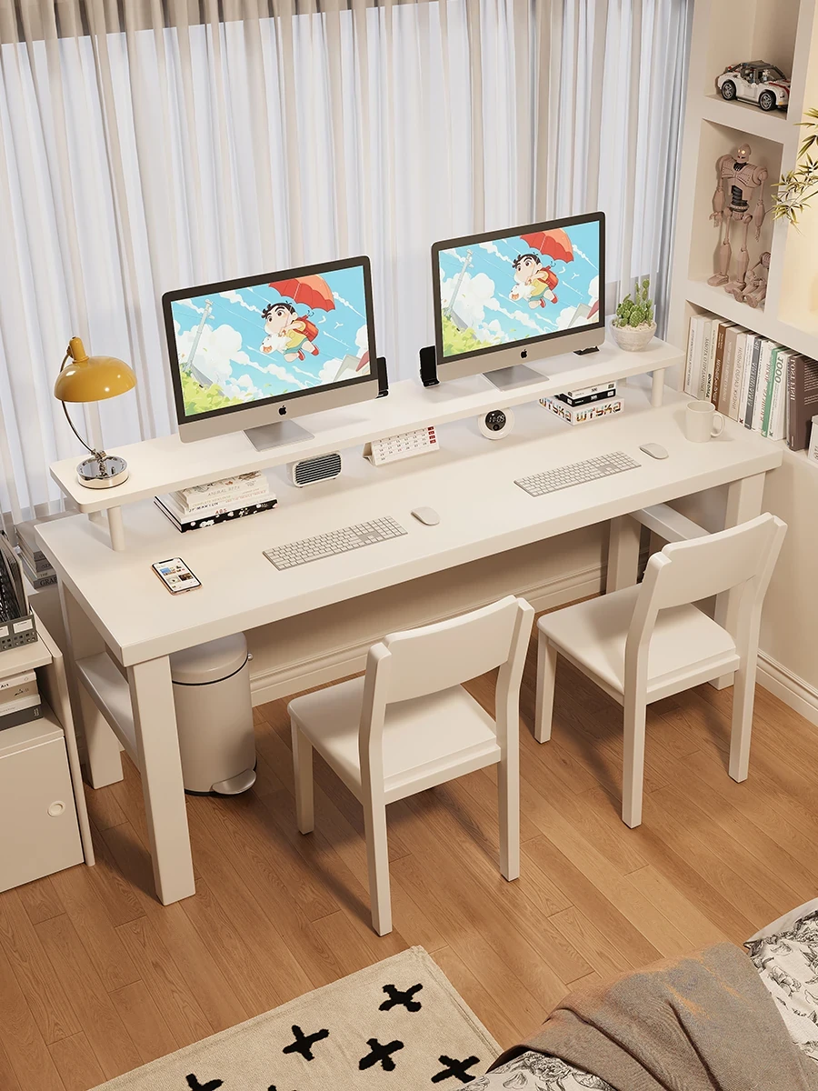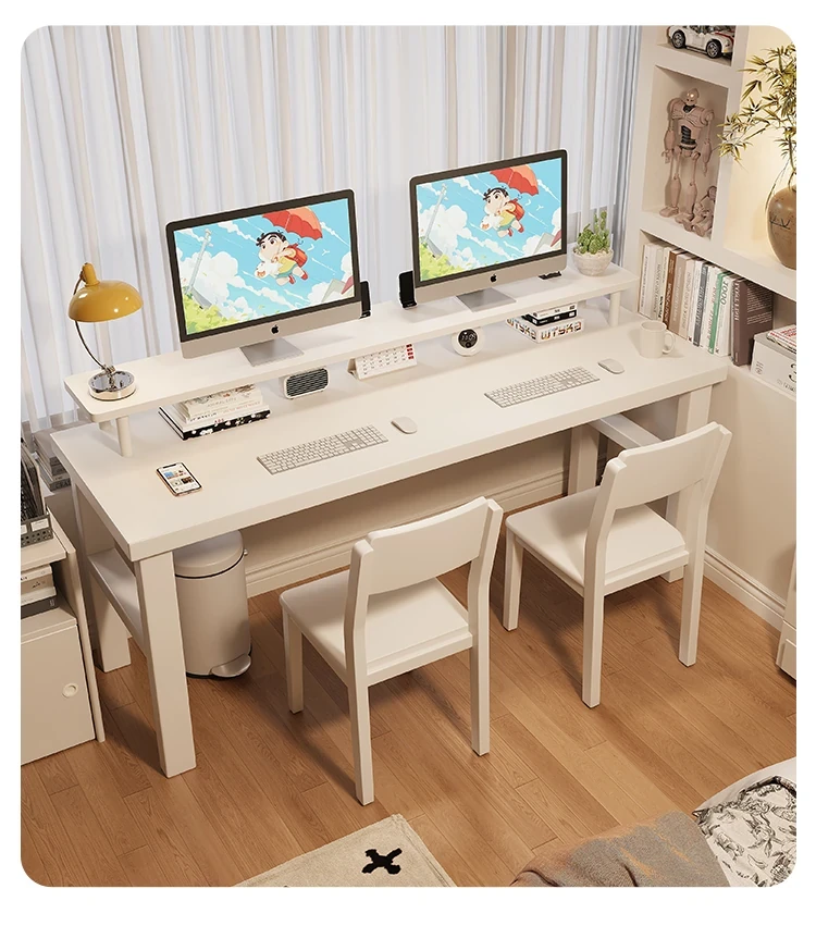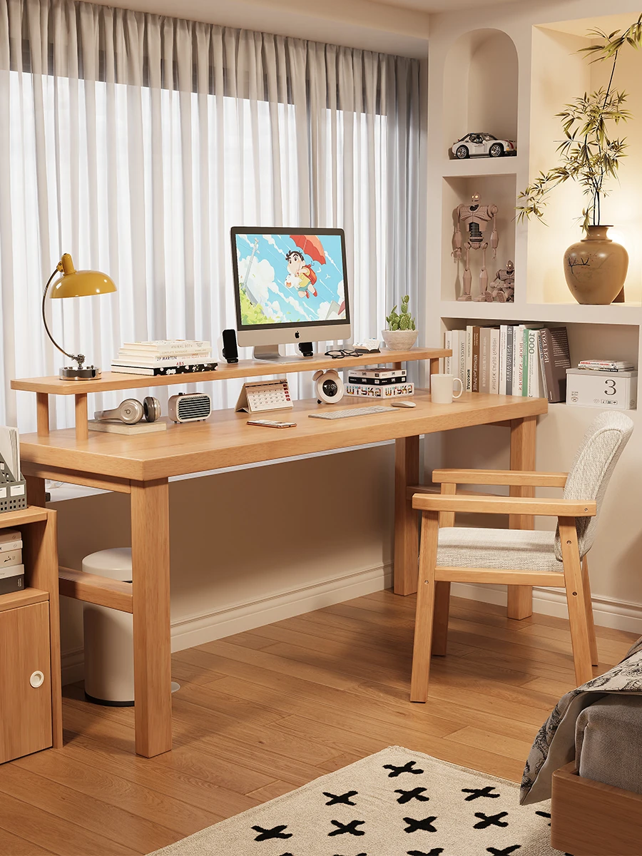 魅力の実木スタイル!家庭用二人用デスク - 学習に最適な広々ワークスペース。ゲーミングにも対応したモダンデザイン!