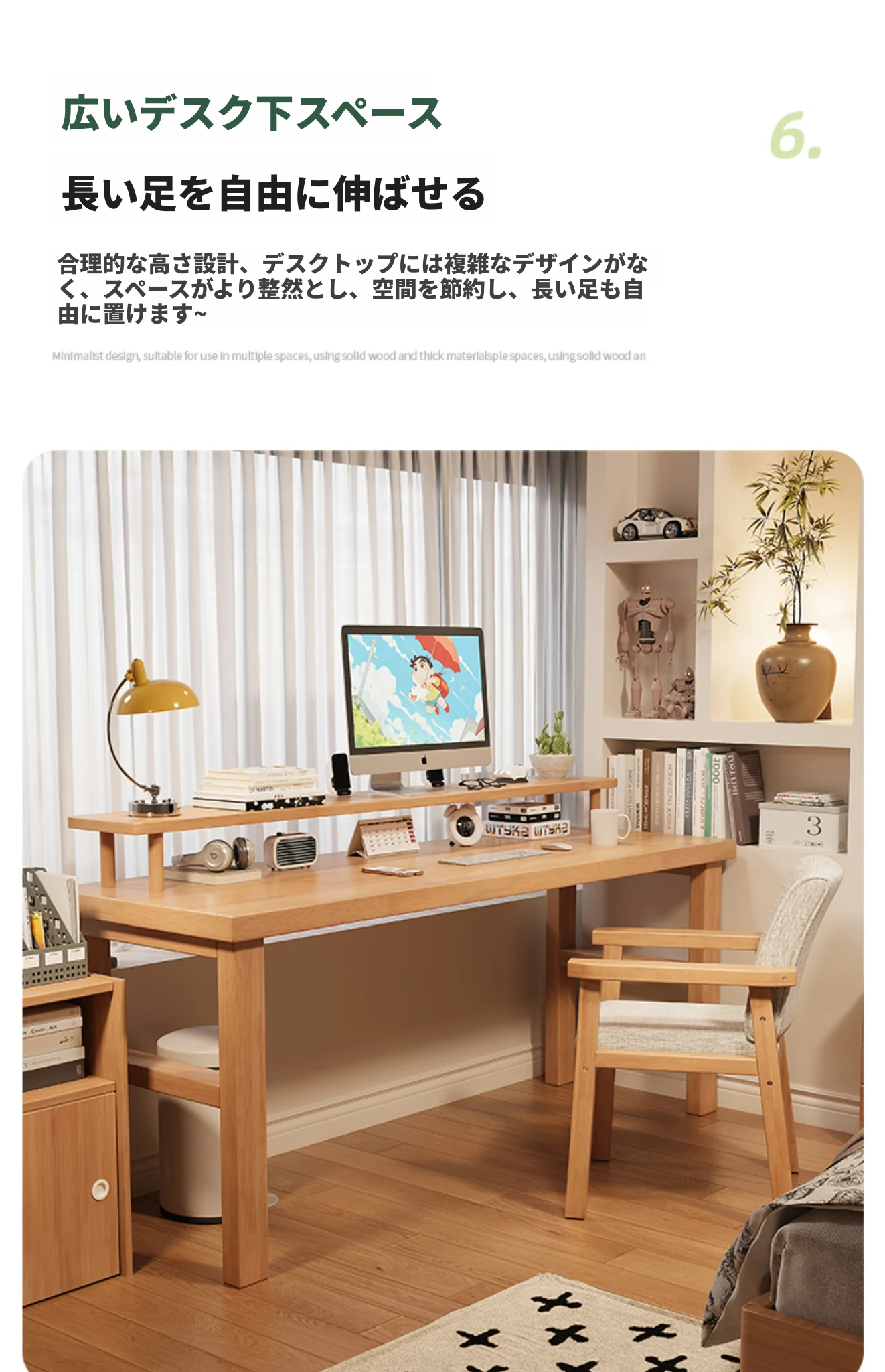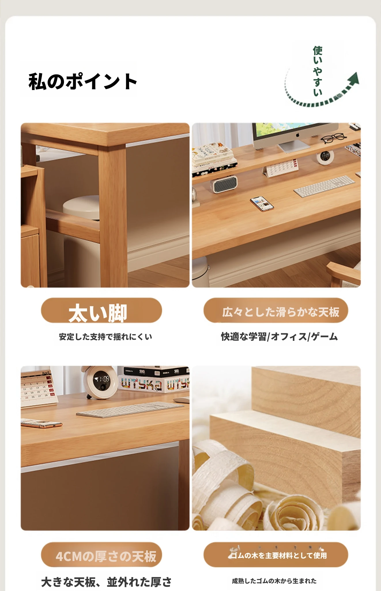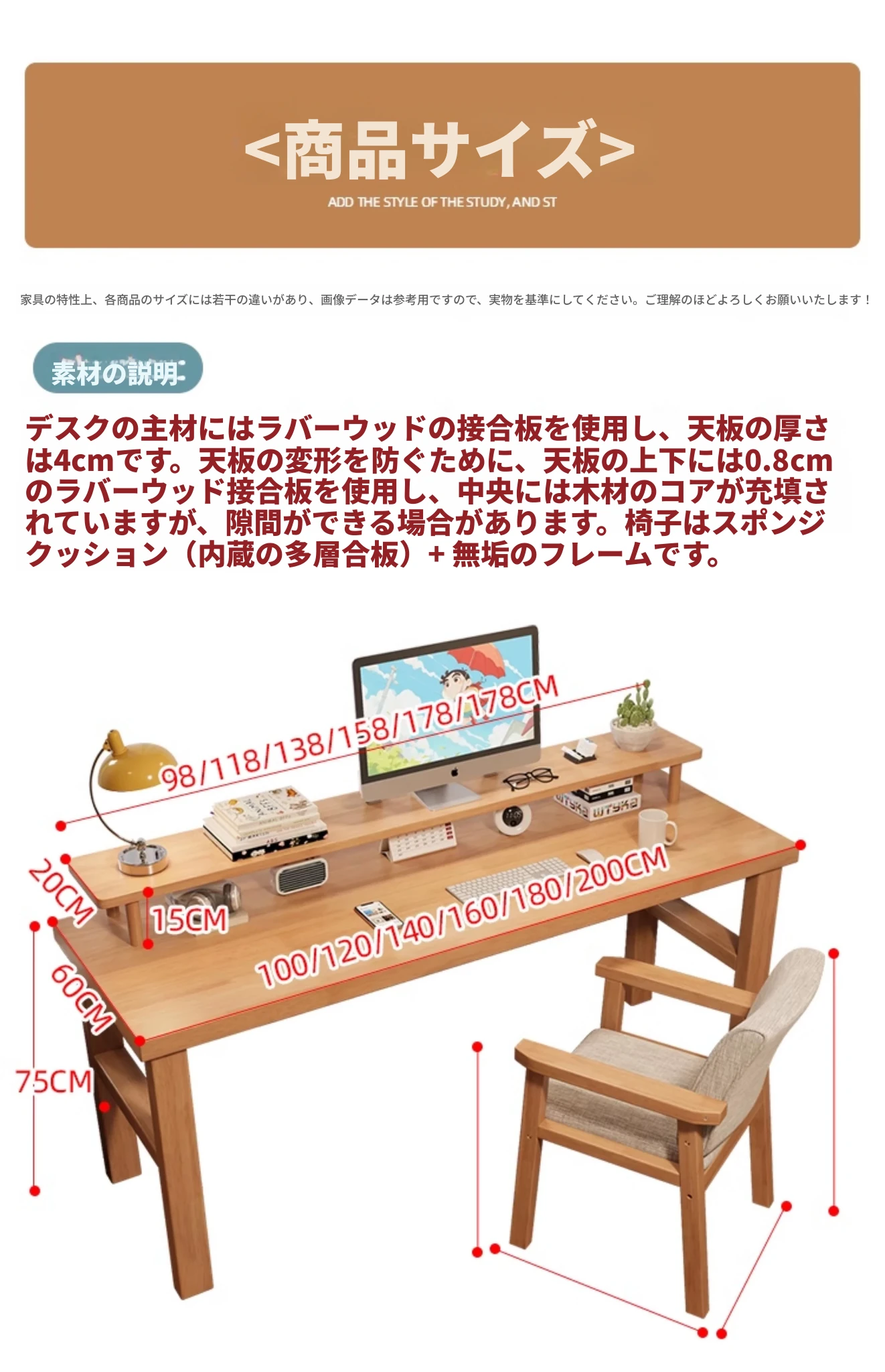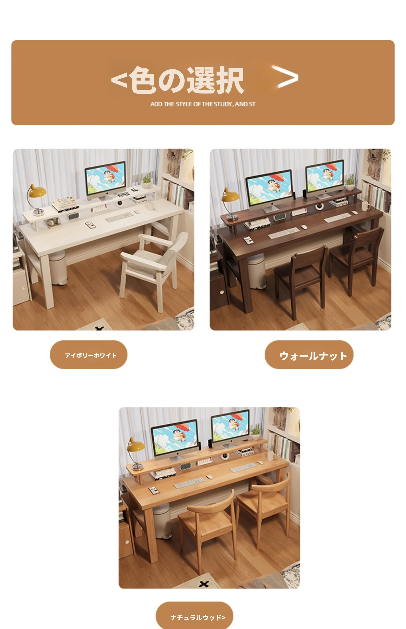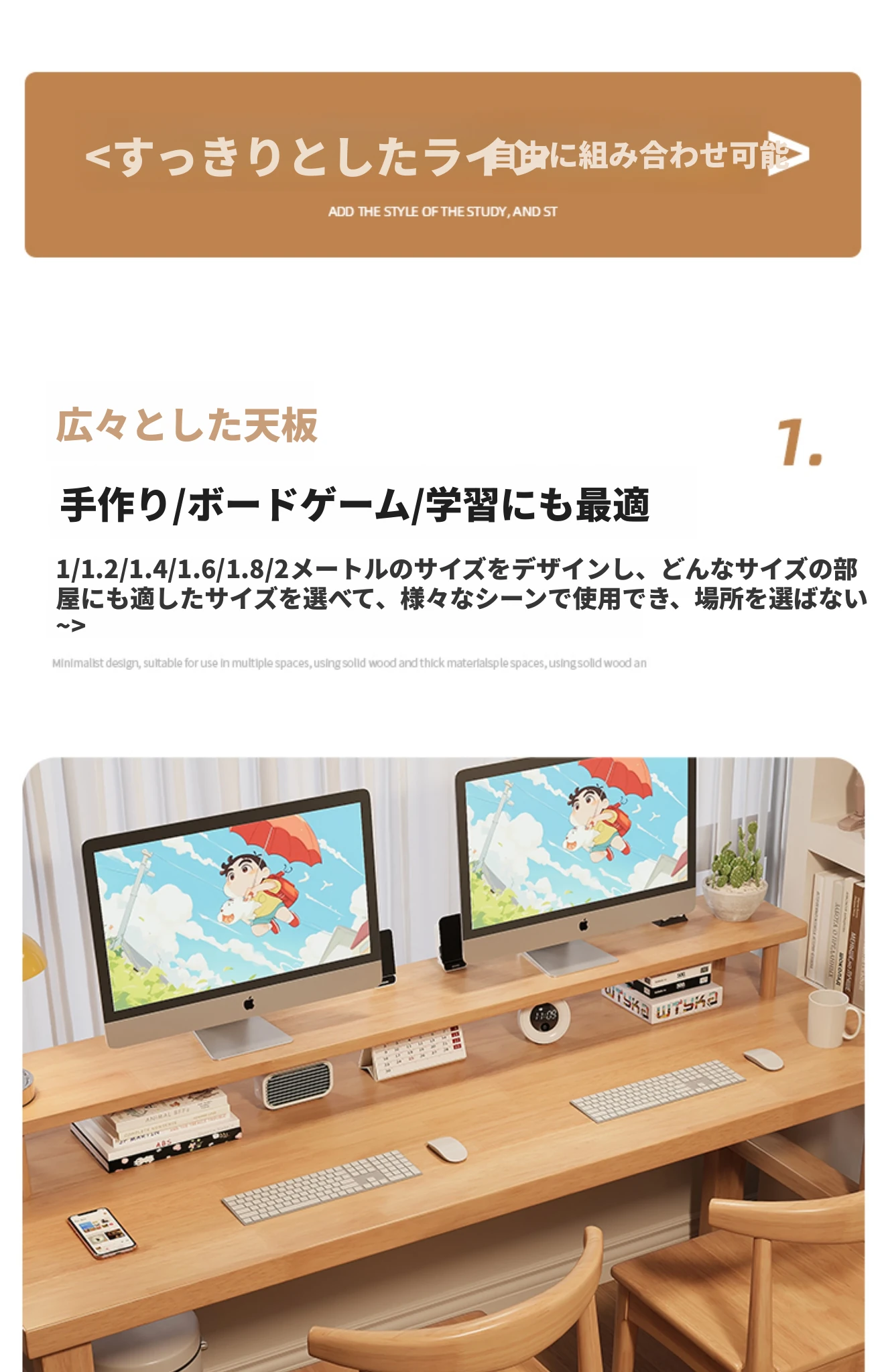 魅力の実木スタイル!家庭用二人用デスク - 学習に最適な広々ワークスペース。ゲーミングにも対応したモダンデザイン!