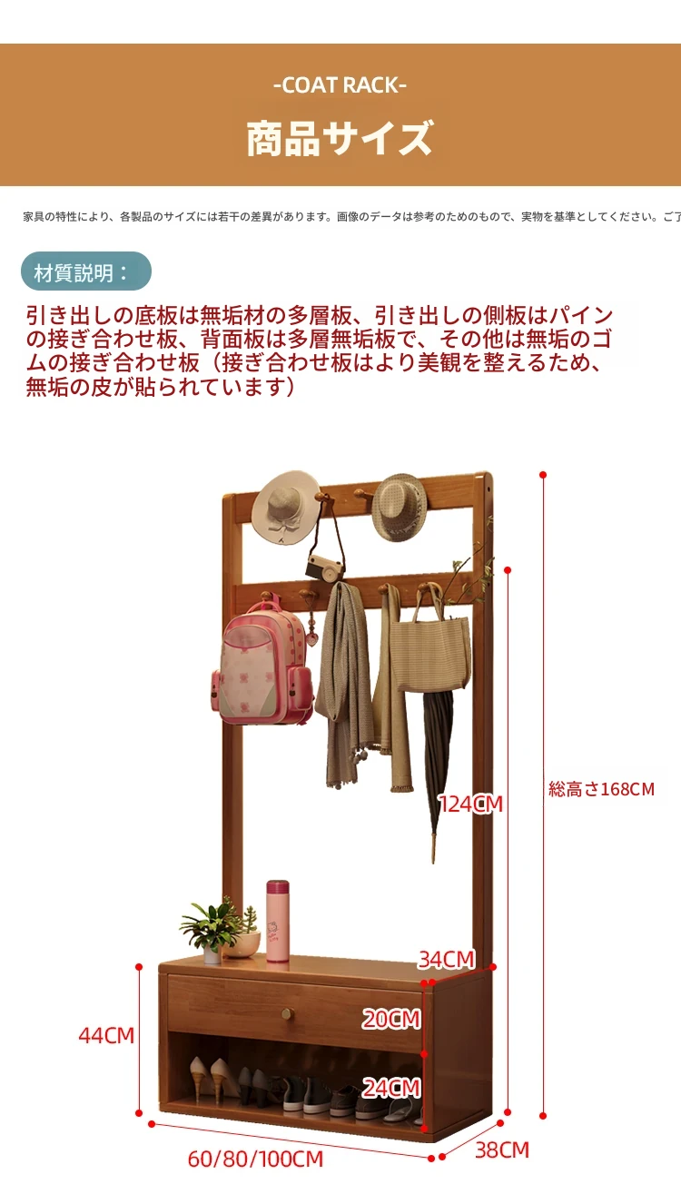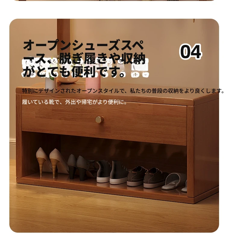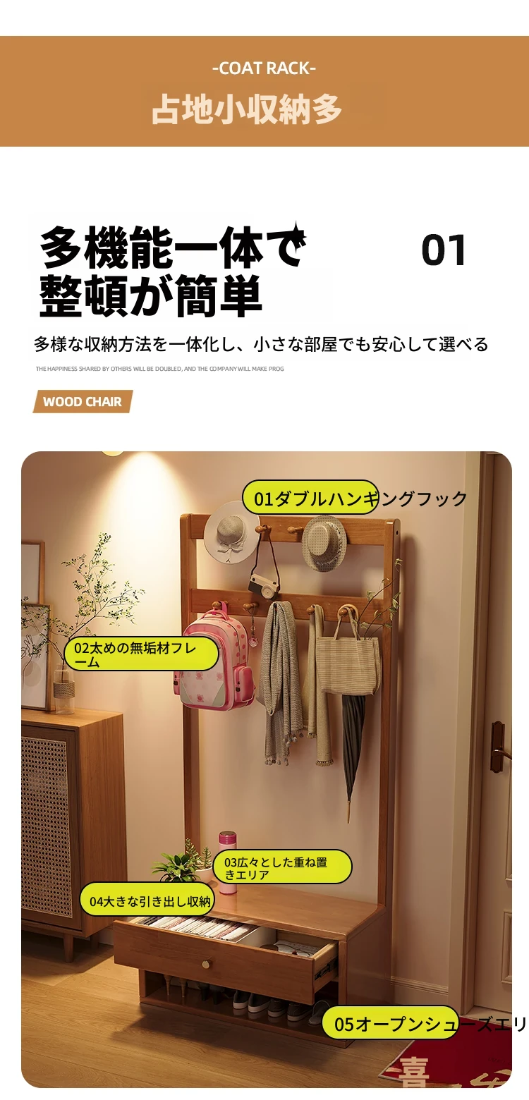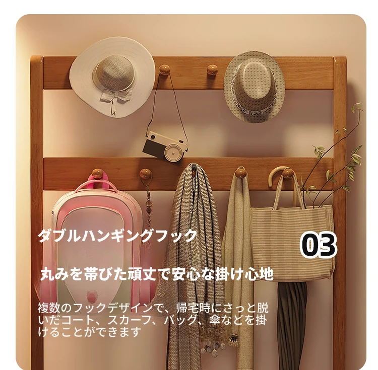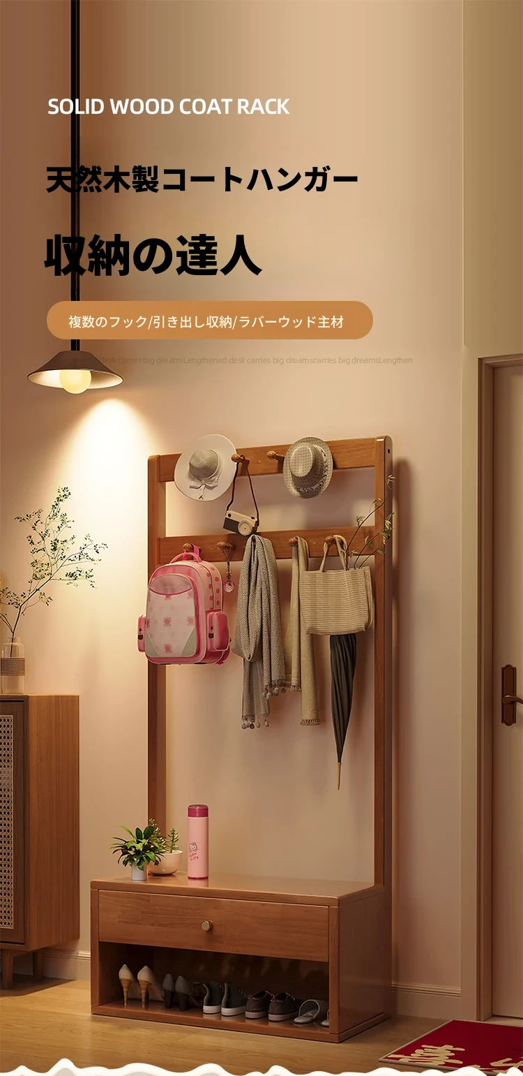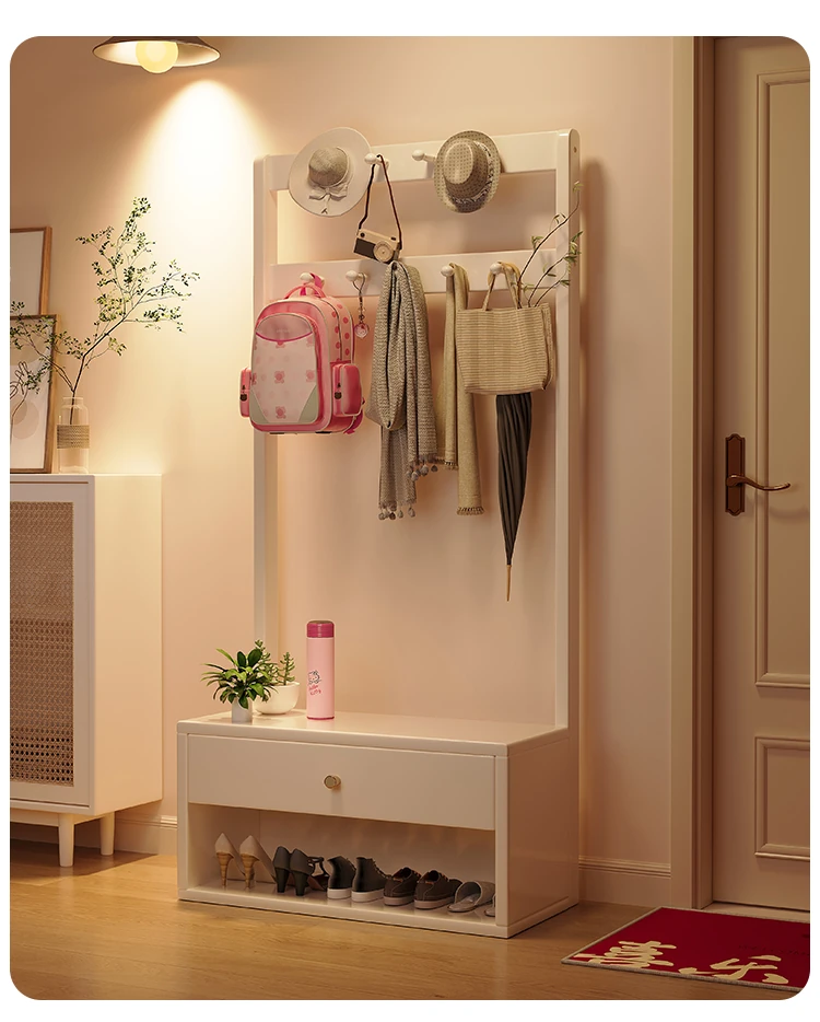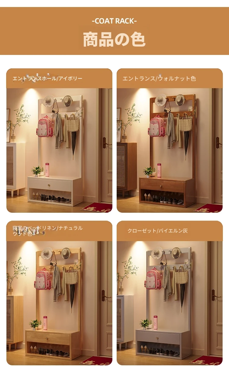 省スペース!玄関にぴったりのシンプルな家用実木コートハンガー&シューズベンチ一体型-落ち着いた寝室にも映えるフロアスタンドタイプ