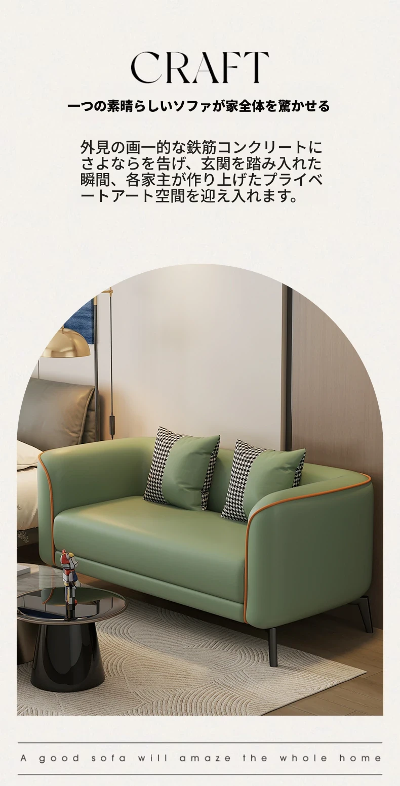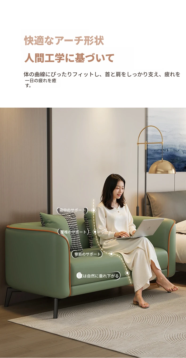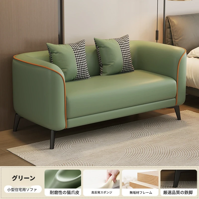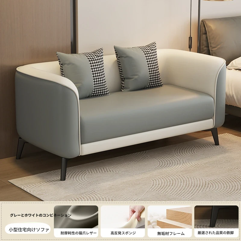 北欧風の軽やかなデザイン!小型アパート向けの2人掛けソファ。猫の爪にも強い合成皮革製。おしゃれな服装店の受付にもぴったり!快適な座り心地で、あなたの空間をより魅力的に演出します。
