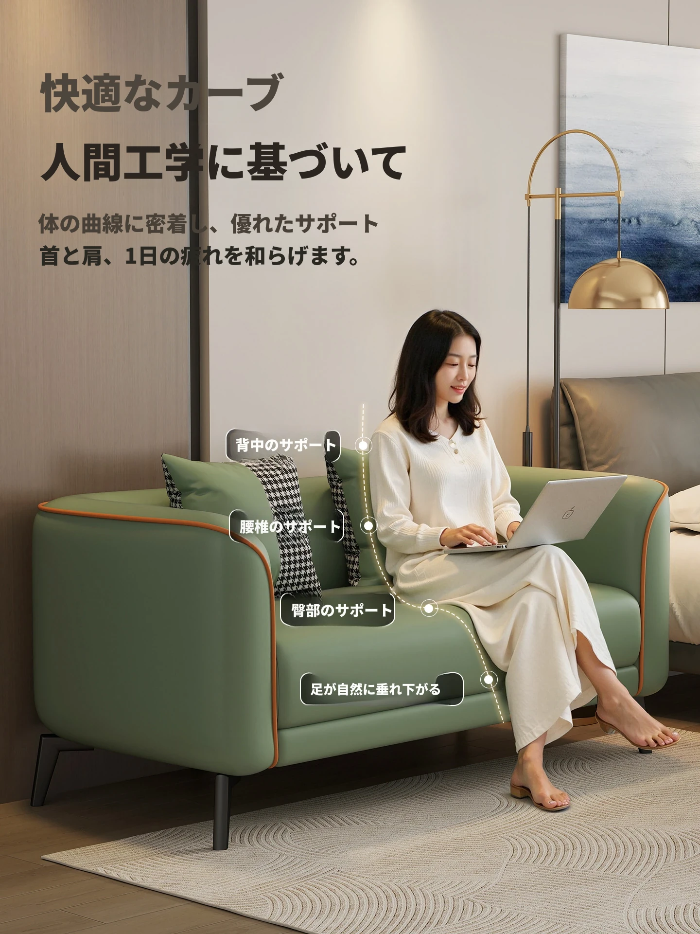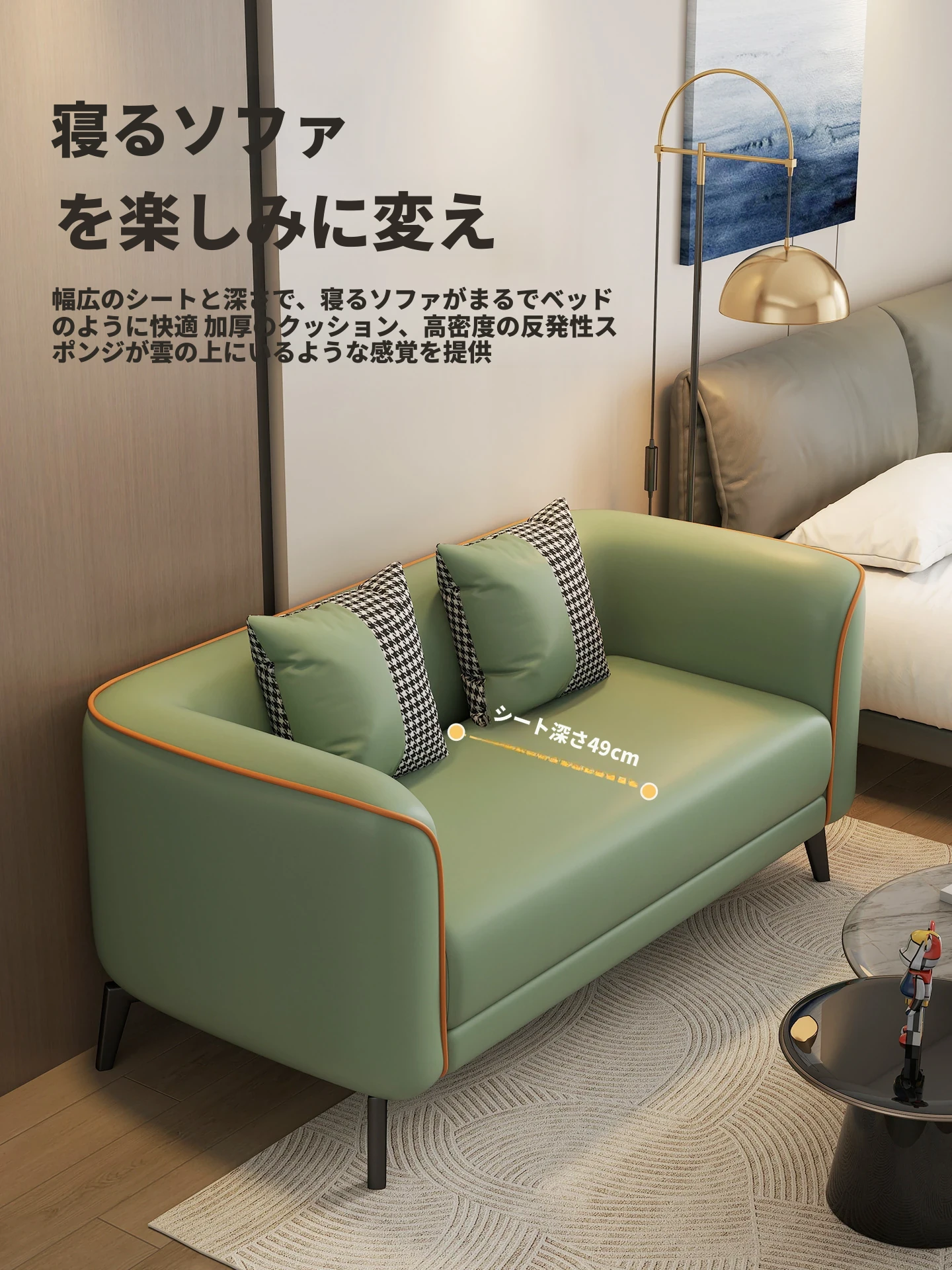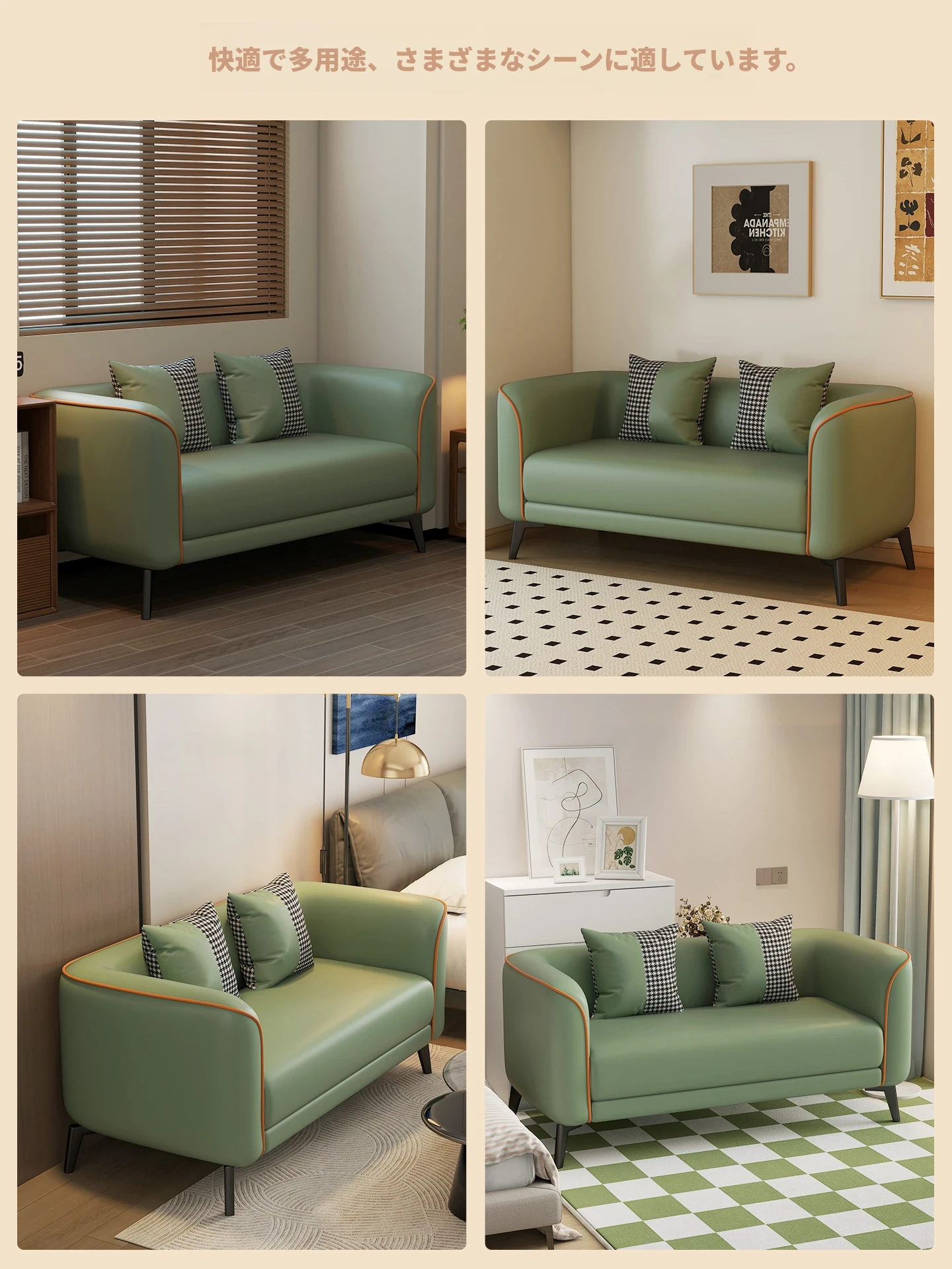 北欧風の軽やかなデザイン!小型アパート向けの2人掛けソファ。猫の爪にも強い合成皮革製。おしゃれな服装店の受付にもぴったり!快適な座り心地で、あなたの空間をより魅力的に演出します。