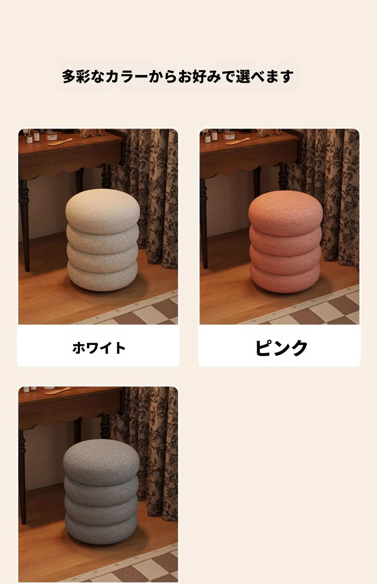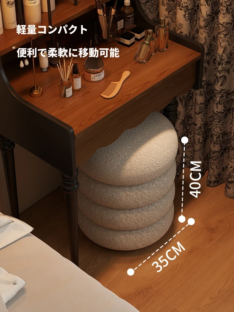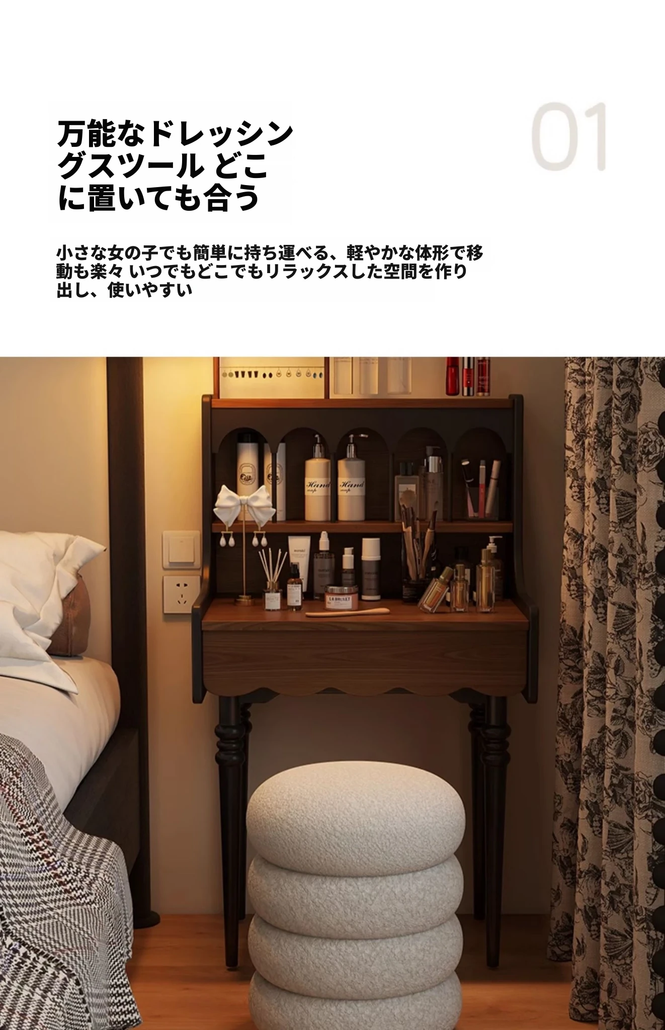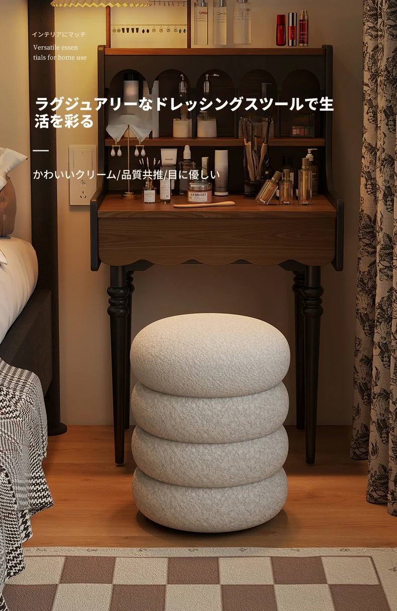人気のレトロメイクアップスツール!おしゃれな女の子のための寝室用化粧台スツール。ヴィンテージ感漂うデザインで、自宅でのメイクアップタイムを特別なものに。快適で使いやすい低めの椅子です!