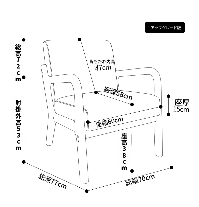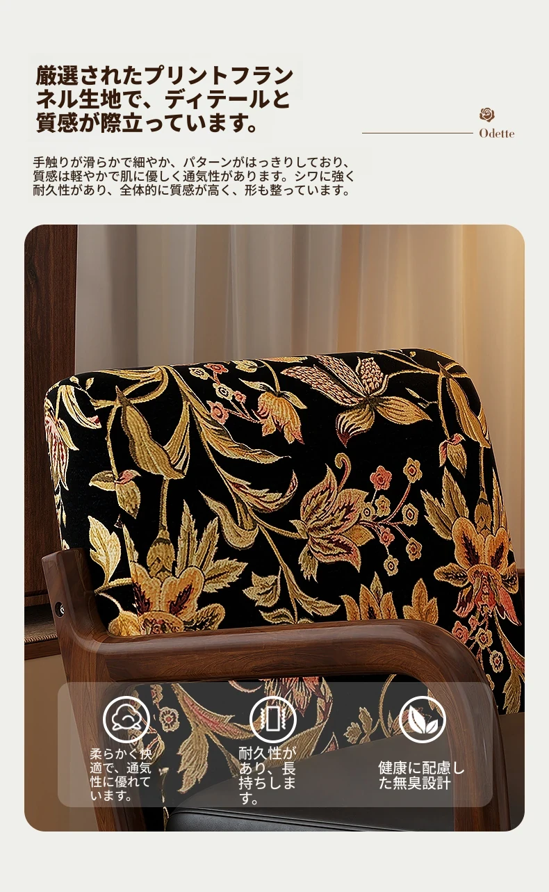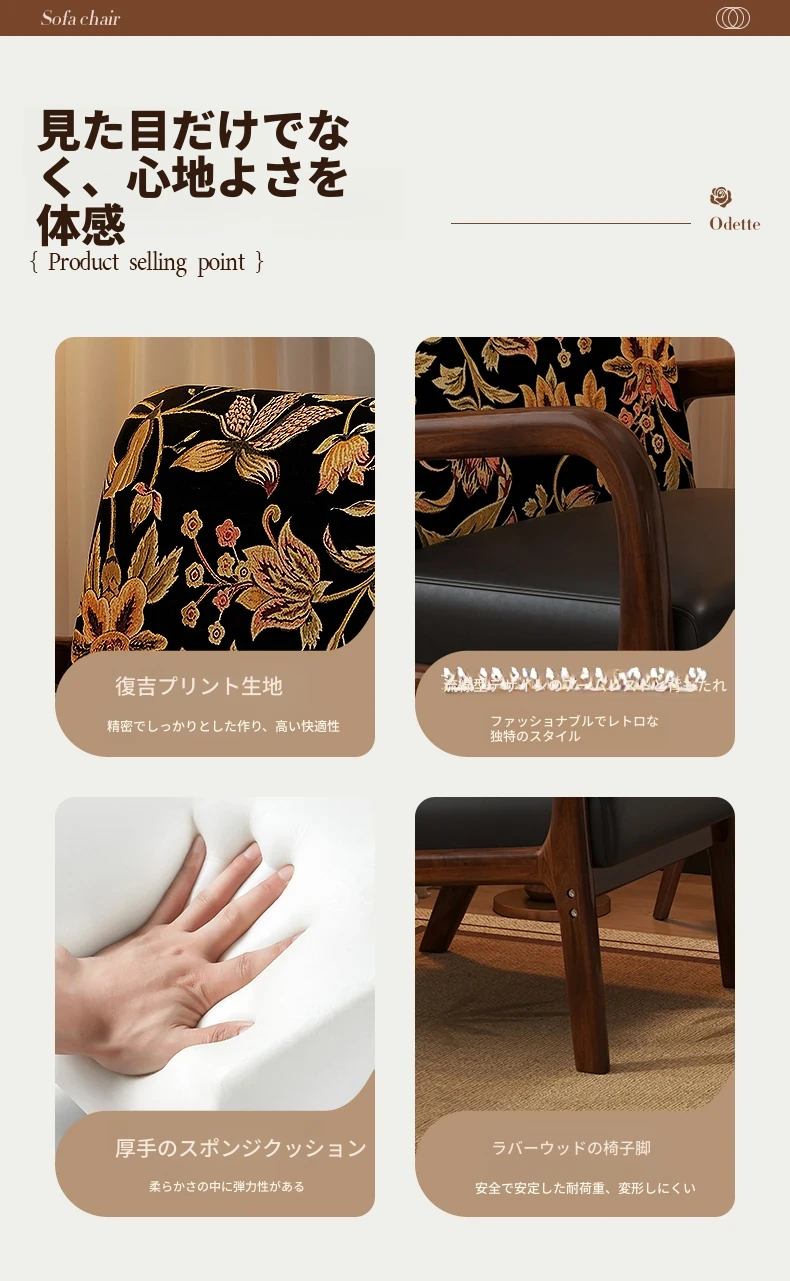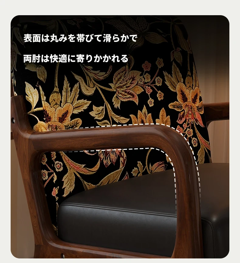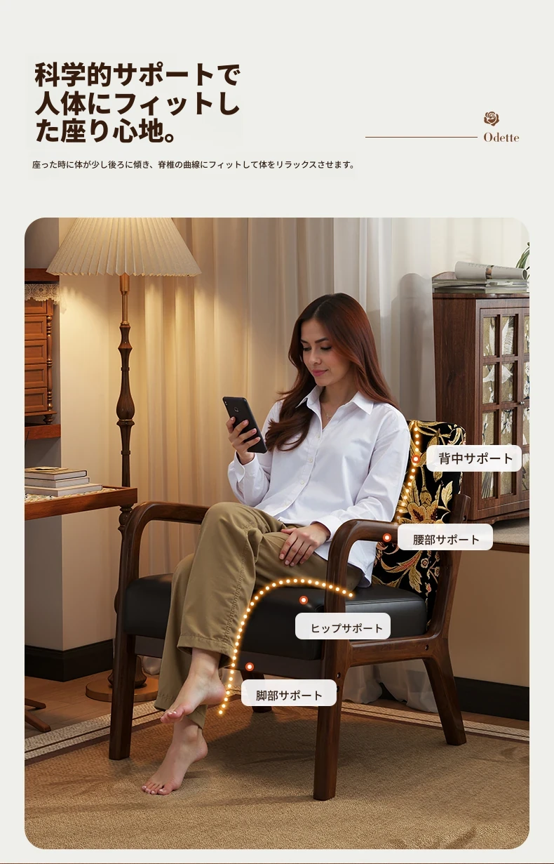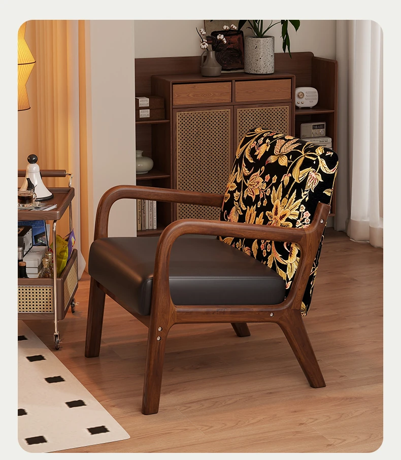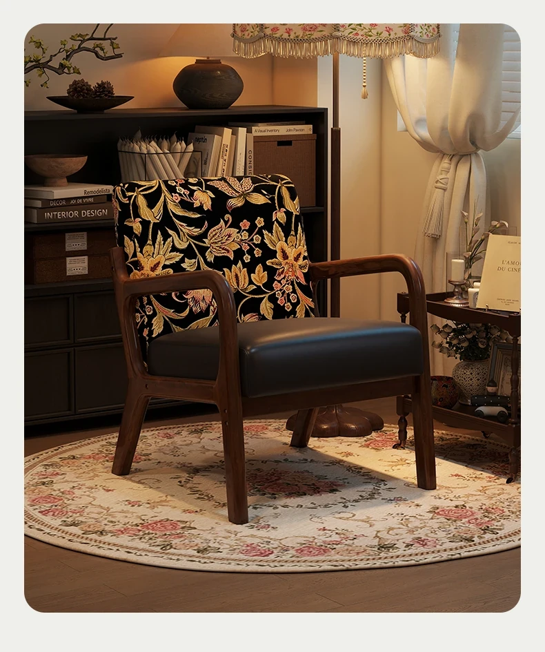 レトロな一人掛けソファ - 天然木製のヴィンテージスタイル、リラックスできる背もたれ付きで書斎やリビングに最適!おしゃれなデザインで、心地よいひとときを演出します。