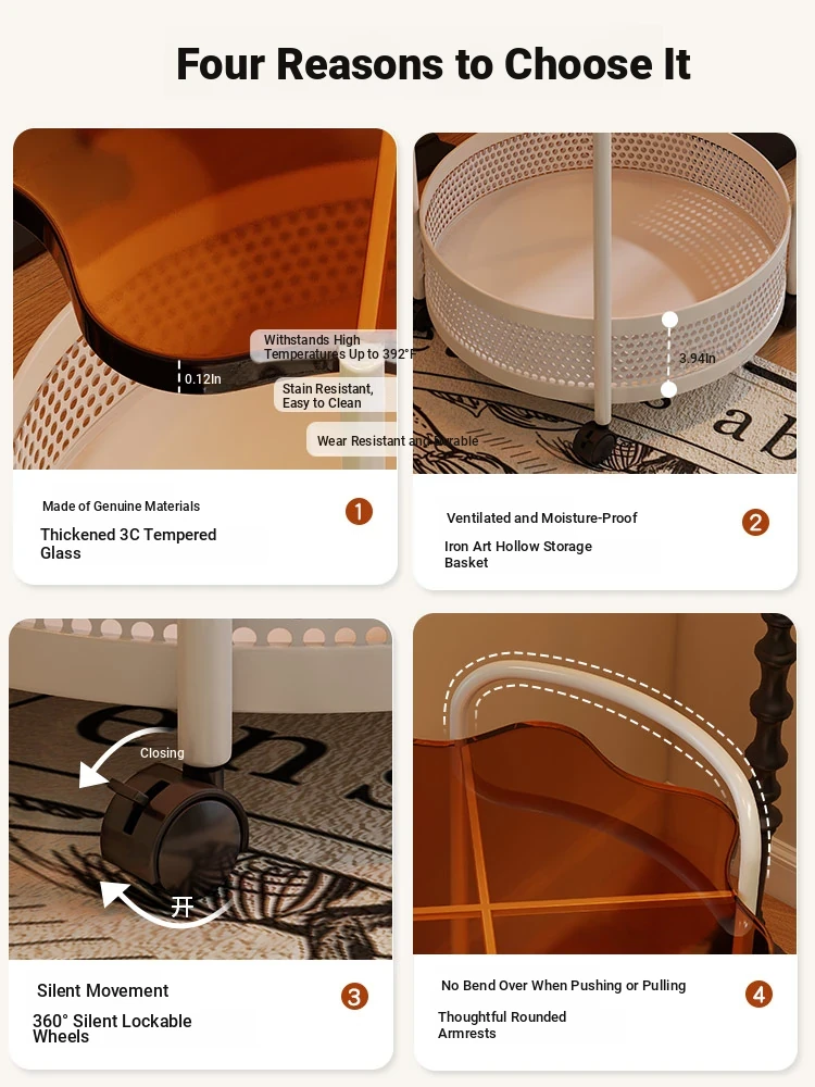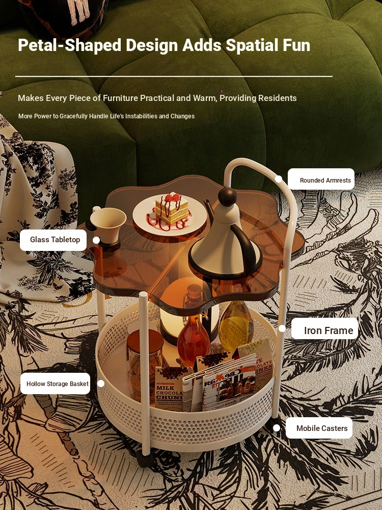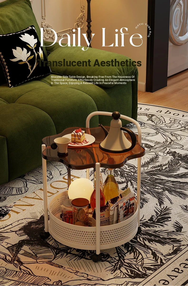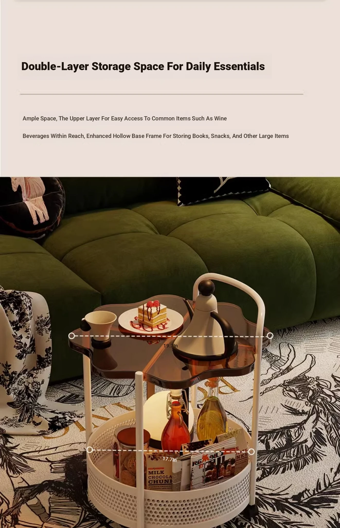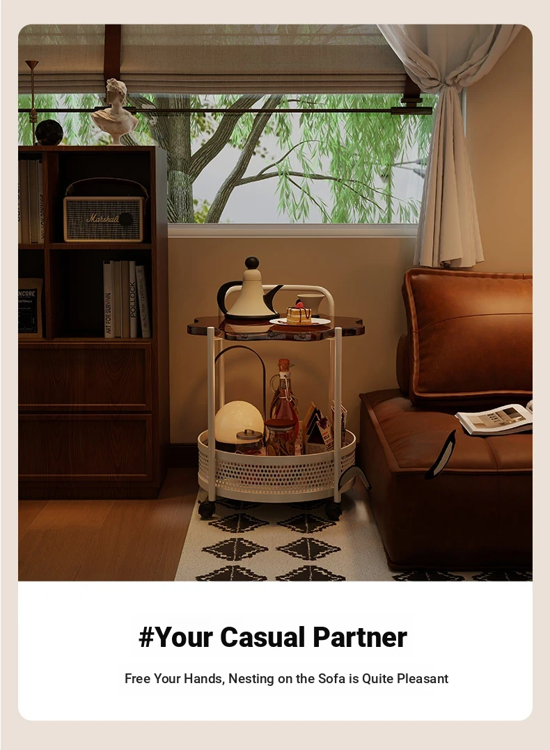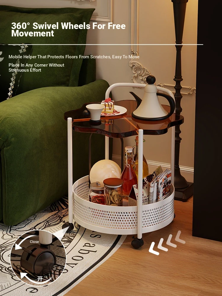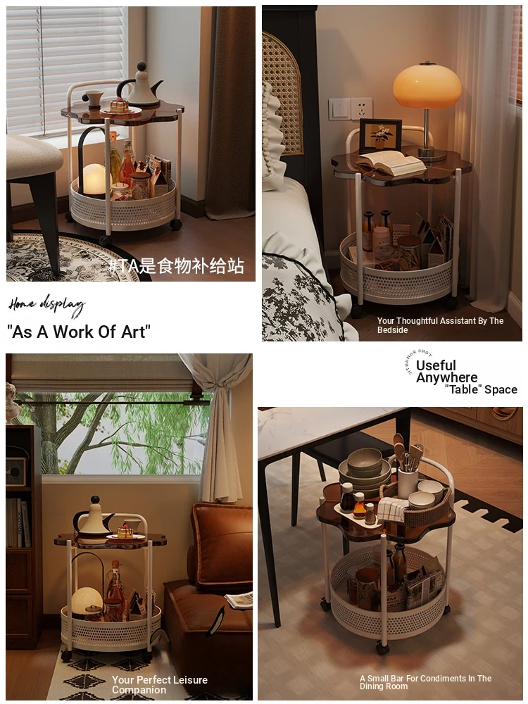Vintage Snack Cart with Wheels - Stylish 2-Tier Side Table for Living Room and Bedroom, Perfect for Small Spaces and Home Luxury