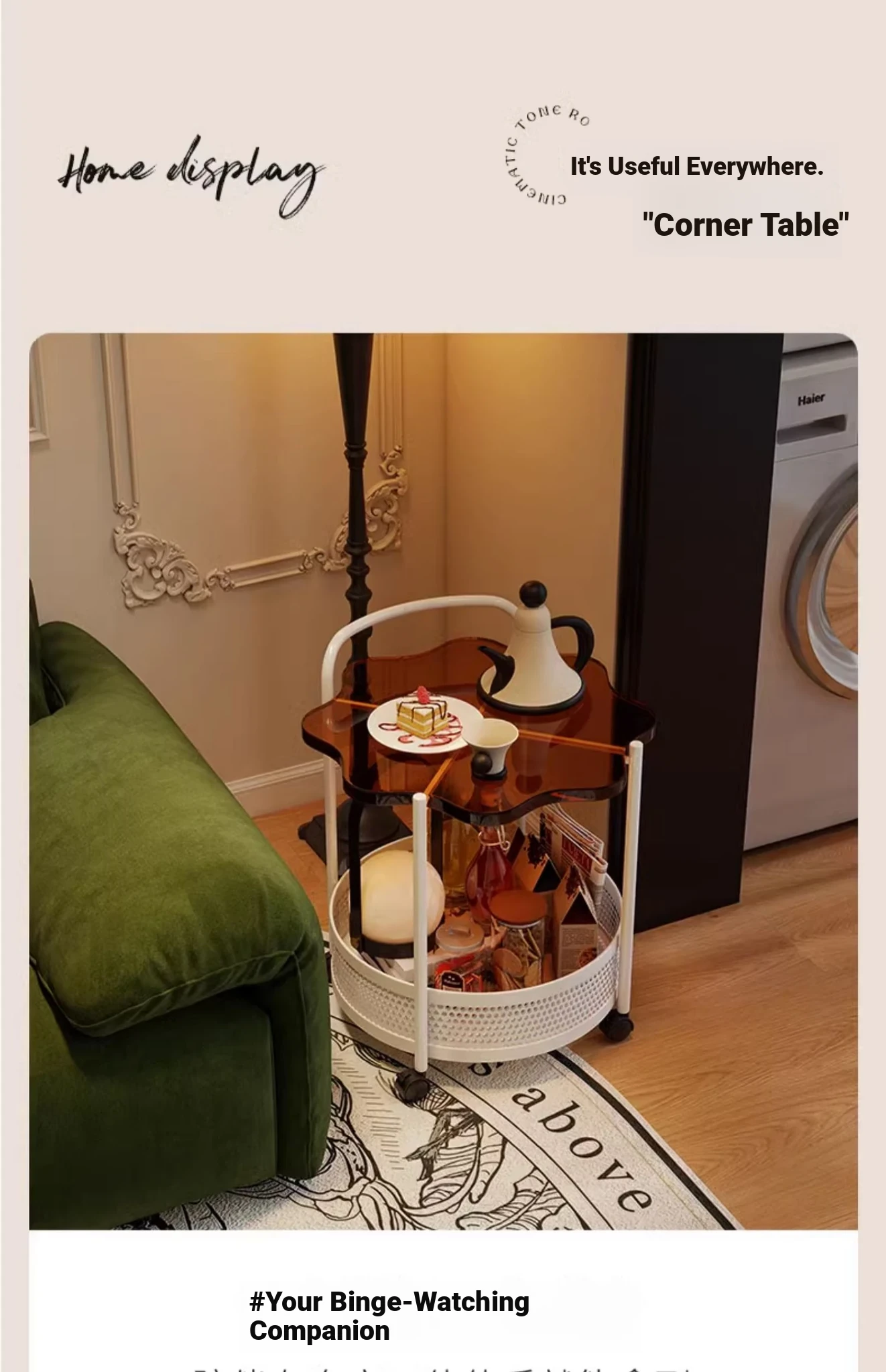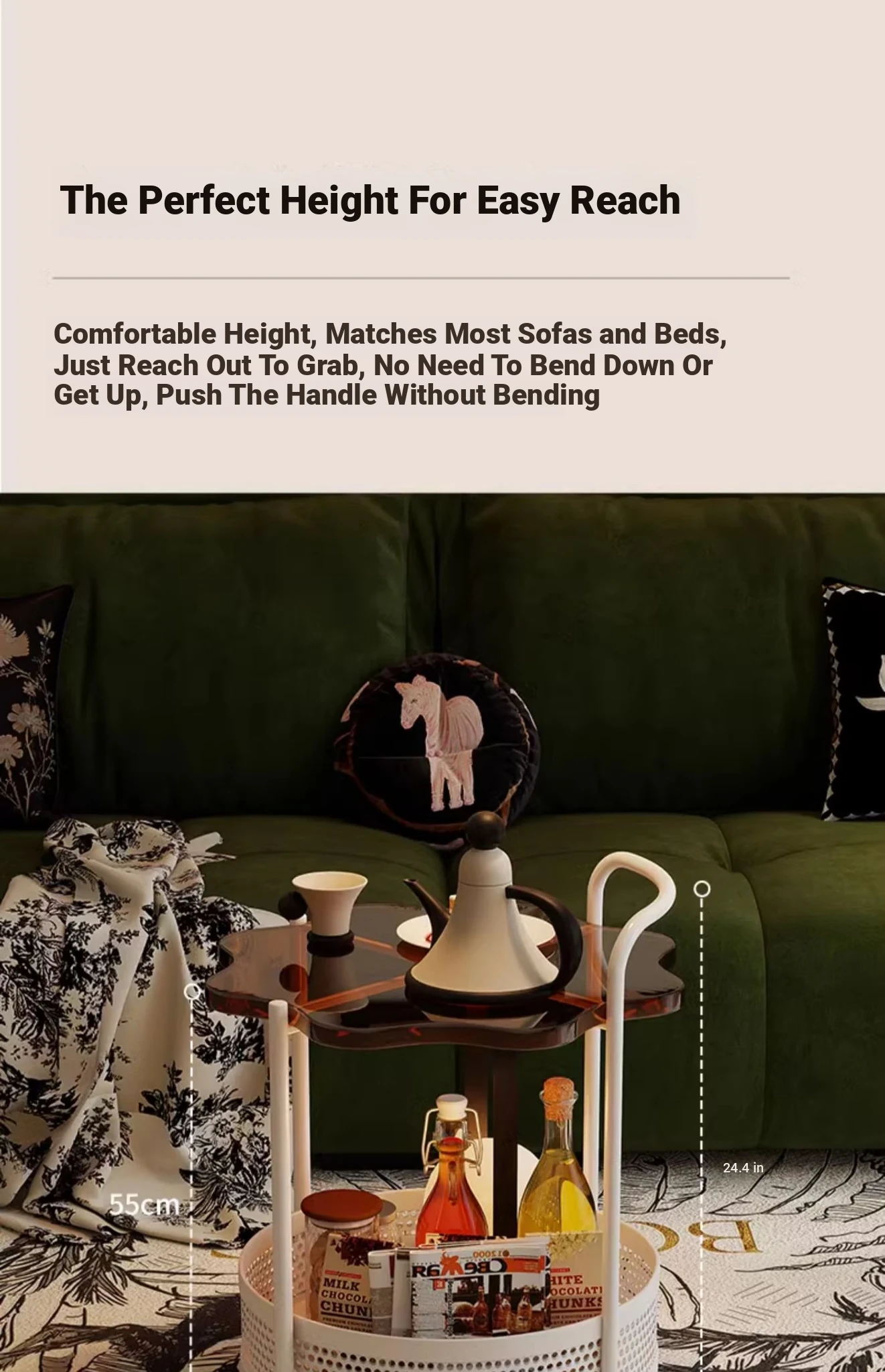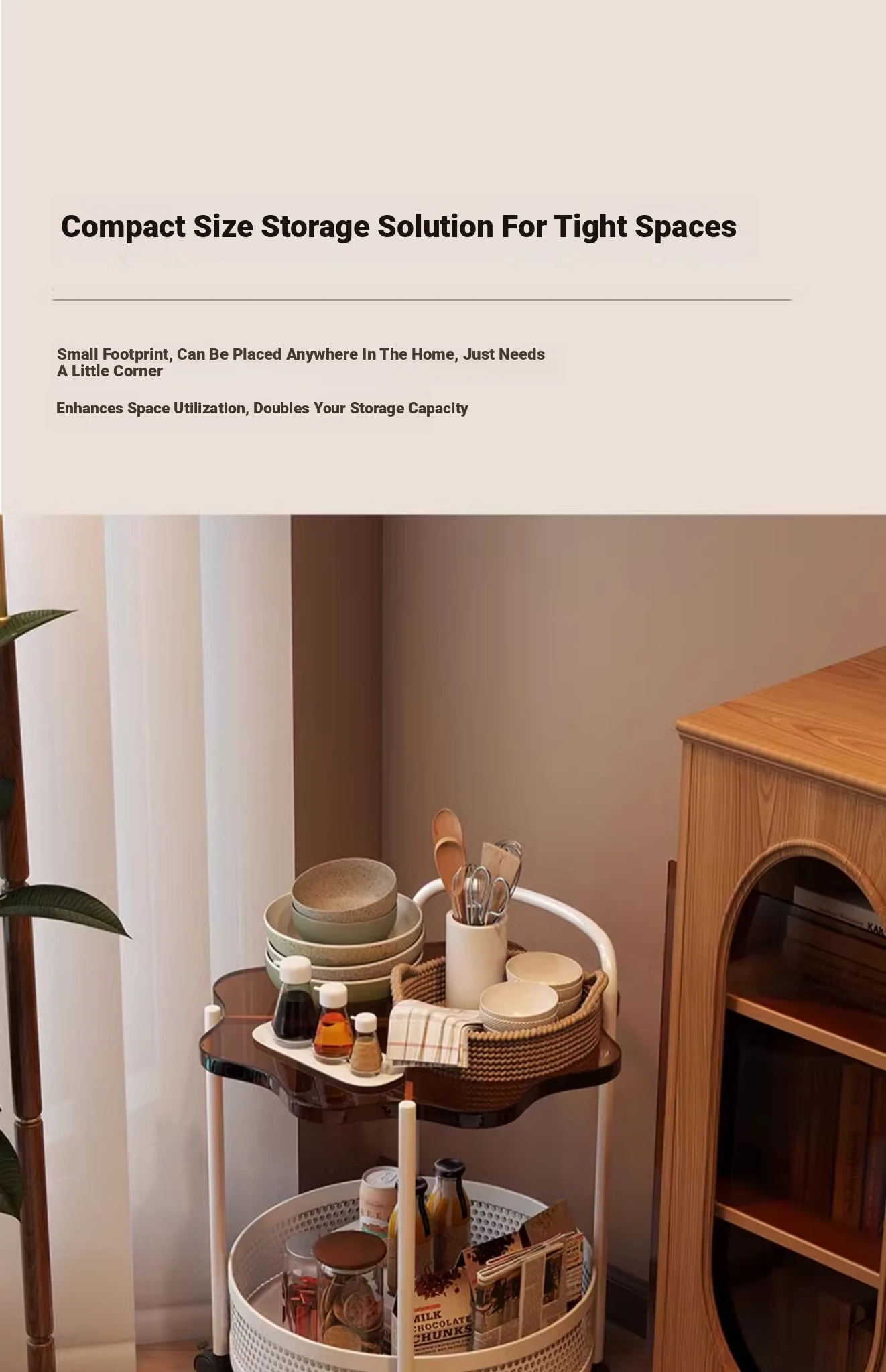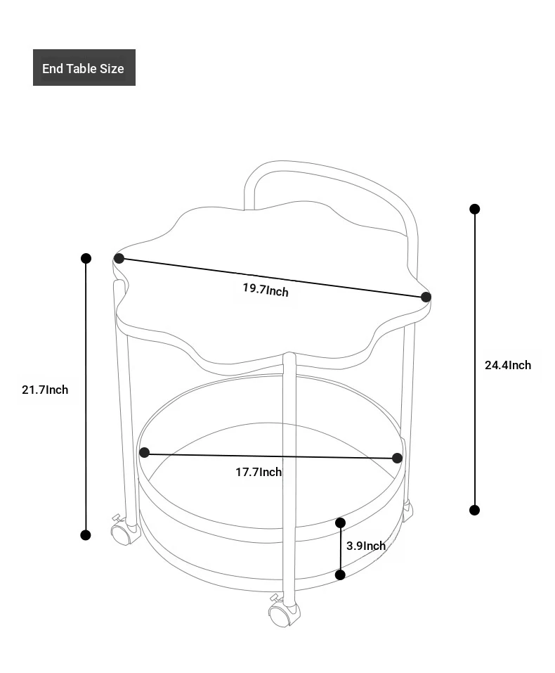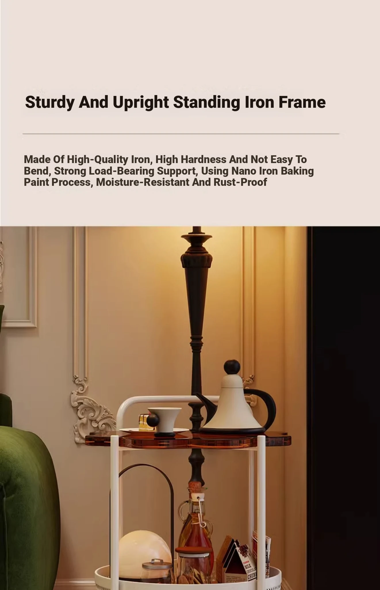 Vintage Snack Cart with Wheels - Stylish 2-Tier Side Table for Living Room and Bedroom, Perfect for Small Spaces and Home Luxury