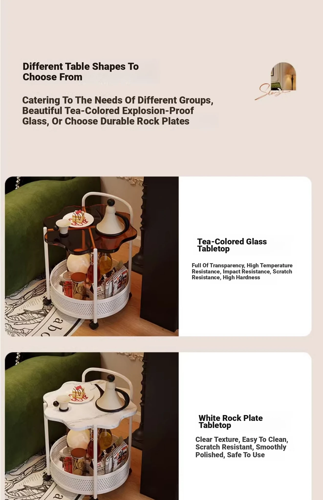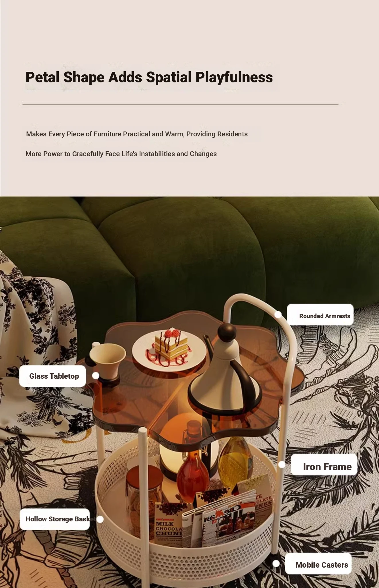 Cloud Side Table-White Frame + (Tea Glass Desktop)