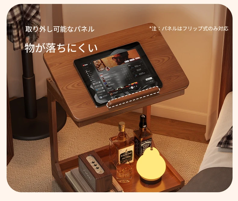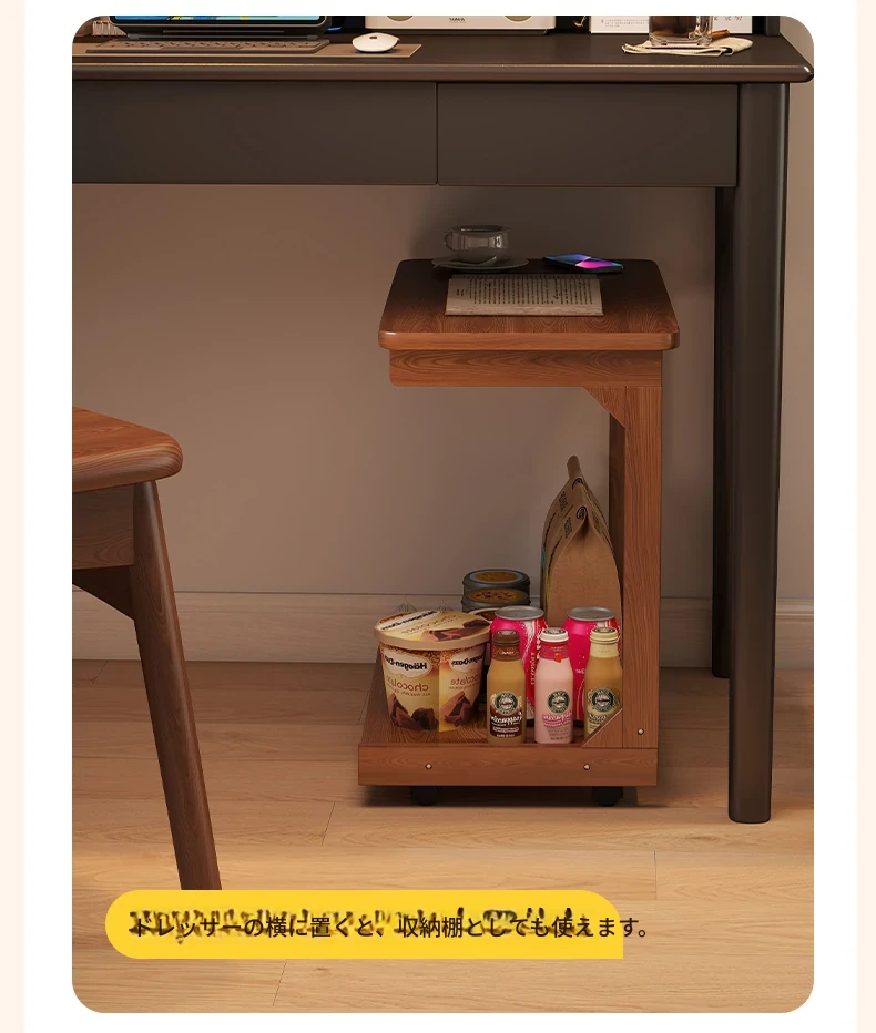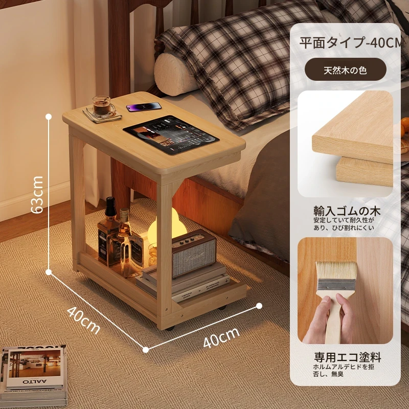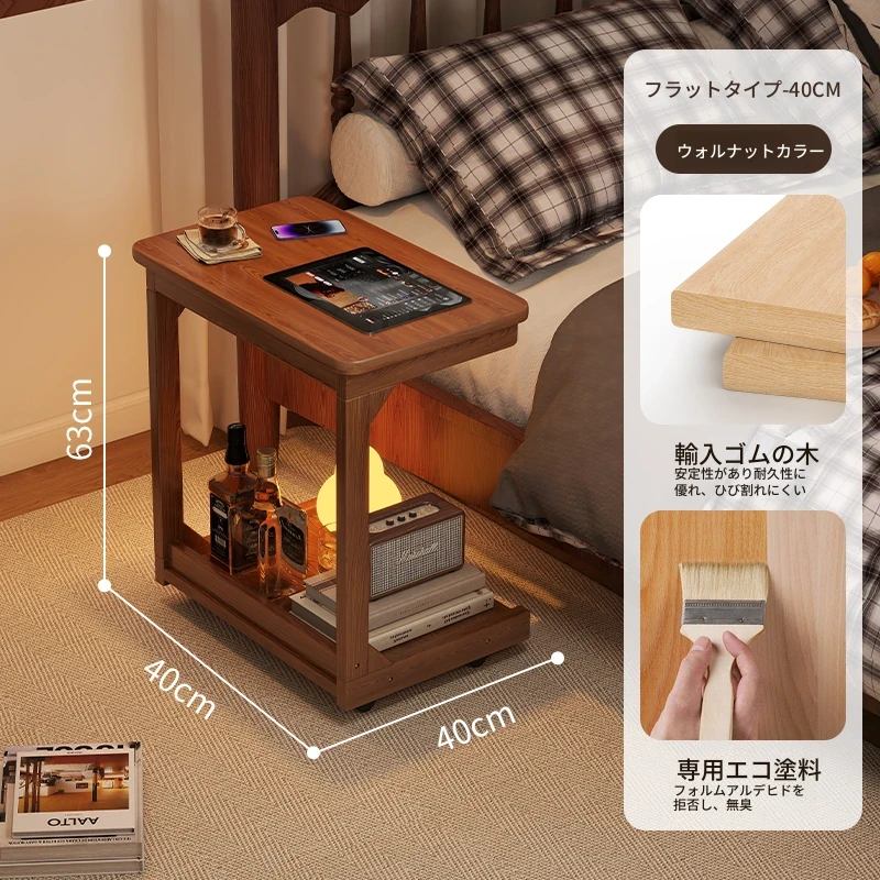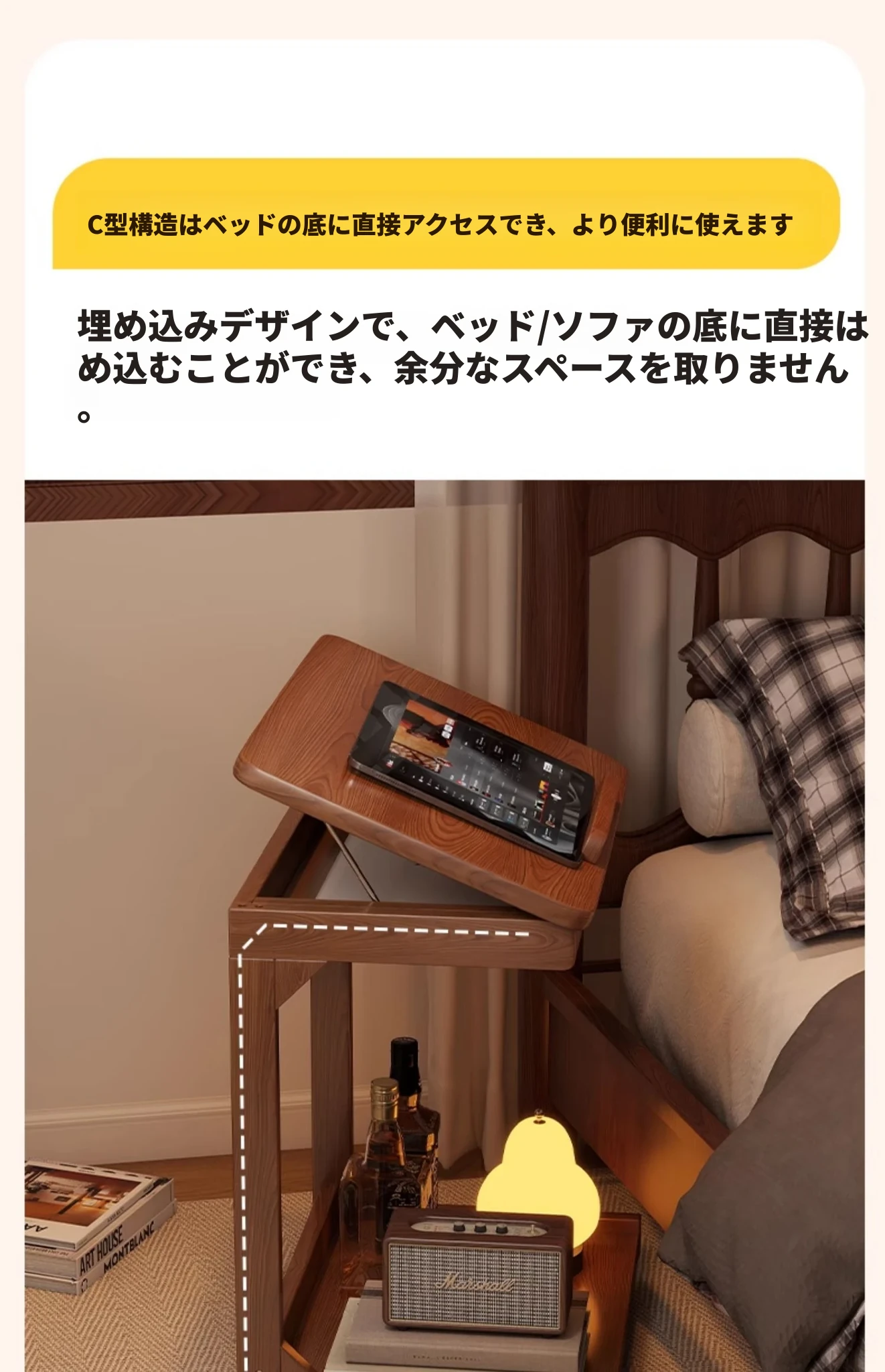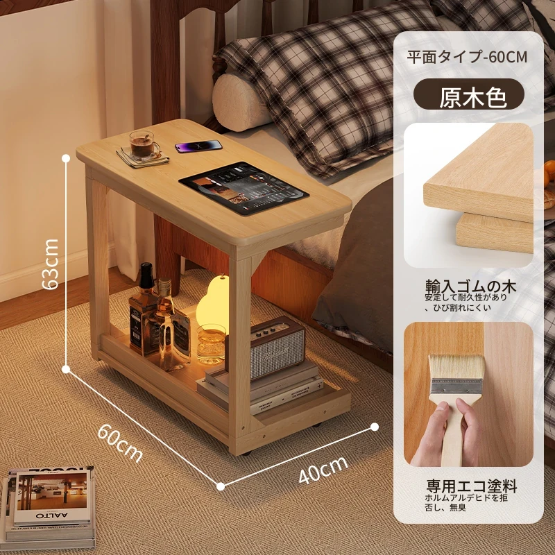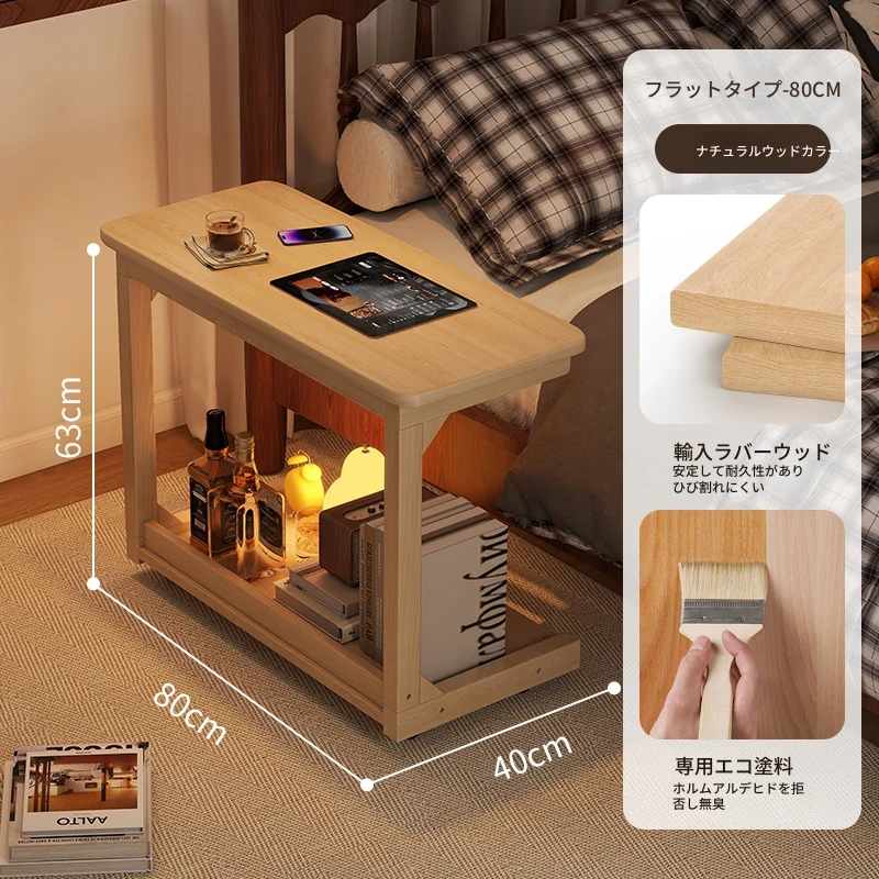 レトロデザインの実木製ベッドサイドテーブル、キャスター付きで移動も楽々!収納力抜群のフリップトップ式、あなたの寝室をおしゃれに演出します。