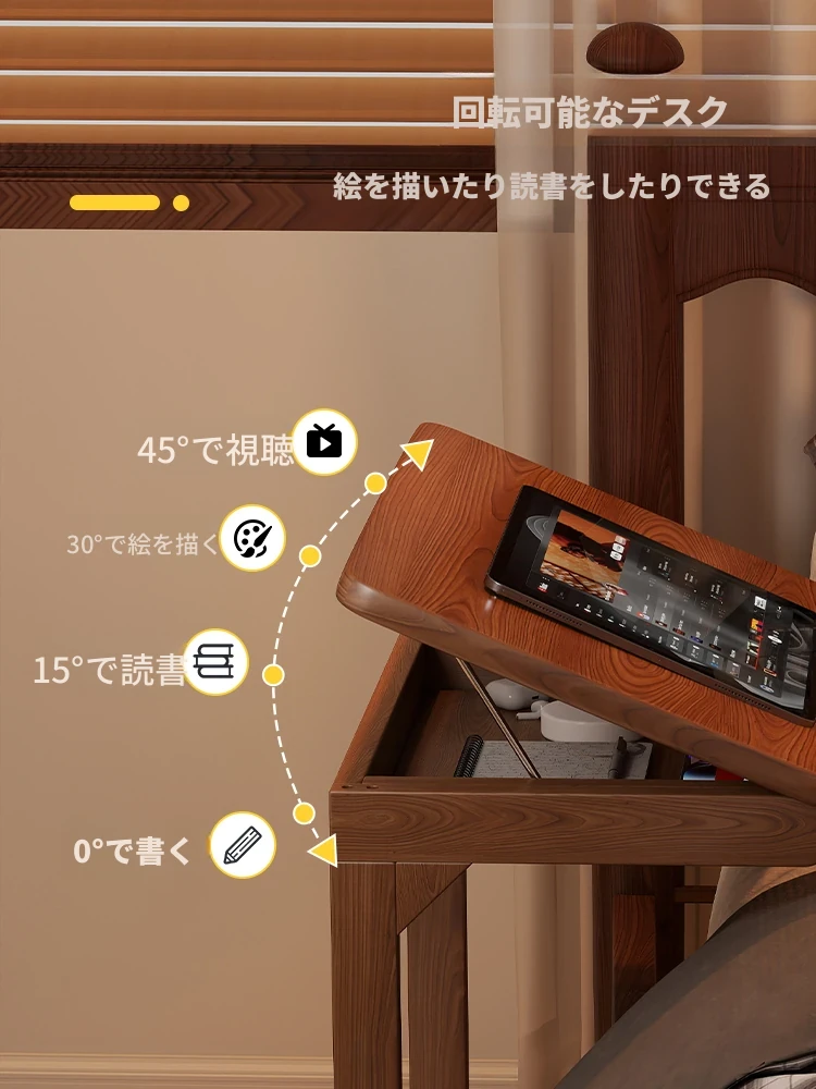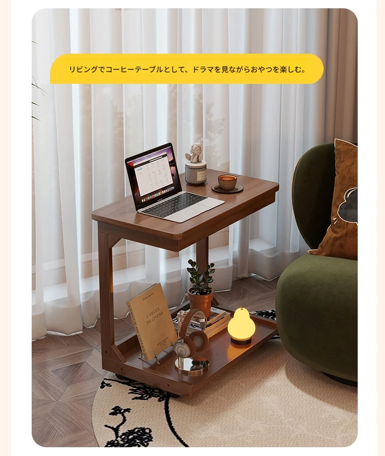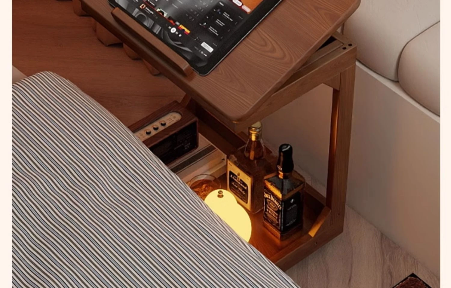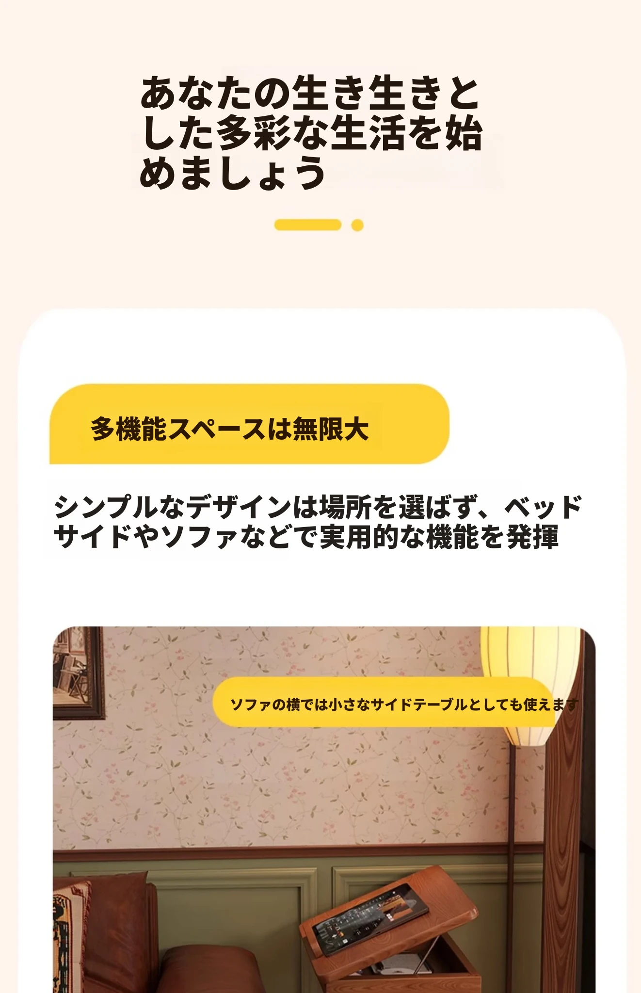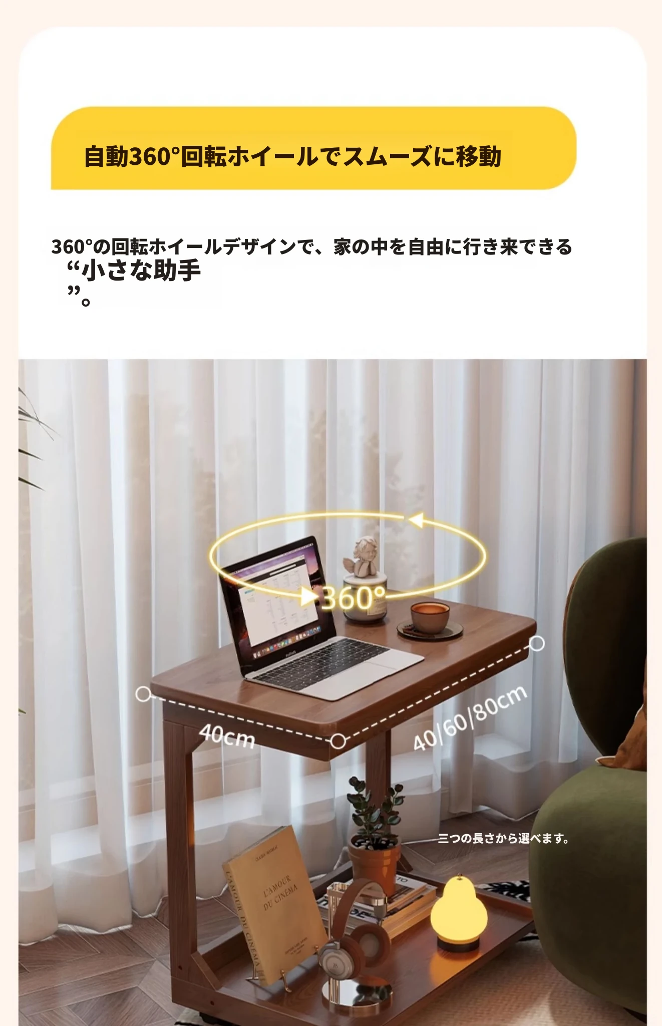 レトロデザインの実木製ベッドサイドテーブル、キャスター付きで移動も楽々!収納力抜群のフリップトップ式、あなたの寝室をおしゃれに演出します。