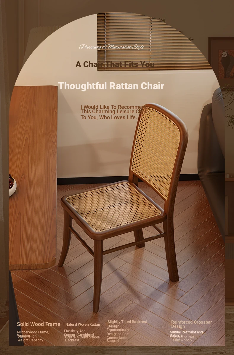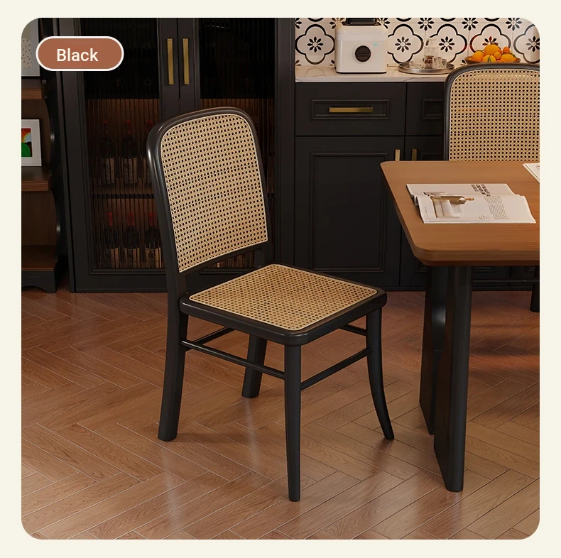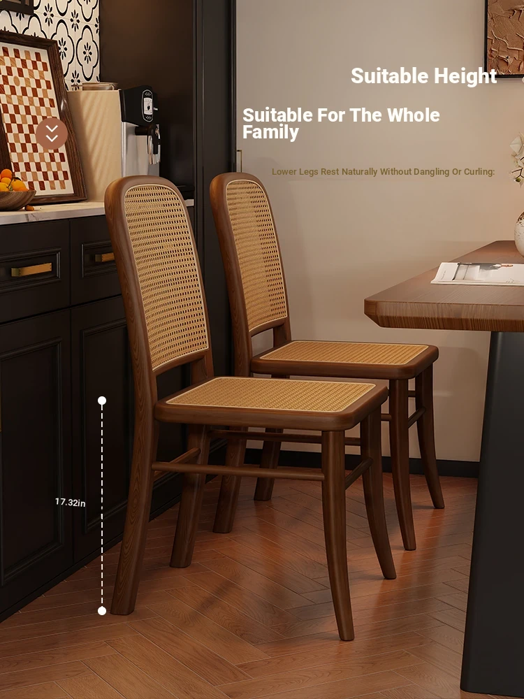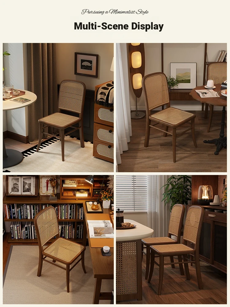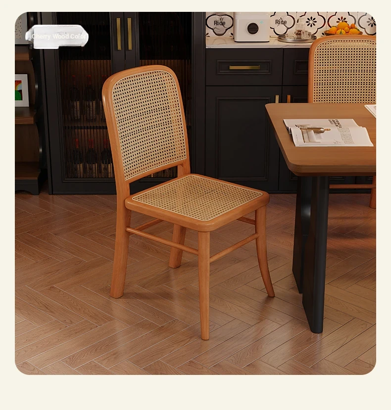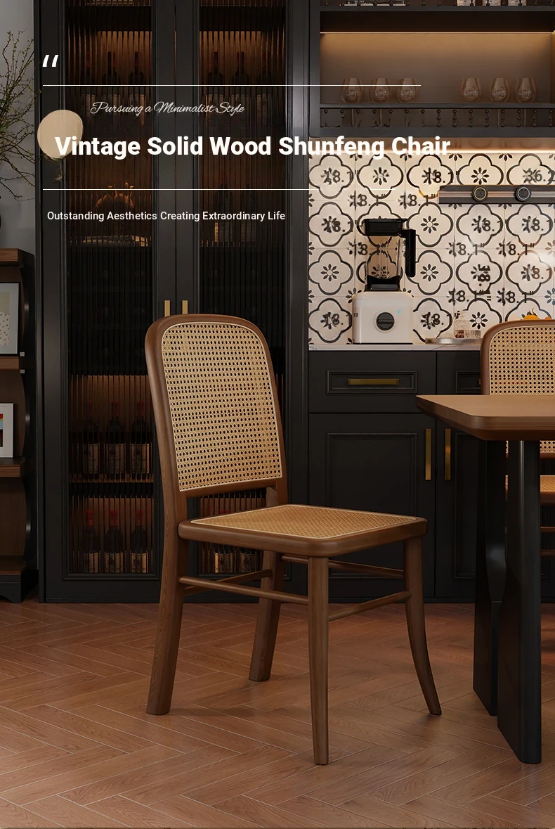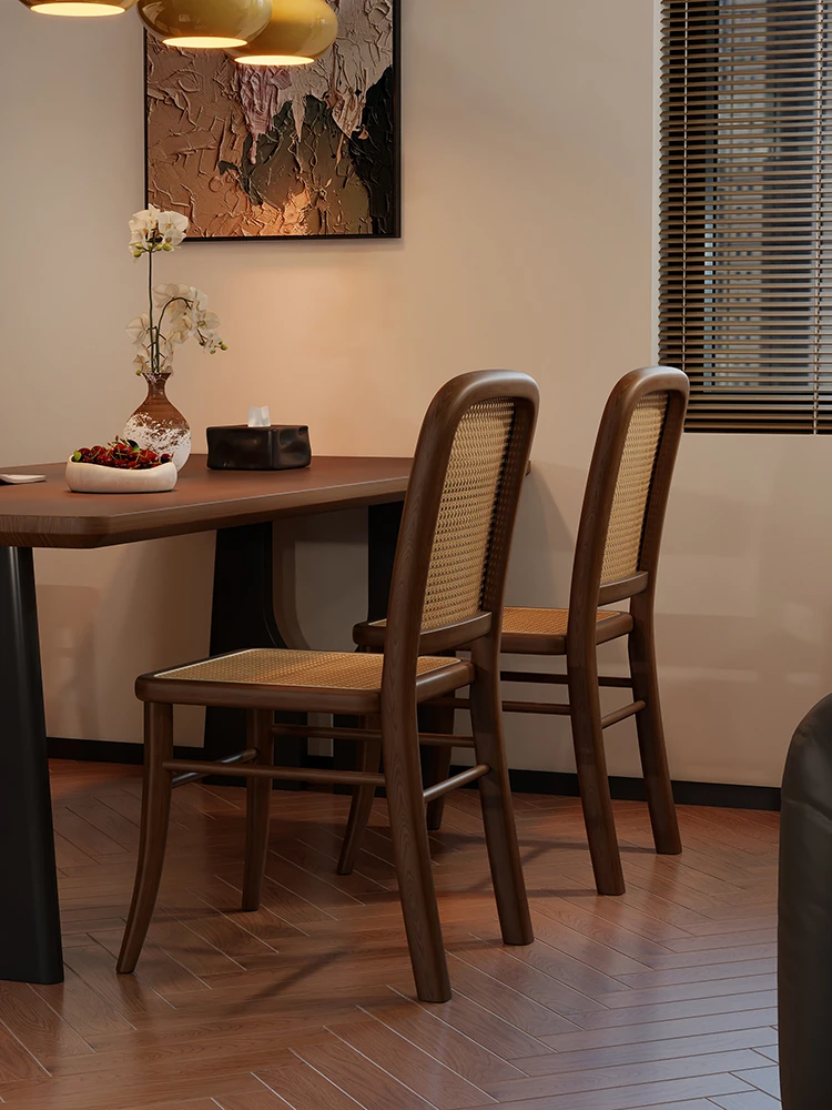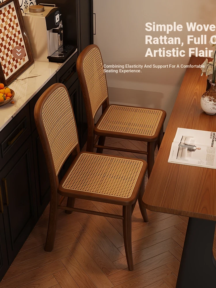 Vintage Solid Wood Rattan Dining Chair - Retro Leisure Backrest Chair for Home, Restaurant, Living Room, and Balcony - Perfect for Wabi-Sabi Style Dining Tables