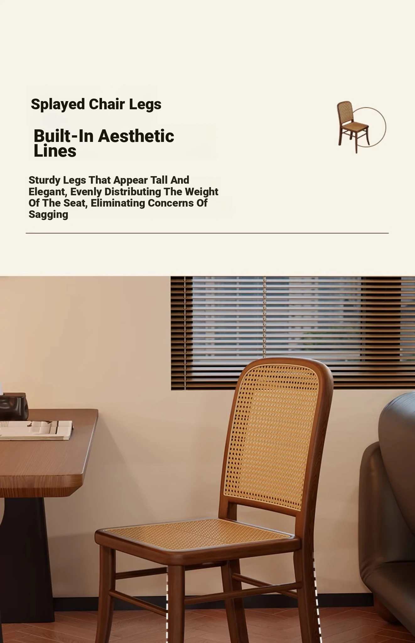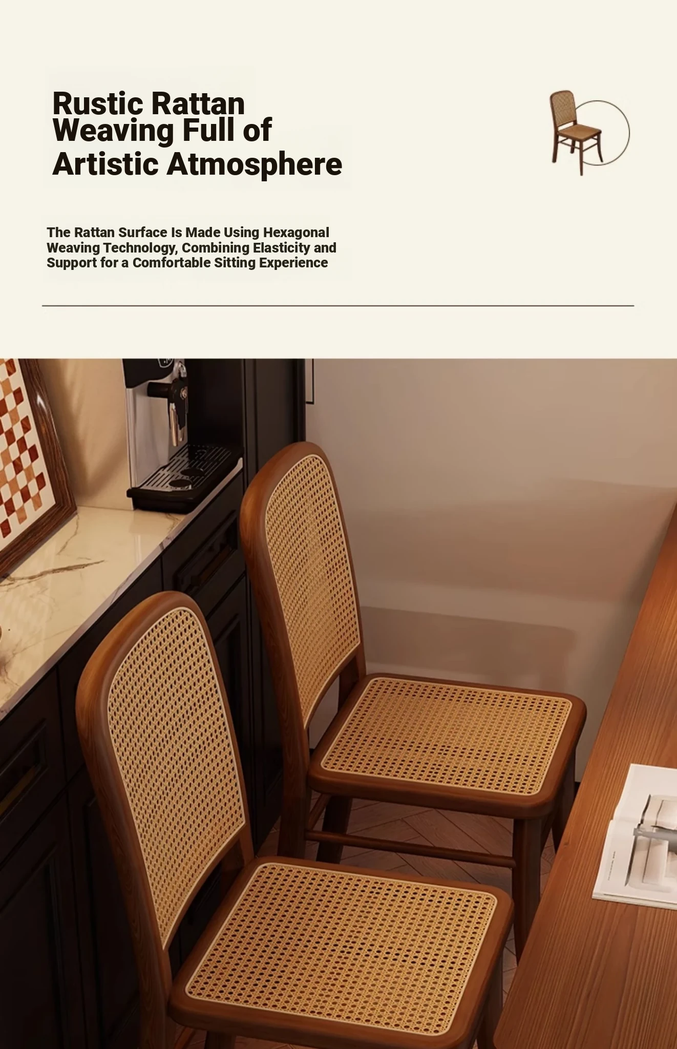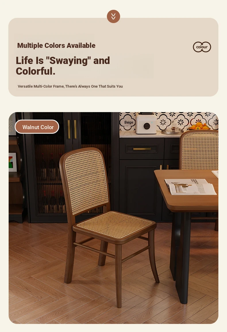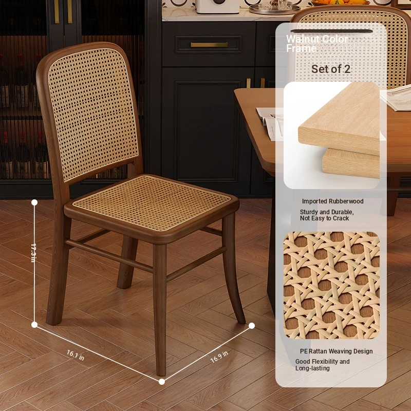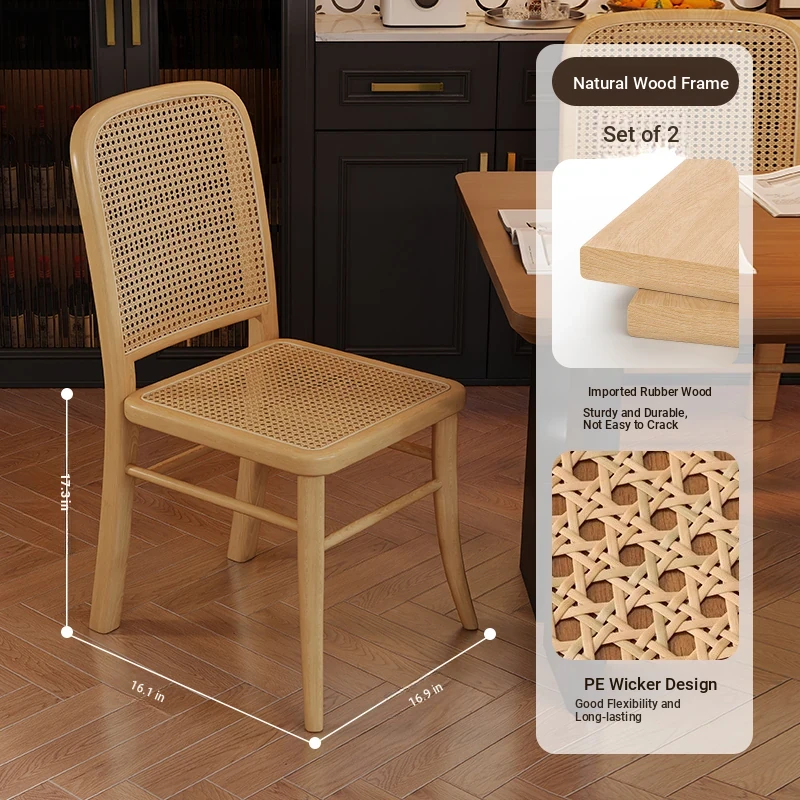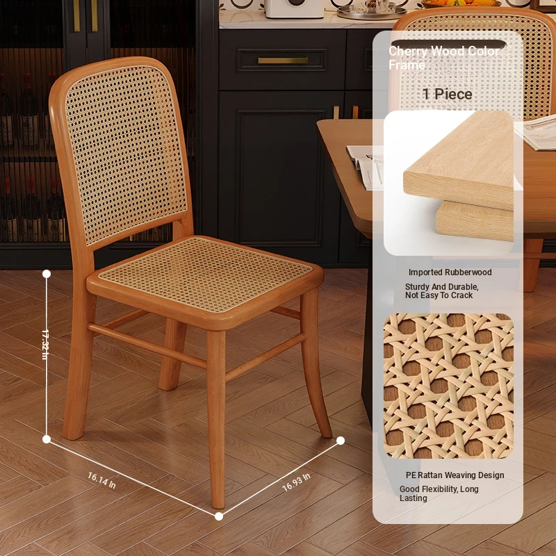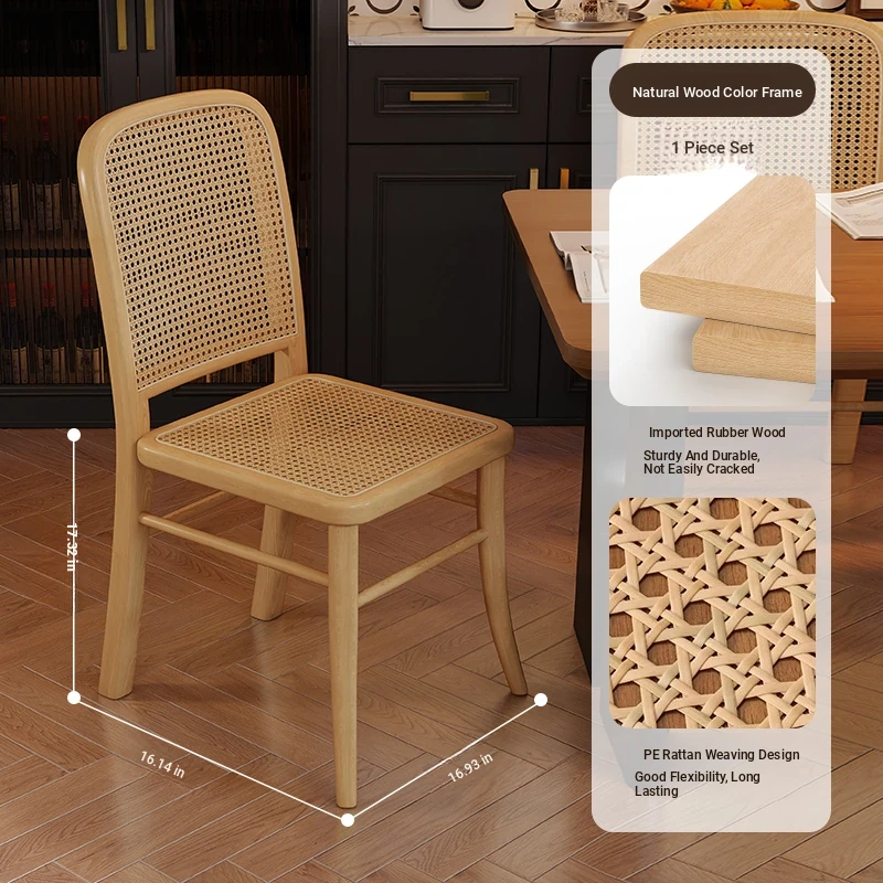 Vintage Solid Wood Rattan Dining Chair - Retro Leisure Backrest Chair for Home, Restaurant, Living Room, and Balcony - Perfect for Wabi-Sabi Style Dining Tables