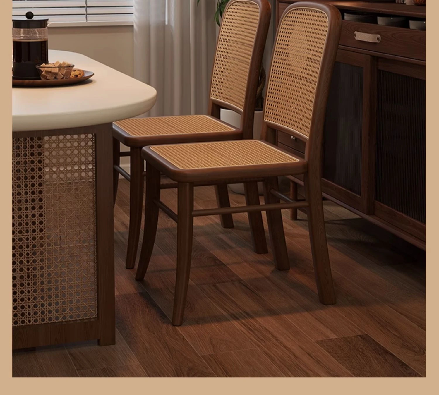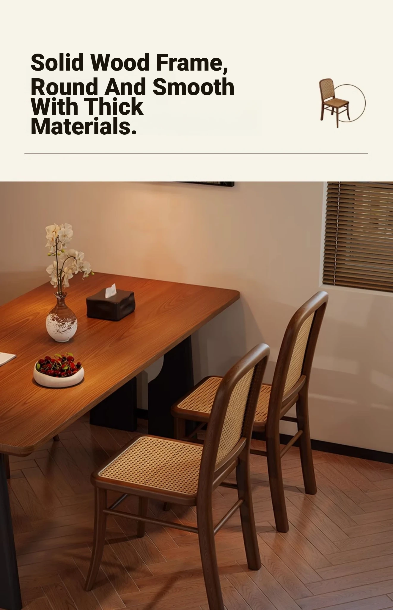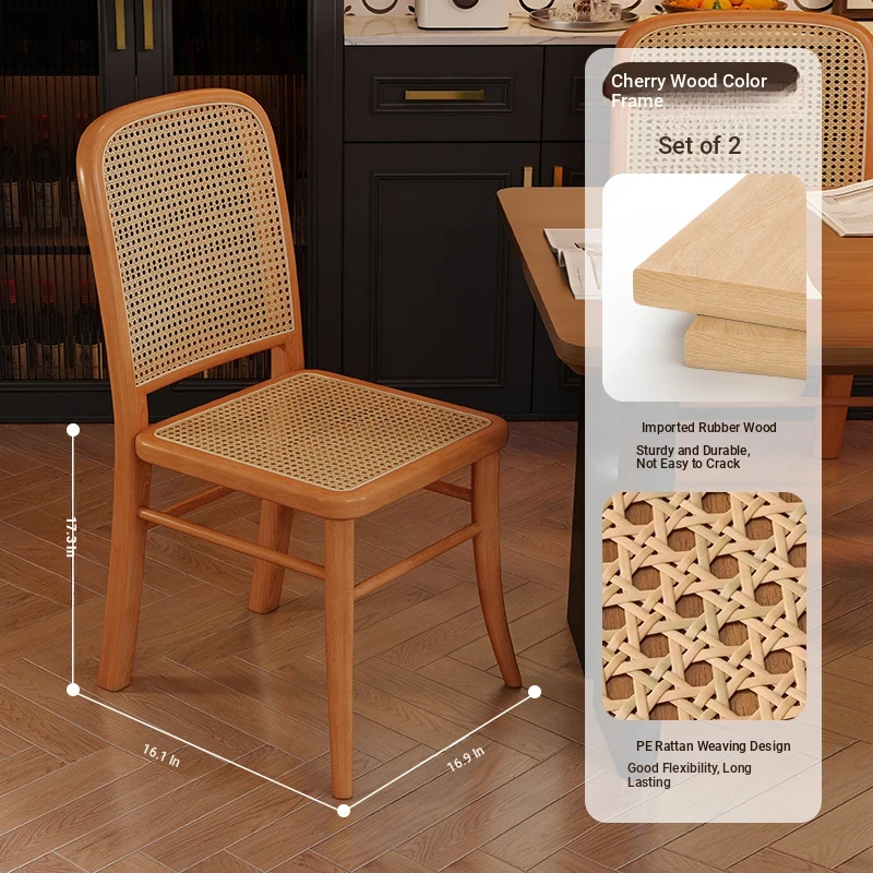 [Free Installation] Cherry Wood Color Frame -2 Pcs [Rattan Seat Surface]]