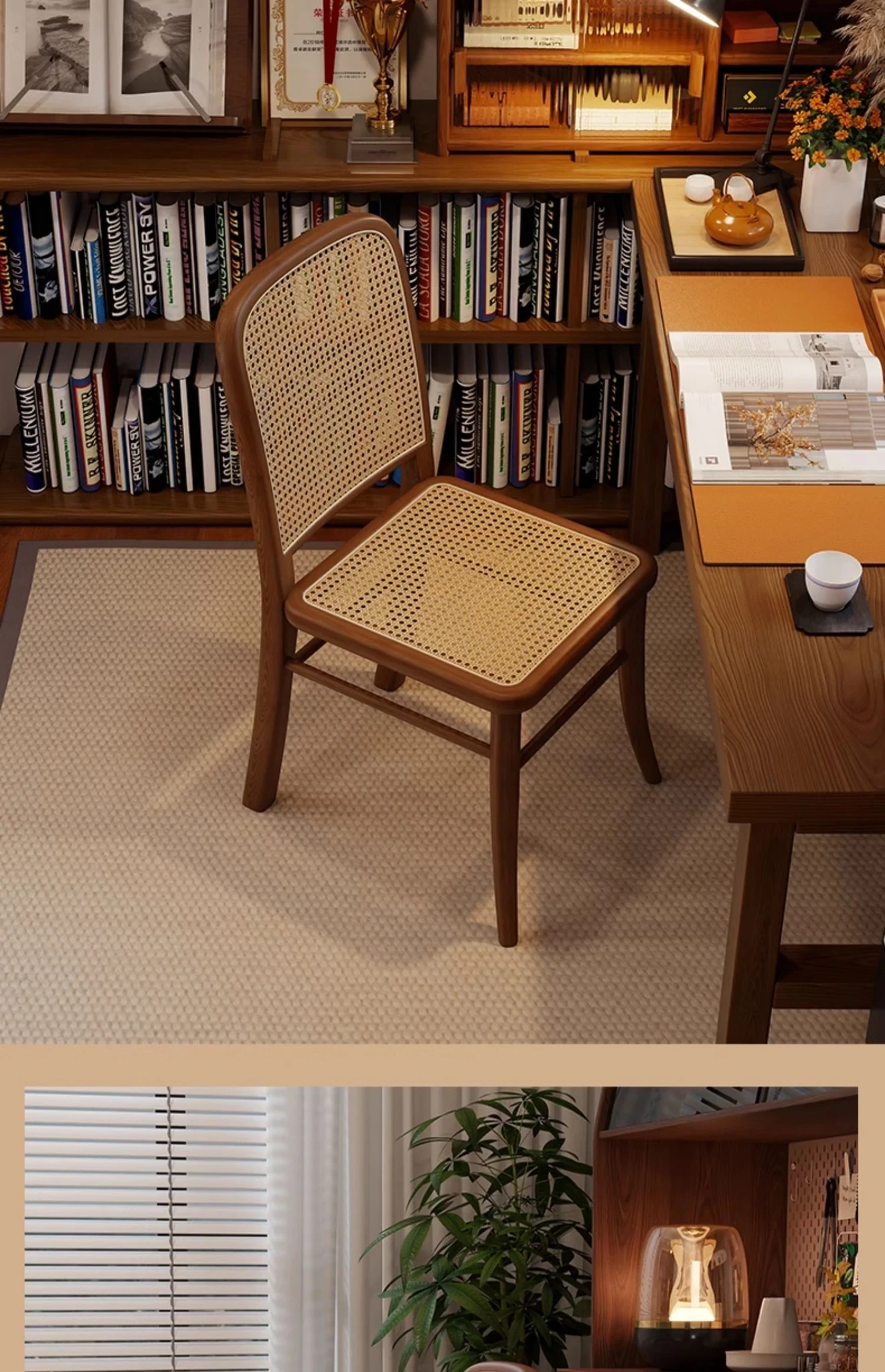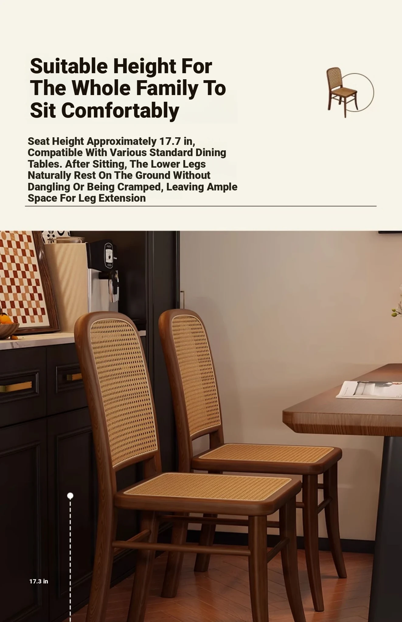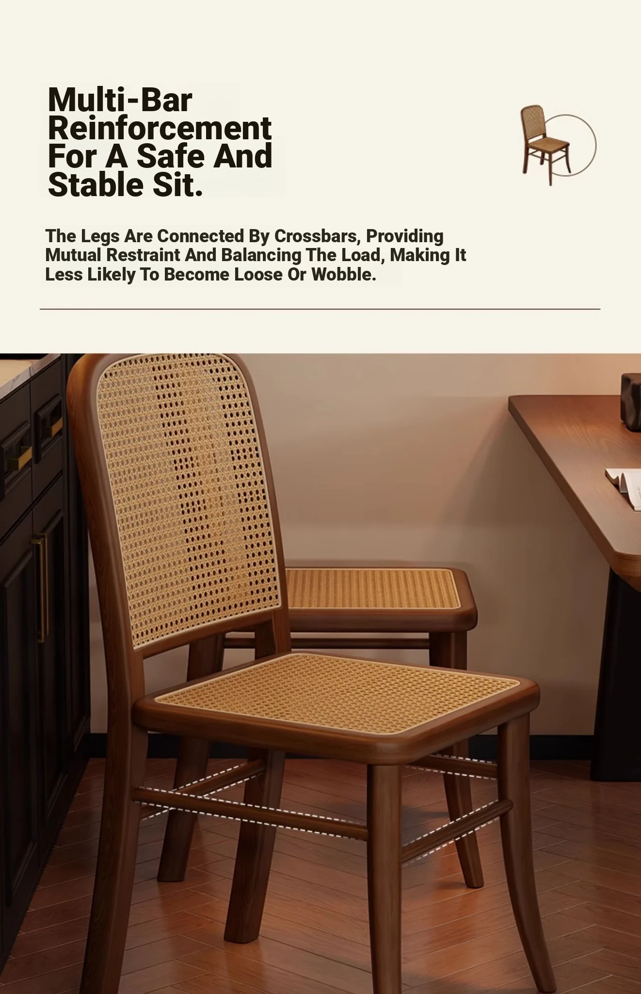 [Free Installation] Cherry Wood Color Frame -2 Pcs [Rattan Seat Surface]]