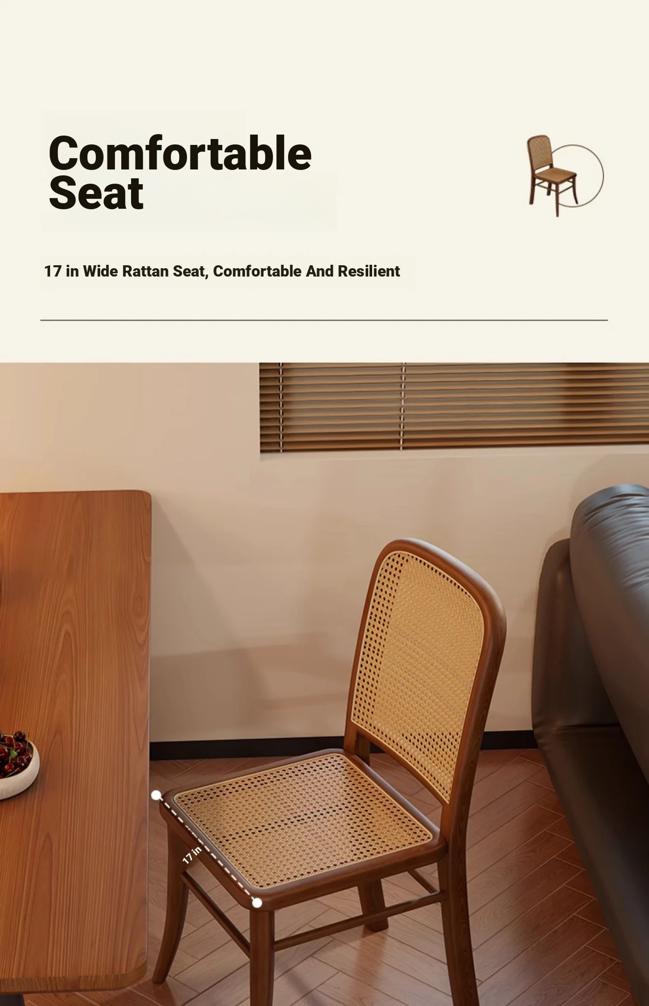 [Free Installation] Cherry Wood Color Frame -1 Pack [Rattan Seat Surface]]