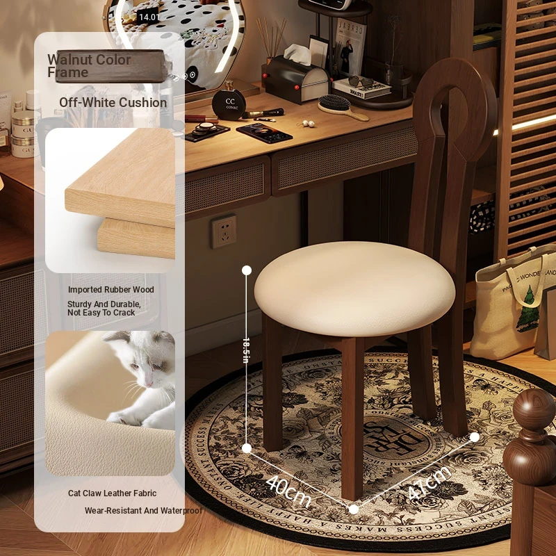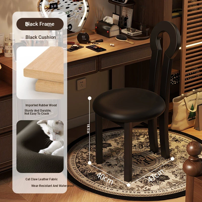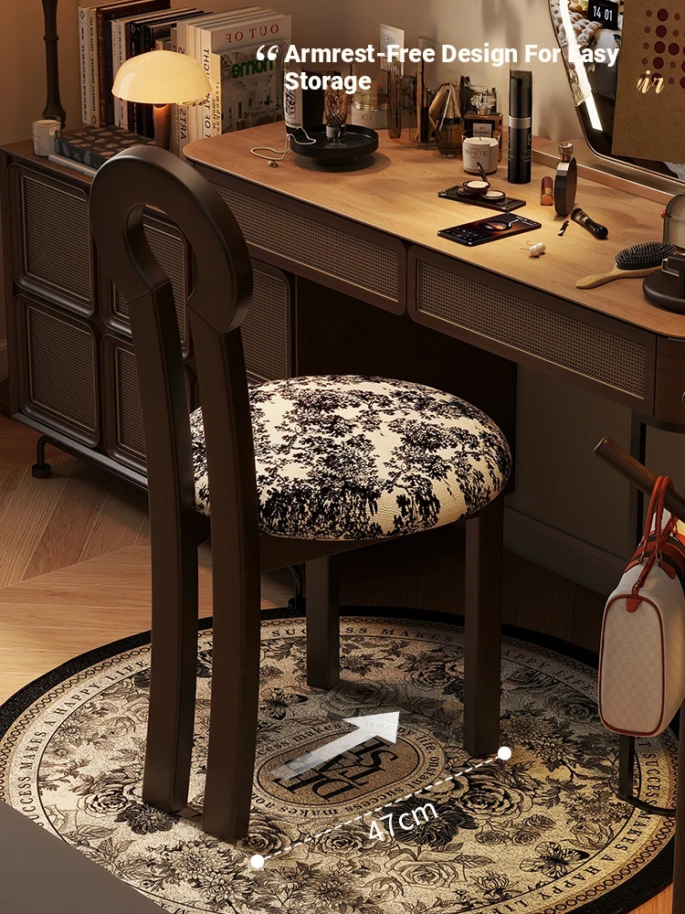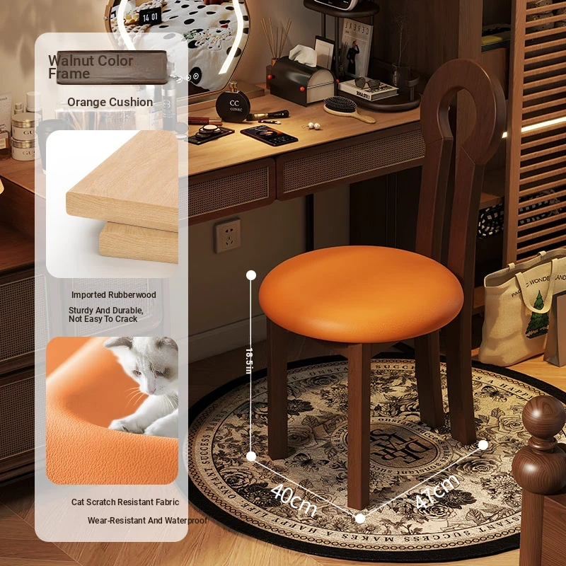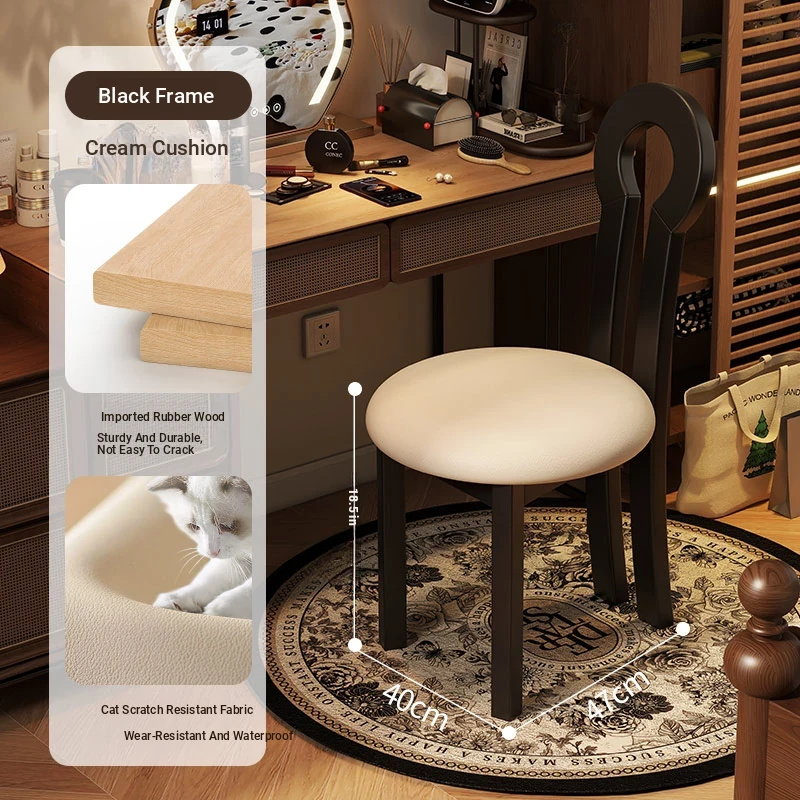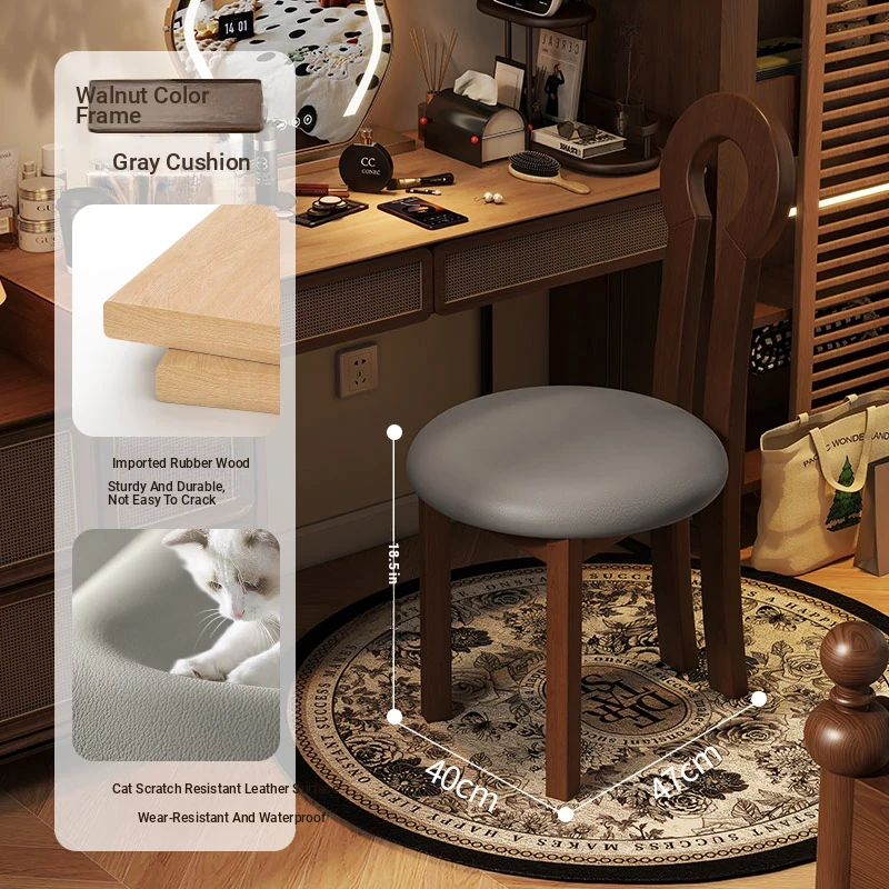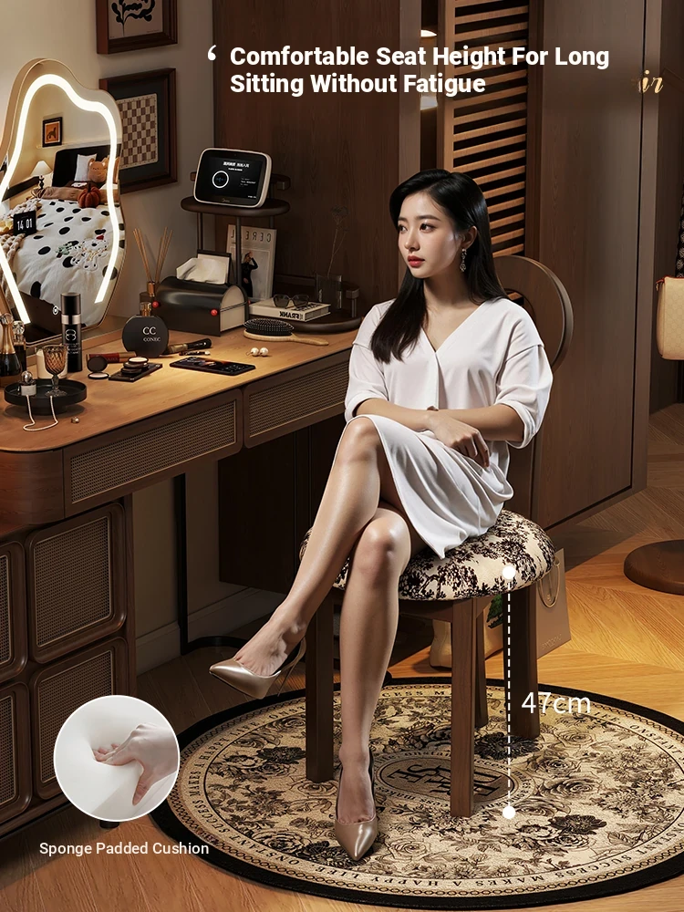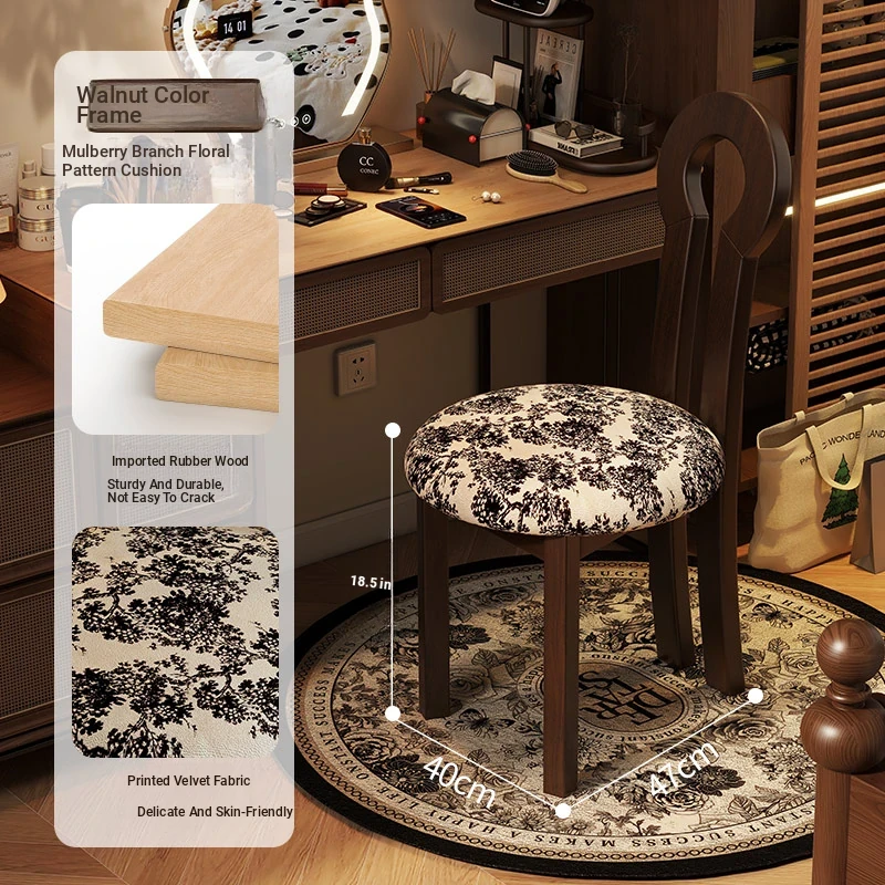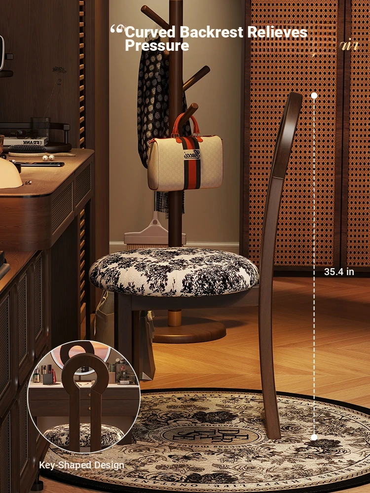 Vintage Solid Wood Vanity Stool - Stylish Makeup Chair for Bedroom Dressing Tables, Versatile Dining and Kitchen Seating, Perfect for Home Use