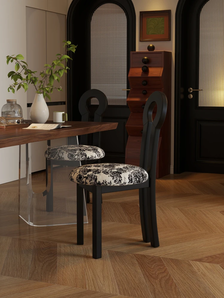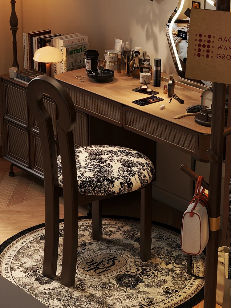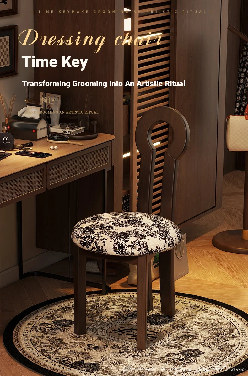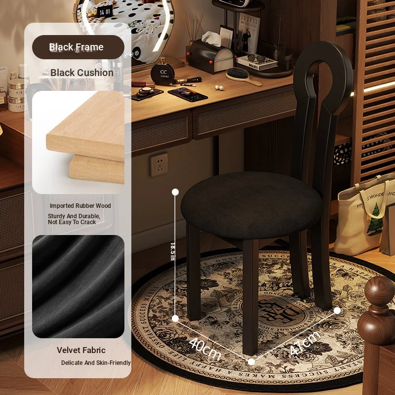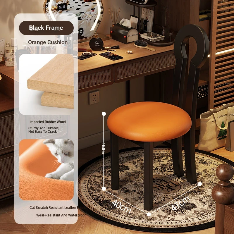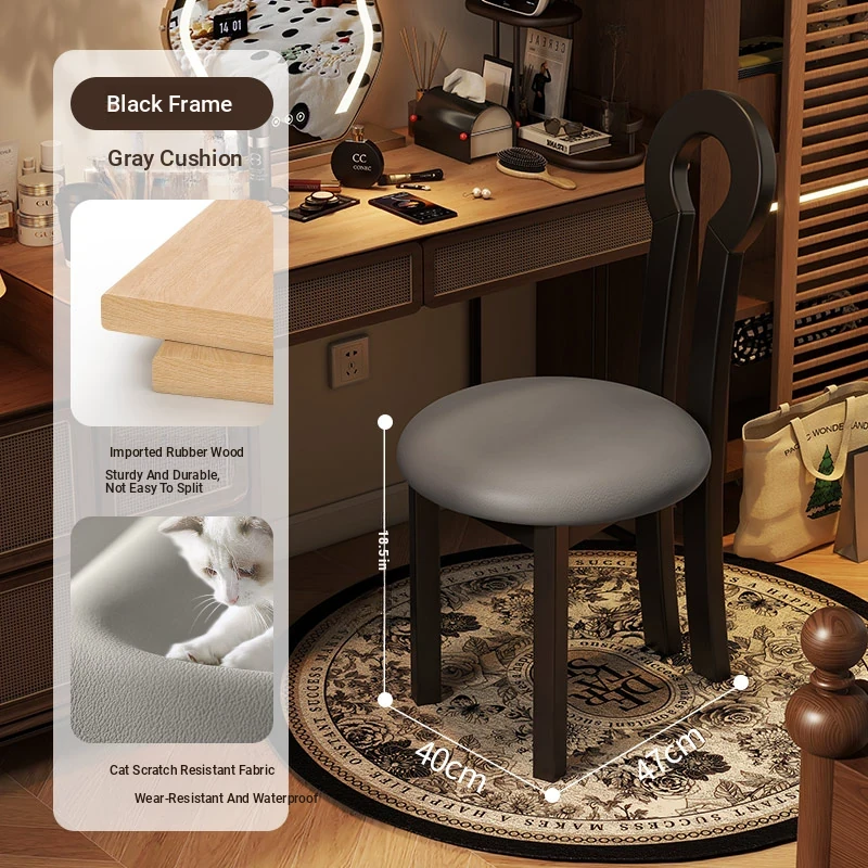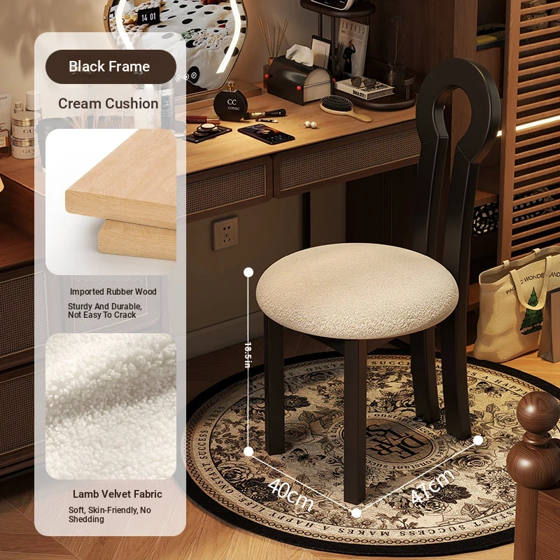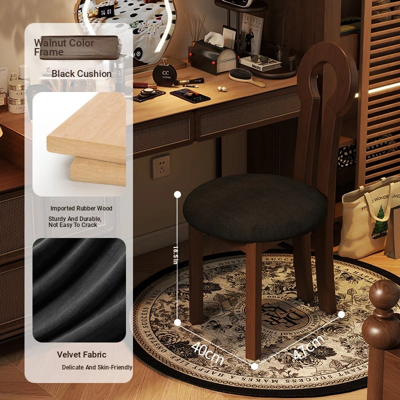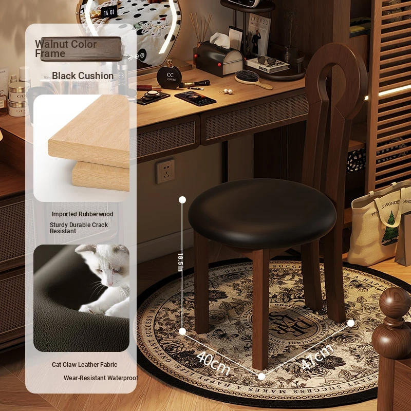 Vintage Solid Wood Vanity Stool - Stylish Makeup Chair for Bedroom Dressing Tables, Versatile Dining and Kitchen Seating, Perfect for Home Use