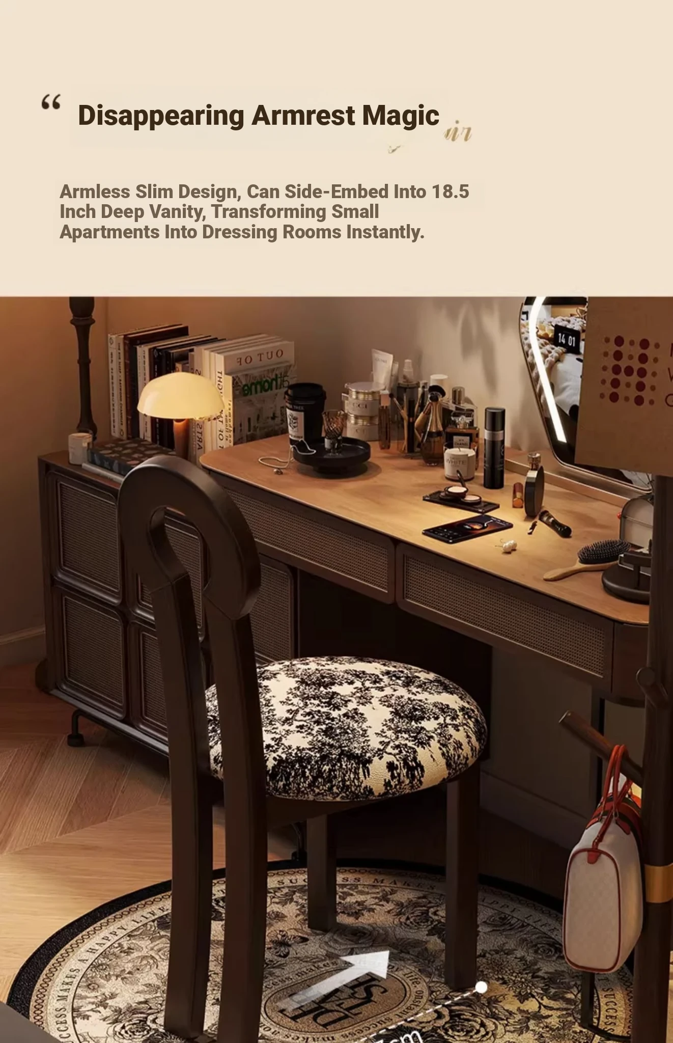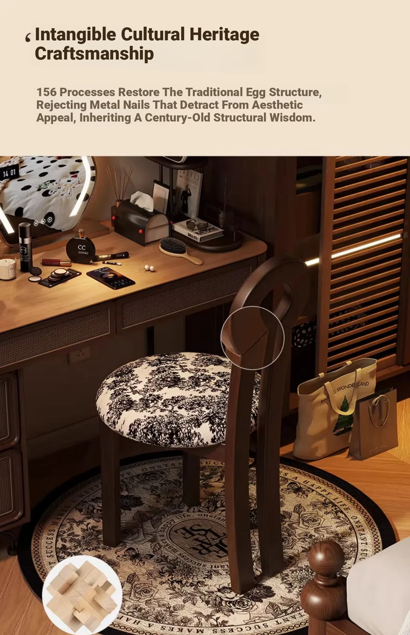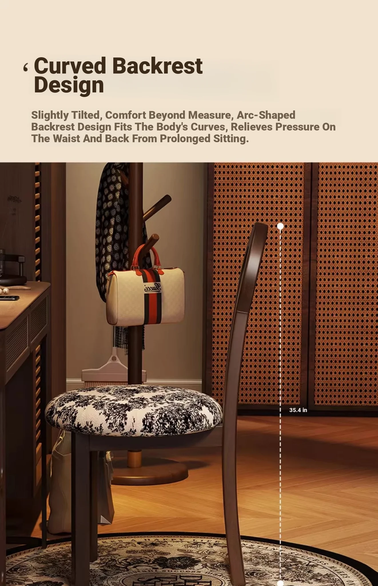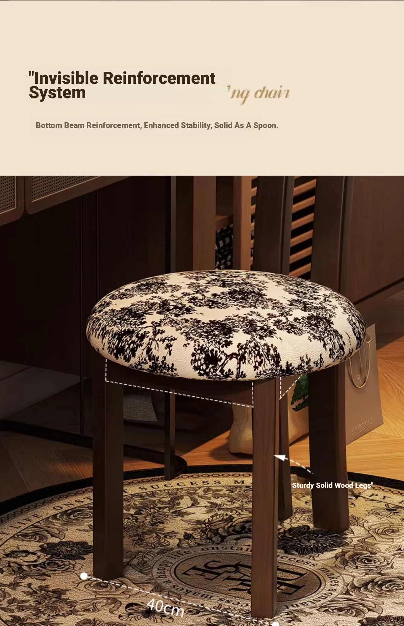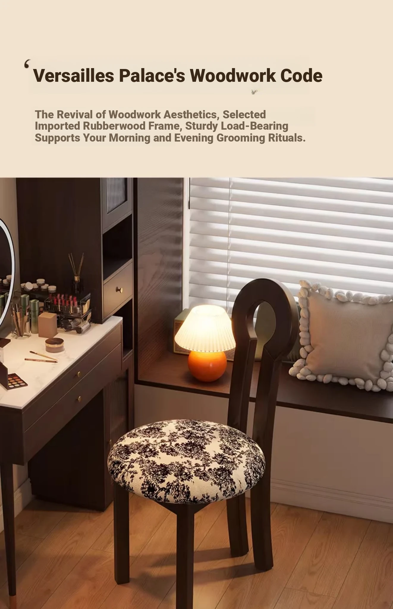 Vintage Solid Wood Vanity Stool - Stylish Makeup Chair for Bedroom Dressing Tables, Versatile Dining and Kitchen Seating, Perfect for Home Use