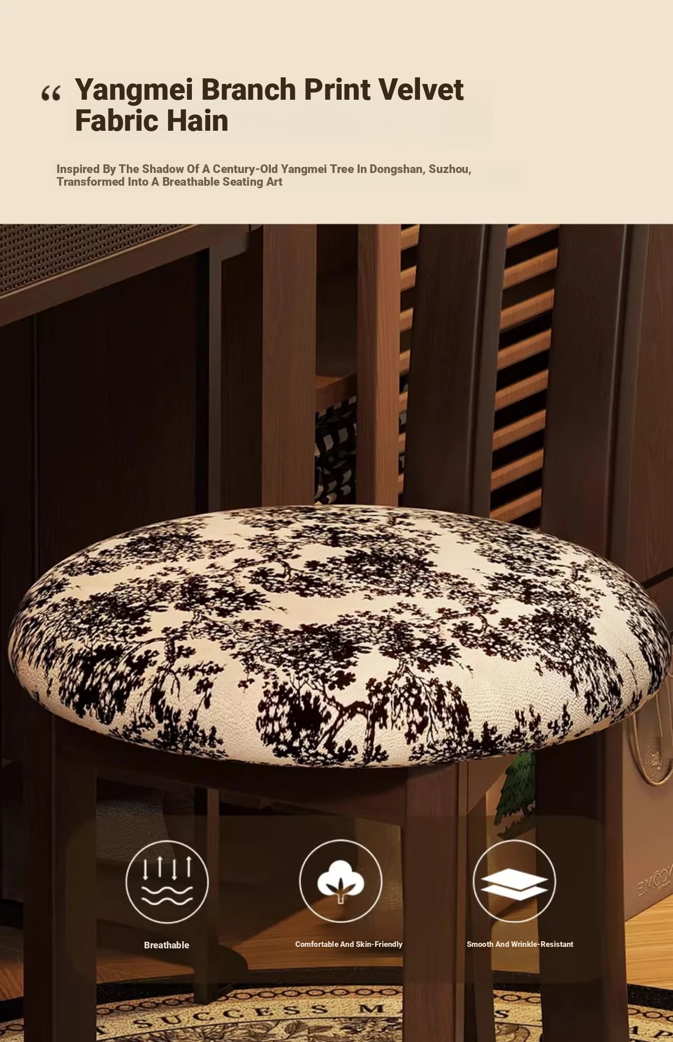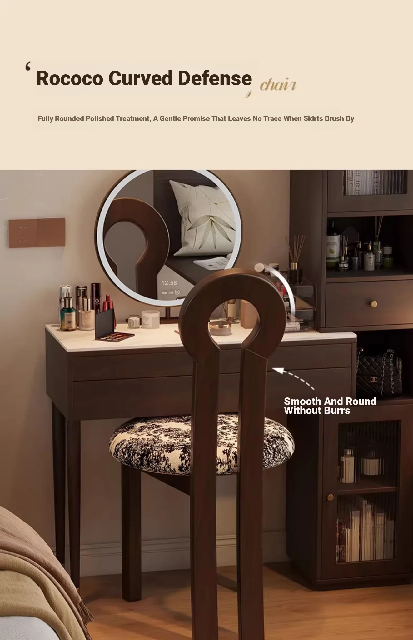 Rice White [soft waxy Cashmere]-walnut color chair frame
